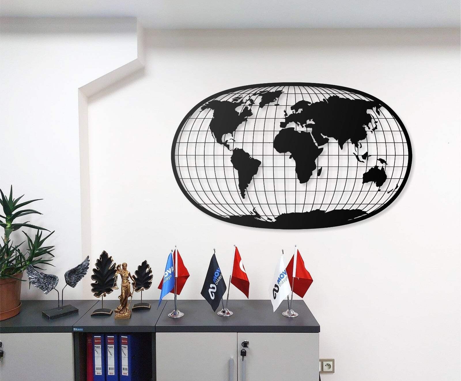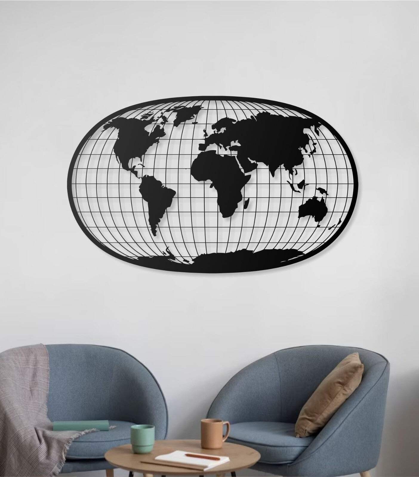 🌍 Metall Weltkarte Elips & Quadratmuster 50×80 70×100 Handarbeit