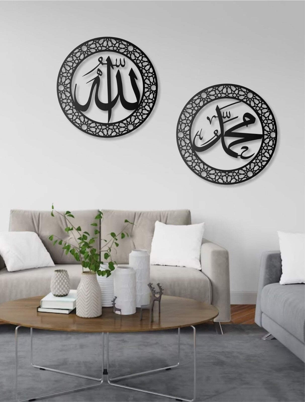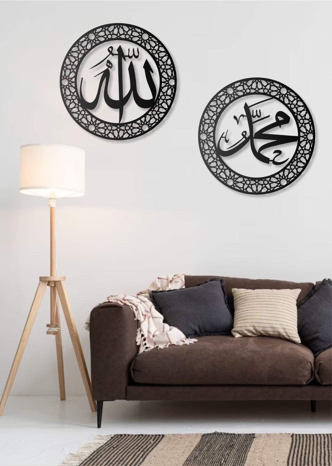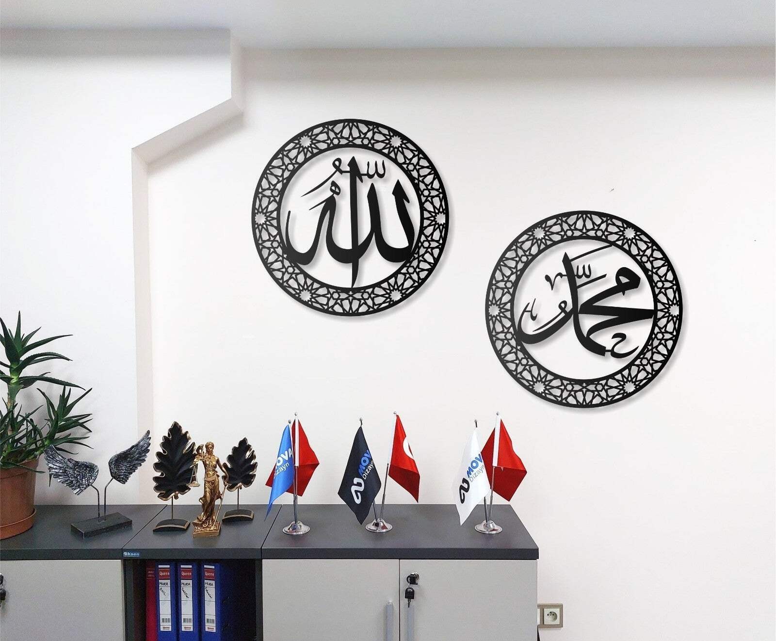 Allah Muhammad 2er Set Metall Wandbild Islamische Wanddeko