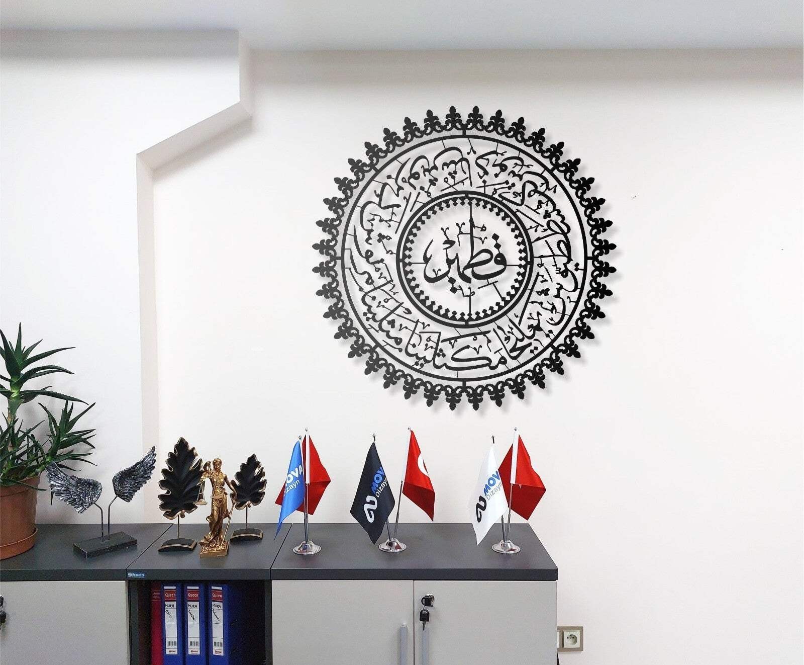 Dieses elegante Metall Wandbild zeigt die kalligraphische Inschrift „Ashabı Kehf“ und symbolisiert Glaube, Geduld und Schutz . Perfekt für spirituelle Akzente in jedem Raum.
