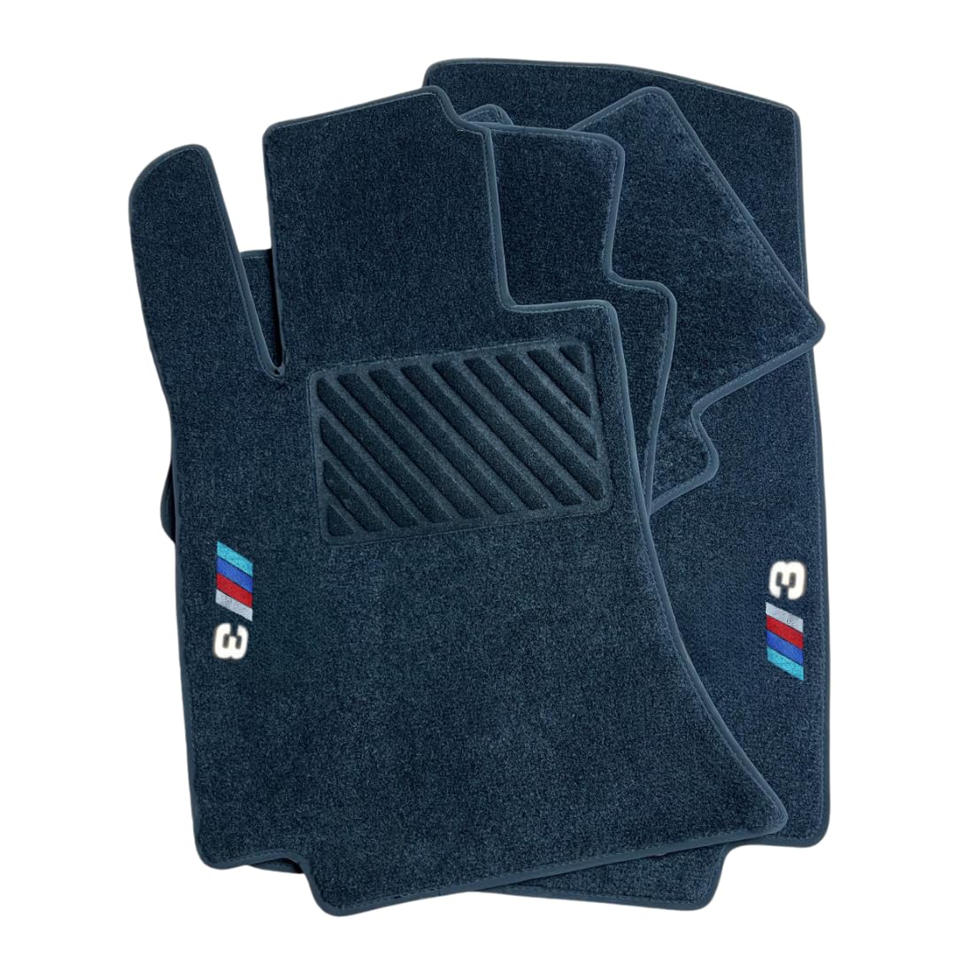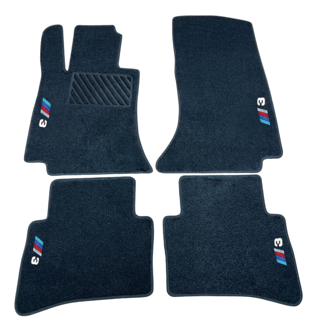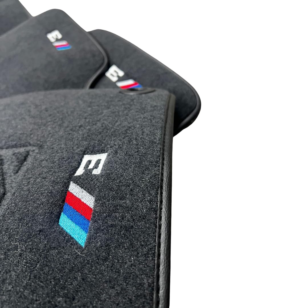 Autofußmatten für BMW 3er E36 E46 E90 E91 E92 F30 F31 F34 G20 G21 – Maßgeschneiderte Velours & Kunstleder Automatten Set 4-teilig