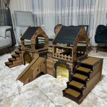?? **Verbessern Sie die Welt Ihrer Katze: Entdecken Sie unser handgefertigtes, zerlegbares Katzenburg** ?? ? Willkommen in unserer einzigartigen Ecke auf Etsy, wo wir Ihnen handgefertigte, zerlegbare Katzenhäuser anbieten, die Komfort, Stil und Sicherheit für Ihre geliebten pelzigen Freunde neu definieren. Mit viel Liebe zum Detail und aus feinstem 3-mm-MDF-Material gefertigt, sind unsere Katzenhäuser nicht nur Behausungen, sondern Oasen des Glücks. Wir verfügen über Zertifizierungen, die die Gesundheit und Sicherheit unserer Produkte bestätigen und Ihnen ein sorgenfreies Erlebnis garantieren. ? **Ein Schloss für Ihre katzenhafte Majestät** Stellen Sie sich eine Welt vor, in der Ihre pelzigen Begleiter wie Könige regieren und jeder ihrer Sprünge und jede Bewegung ihrer Schnurrhaare Eleganz ausstrahlt. Unser zerlegbares Katzenschloss wurde entworfen, um diese königliche Fantasie zum Leben zu erwecken. Die zentrale Struktur ähnelt einer majestätischen Festung und hat die Form eines Sechsecks, was der Behausung Ihrer Katze einen zeitlosen Charme verleiht. Mit zwei geräumigen Etagen und leicht zugänglichen Rampen auf beiden Seiten können Ihre Katzen in ihrem eigenen verzauberten Reich herumtollen. ? **Das Wunder der sechseckigen Architektur** Das sechseckige Design des Schlosses ist nicht nur ästhetisch, sondern auch funktional. Seine einzigartige Form ermöglicht eine effiziente Raumnutzung und sorgt dafür, dass Ihre Katzen ausreichend Platz zum Herumtollen, Erkunden und für ihre eigenen kleinen Abenteuer haben. Abmessungen; Gesamtfläche Höhe: 65 cm ,6 Zoll Breite: 133 cm * 52 cm 52,4 „ * 20,5“ 1. Etage Höhe: 28 cm Zoll Breite: 57 m * 40 cm 22,4„ * 15,7“ Türdurchmesser: 24 cm 2. Etage Höhe: 37 cm Breite: 35 cm * 40 cm Terrasse Breite: 31 cm * 31 cm ? **Zertifizierte Gesundheit und Sicherheit** Ihre Katzen verdienen das Beste, und wir wissen, wie wichtig ihr Wohlbefinden ist. Unser zerlegbares Katzenburg ist aus 3 mm starkem MDF-Material gefertigt, das für seine Langlebigkeit und Sicherheit bekannt ist. Aber damit nicht genug: Unser Engagement für die Gesundheit Ihres Haustieres wird durch Zertifizierungen untermauert, die die Qualität und Sicherheit unserer Produkte bestätigen. Sie können ganz beruhigt sein, dass Ihre Katzen sich in einer sicheren und gesunden Umgebung befinden. ? **Luxus trifft auf Zugänglichkeit mit zwei Etagen** In unserem zweistöckigen Design trifft Eleganz auf Funktionalität. Die untere Etage bietet Ihren Katzen einen gemütlichen Rückzugsort zum Schlafen, Entspannen oder um etwas Privatsphäre zu genießen, während die obere Etage einen weitläufigen Bereich zum Spielen und Erkunden bietet. Die beidseitig angebrachten Rampen erleichtern Ihren Katzen den Aufstieg in ihre königlichen Gemächer. ? **Eine Rampe zum Abenteuer** Unsere durchdachten Rampen bieten nicht nur Funktionalität, sondern auch die Möglichkeit zum Abenteuer. Wenn Ihre Katzen in die obere Etage hinaufsteigen, begeben sie sich auf eine Entdeckungsreise. Jeder Schritt wird zu einem neuen Abenteuer, einer Gelegenheit, ihre natürliche Neugier und Beweglichkeit auszuleben. ? **Einfache Montage, müheloser Transport** Wir wissen, dass Ihr Leben ständig in Bewegung ist und Ihre Katzen Teil dieses Abenteuers sind. Deshalb ist unser zerlegbares Katzenburg unglaublich einfach auf- und abzubauen. Egal, ob Sie umziehen oder einfach nur Ihren Wohnraum neu gestalten, das Zuhause Ihrer Katzen kann mit ihnen umziehen. Es ist die perfekte Lösung für moderne Tierhalter, die sowohl Komfort als auch die Bequemlichkeit ihrer geliebten Begleiter schätzen. ? **Schaffen Sie ein Wunderland für Ihre Katzen** Zusammenfassend lässt sich sagen, dass unser zerlegbares Katzenburg mehr als nur ein Zuhause ist – es ist ein Erlebnis. Es ist eine Reise in die Welt des königlichen Lebens für Ihre pelzigen Freunde, komplett mit Sicherheit, Stil und Funktionalität. Die sechseckige Architektur bietet eine einzigartige und elegante Kulisse für ihre Abenteuer, während die zweistöckige Aufteilung dafür sorgt, dass sie Platz haben, um sich auszustrecken und ihren Horizont zu erweitern. Dank Zertifizierungen, die die Qualität und Sicherheit unseres Produkts bestätigen, können Sie sich darauf verlassen, dass Ihre Katzen in guten Händen sind. Warum also warten? Verbessern Sie noch heute die Welt Ihrer Katzen und schenken Sie ihnen ein zerlegbares Katzenhaus, das für Könige geeignet ist. ??