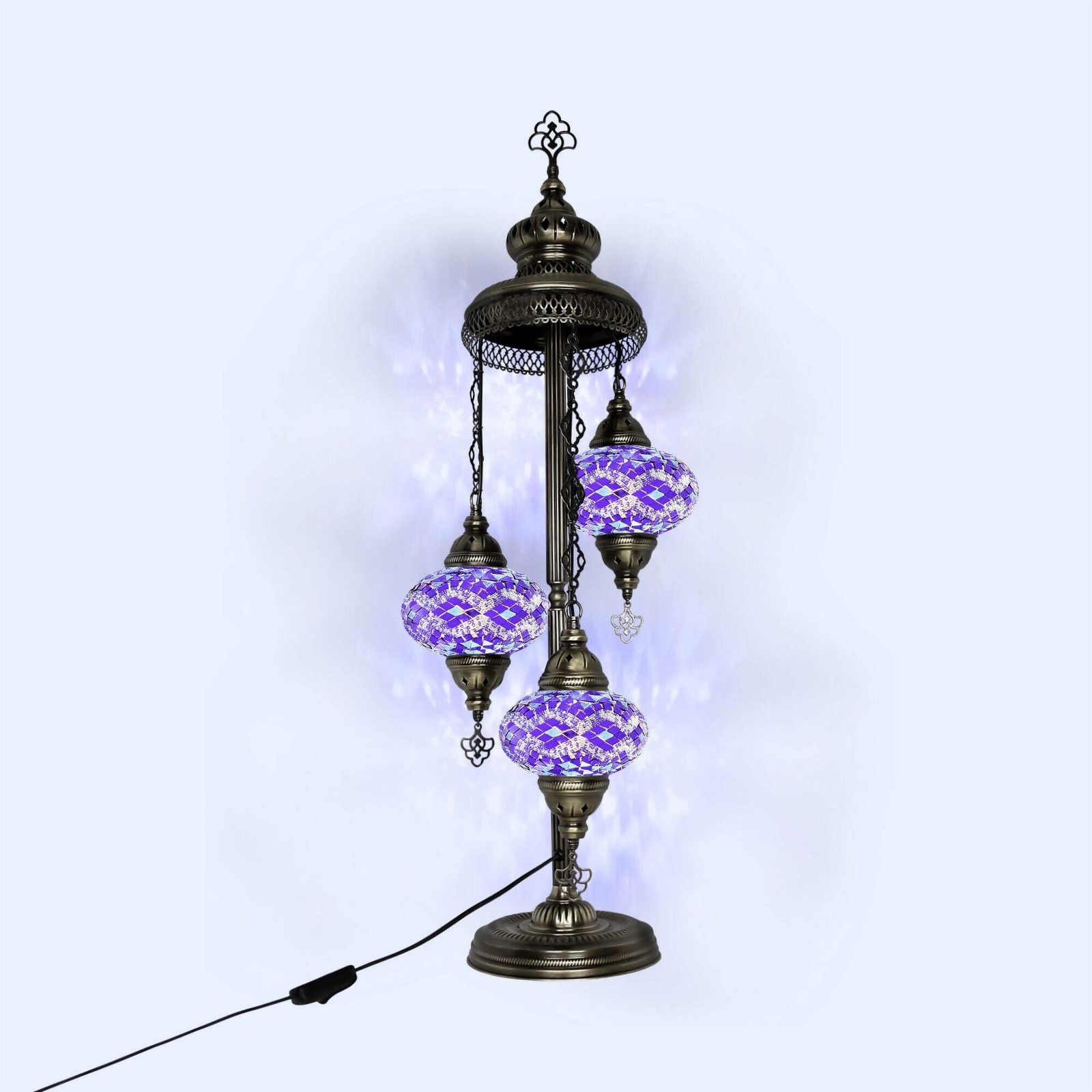 DIMENSIONSHeight : 25.59inc-65cmWidth : 17.71inc-45cmGlobe Diameter :7.48inc-19cmBULB DETAILSType : E-12 Socket for US and E-14 Socket for UK & EUQty : 2Maximum Walt : 25wBULB NOT INCLUDEDELECTRIC DETAILSVoltage : 110V for US – 220V for UK & EUPower source : Plug CableShipped with compatible plug for America,Britain,Europa and AustraliaSHIPMENT DETAILSThe product is handmade and the production time is 10 days, shipping is free. Please contact me if you do not receive your order within 15 days, i’ll look into it and help.PERSONALIZEYou can customize our products in width, length and color as you wish, please contact us forthis.Most importantly, we can make a custom 3D design. In the same way, after the design, you can see the picture and video of the.METARIAL Mosaic Glass Plastering Metal Chain Cable Firstly, this beautiful Turkish handmade mosaic bedside lamp illuminates your home with two globe shaped lamps in a deep purple hue. Moreover the mosaic detail crafted from colored small pieces of glass creates a shimmering effect that adds an elegant touch to any living space. Thus Turkish handmade mosaic is perfect for use as a bedside purple lamp or a coffee table lamp.After that this lamp is the perfect decorative addition to any modern bedroom. Thus crafted with high quality materials and an exquisite mosaic design that catches the light, it will bring a touch of tranquil beauty to your space. Finally, the intricate mosaic design will add a unique and luxurious touch to your decor perfect for those who appreciate a touch of artistic refinement.Also, illuminate your room with the colorful lamp, a sophisticated design designed to create warmth and atmosphere. This elegant lamp with rich hues exudes a sense of luxury and exclusivity and is perfect for complementing any decor.