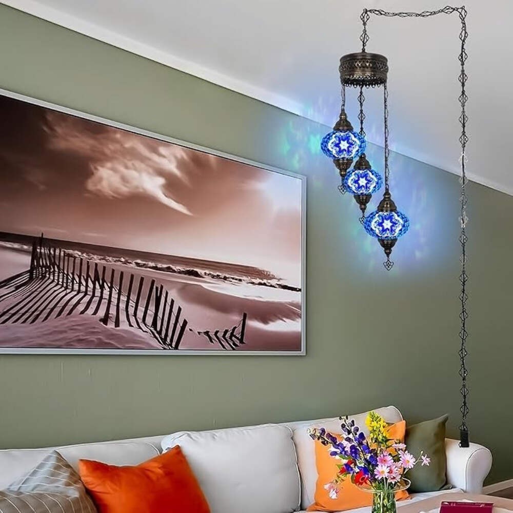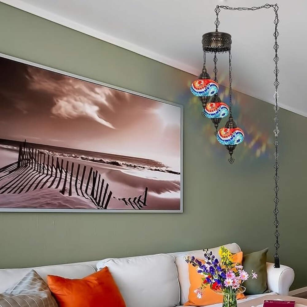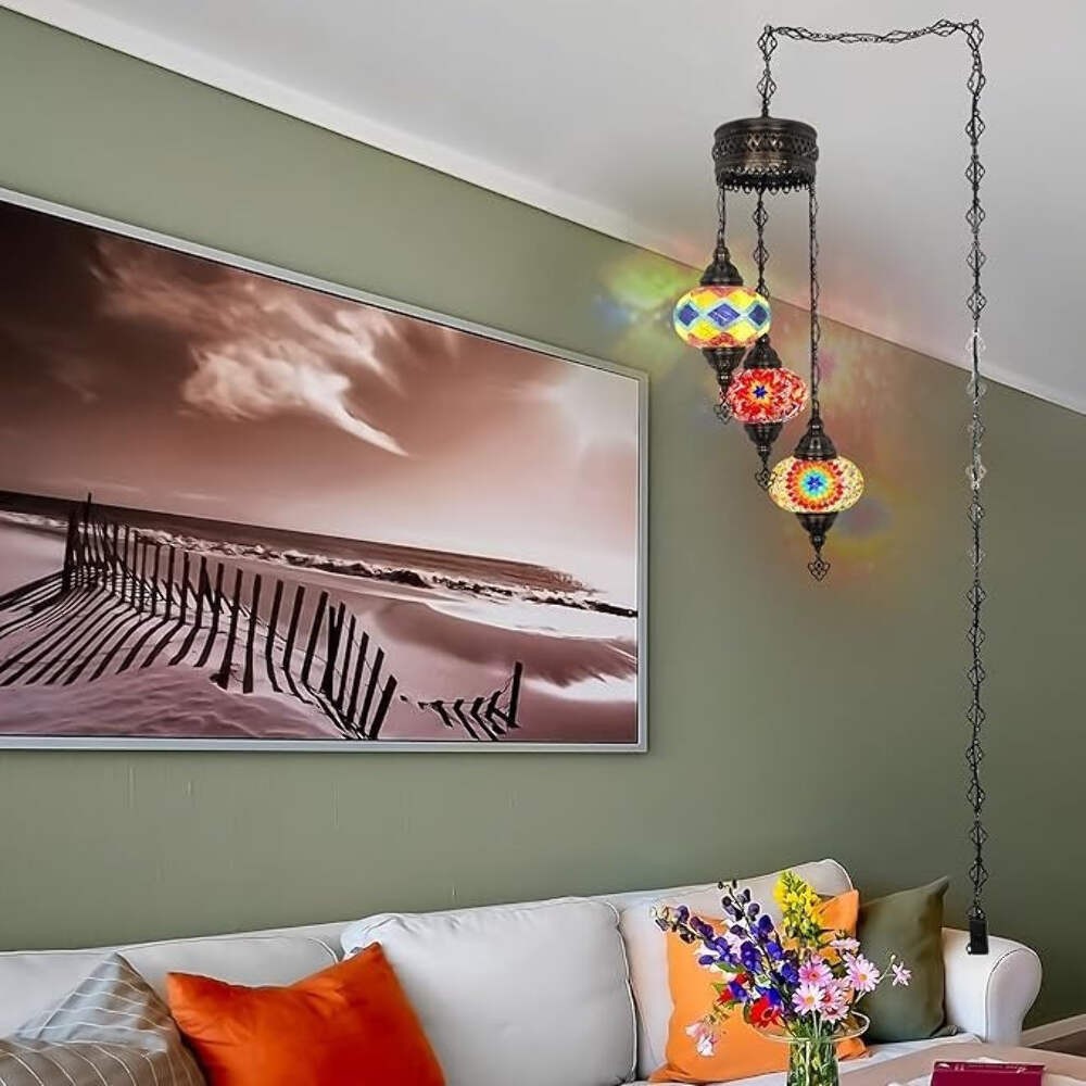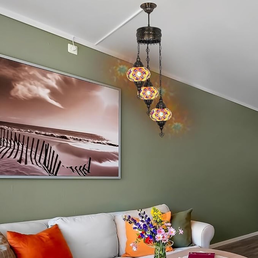 Boho 3-Kugel Mosaik Hängelampe Türkisch Marokkanisch Stil Licht