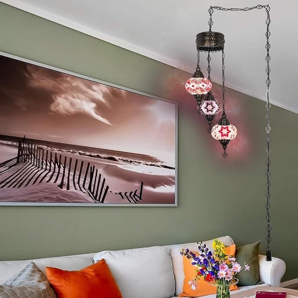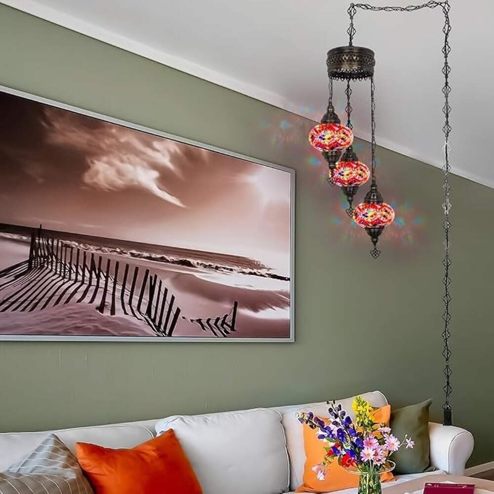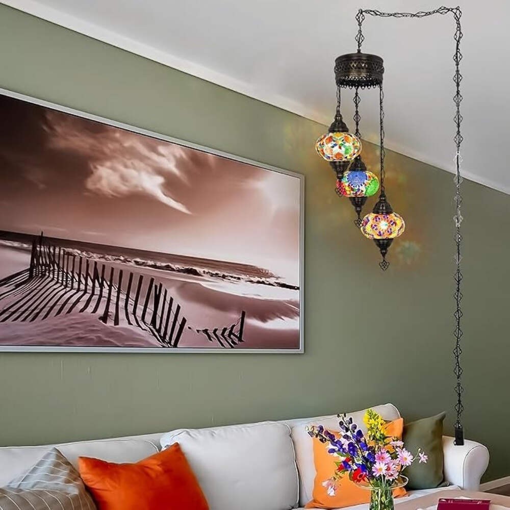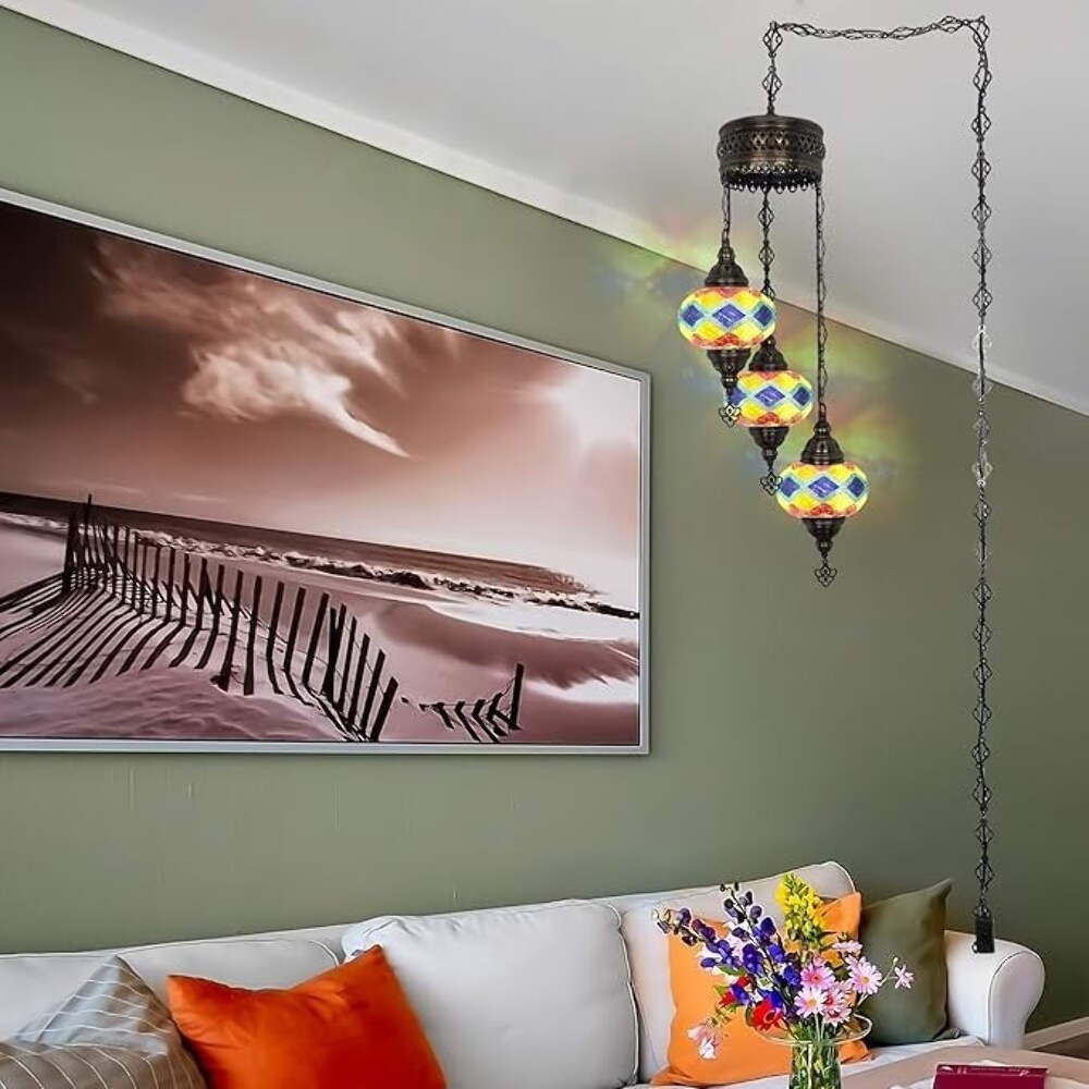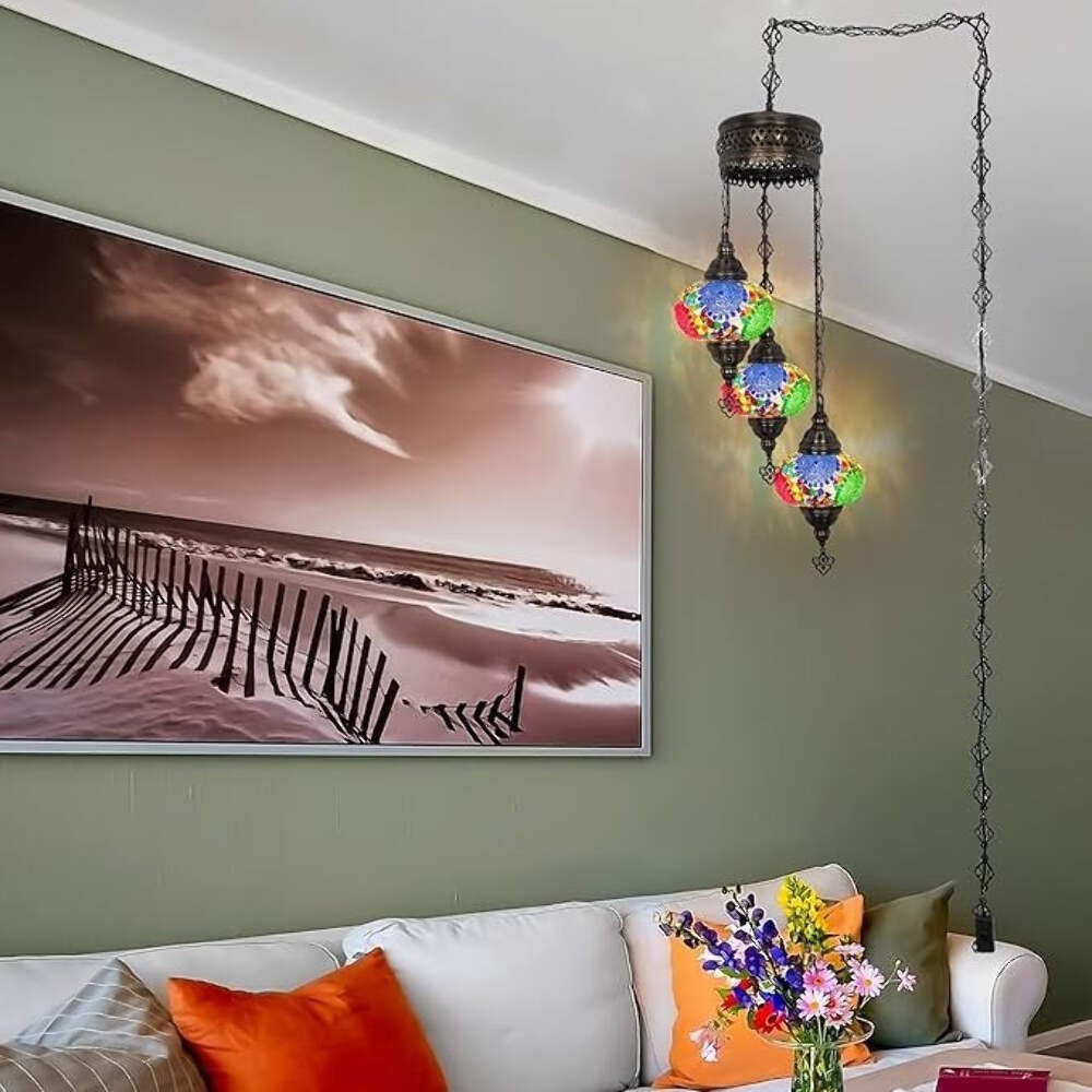 Boho 3-Kugel Mosaik Hängelampe Türkisch Marokkanisch Stil Licht