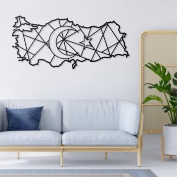 Verleihen Sie Ihrem Zuhause einen Hauch von Eleganz und Symbolkraft! Unser handgefertigtes Metall-Wandbild mit Türkei-Karte, Mond und Stern kombiniert minimalistisches Design mit orientalischer Ästhetik – ein einzigartiger Blickfang in jedem Raum.