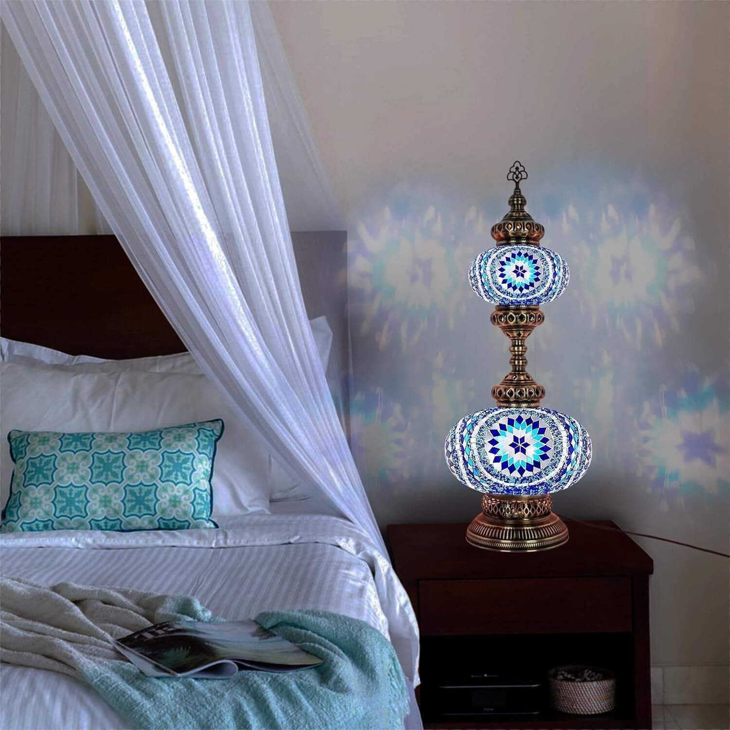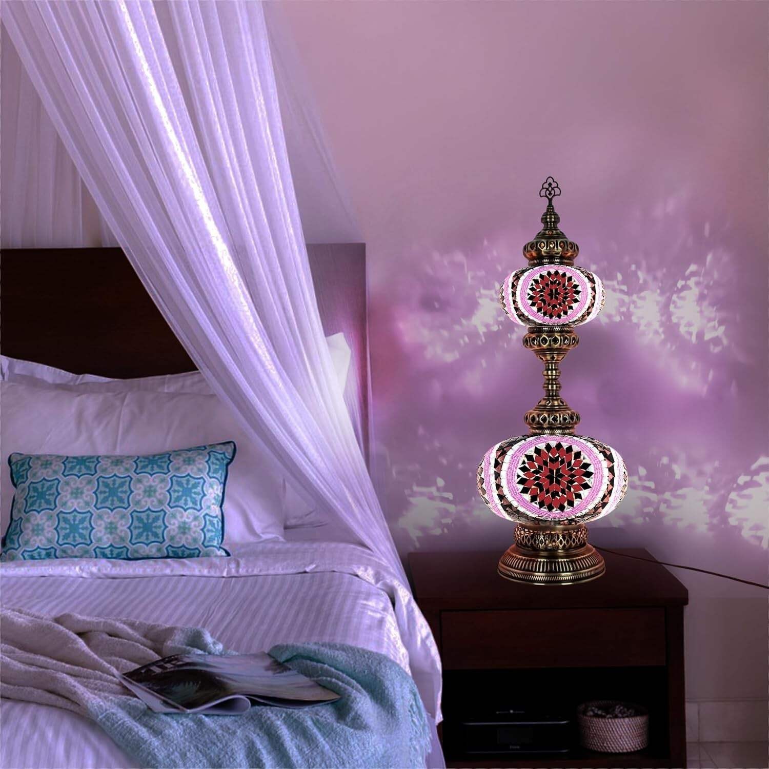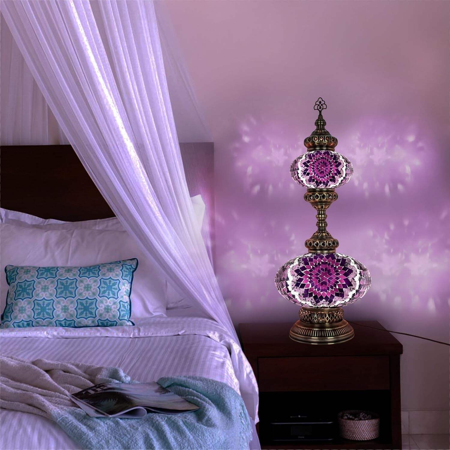After that illuminate your space with this 2 globe turkish table handcrafted Turkish mosaic bedside lamp! Especially the two globe design produces a warm, inviting glow that will create a cozy atmosphere in any room. Thus perfect for any home décor, the unique colors of the mosaic glass will make a bold statement. For example enchanting and captivating, this bedside lamp is a must have!