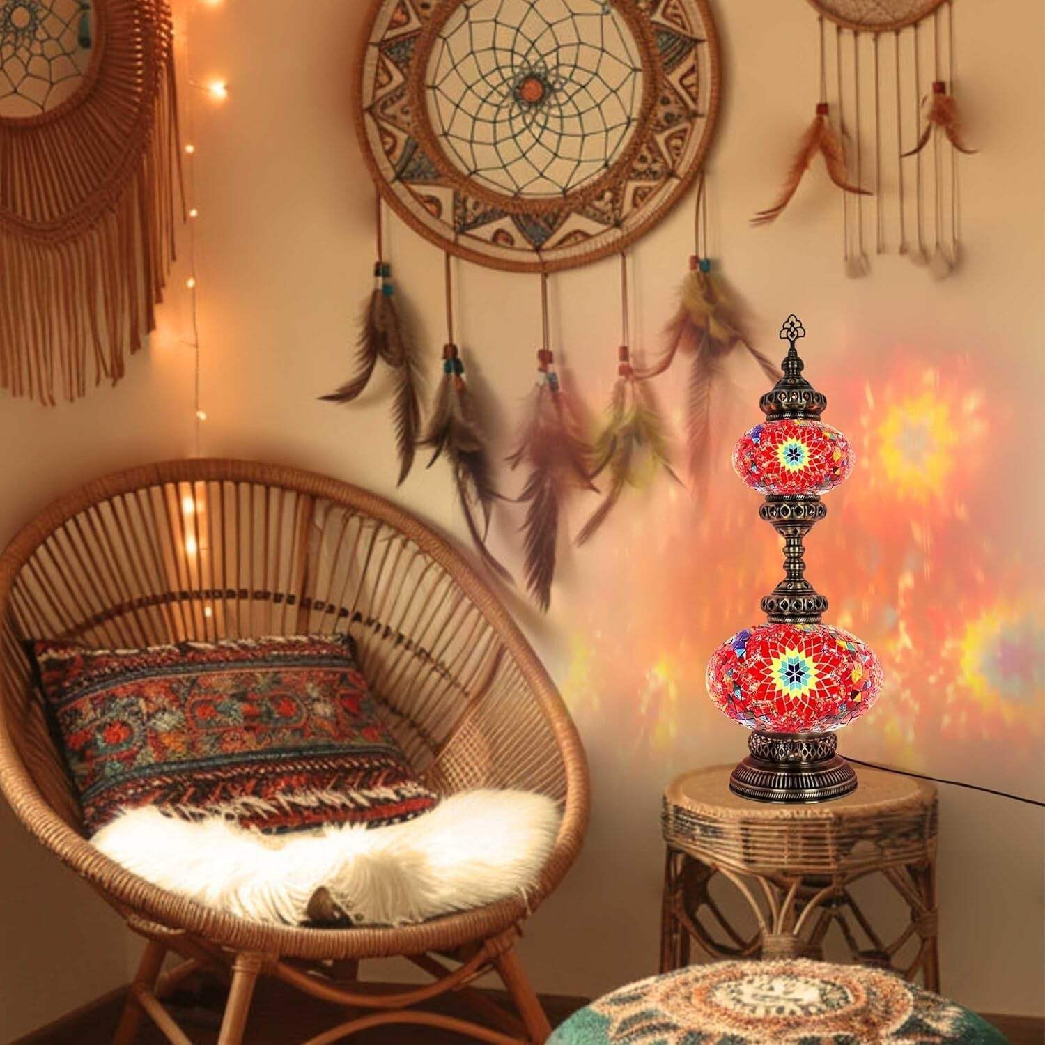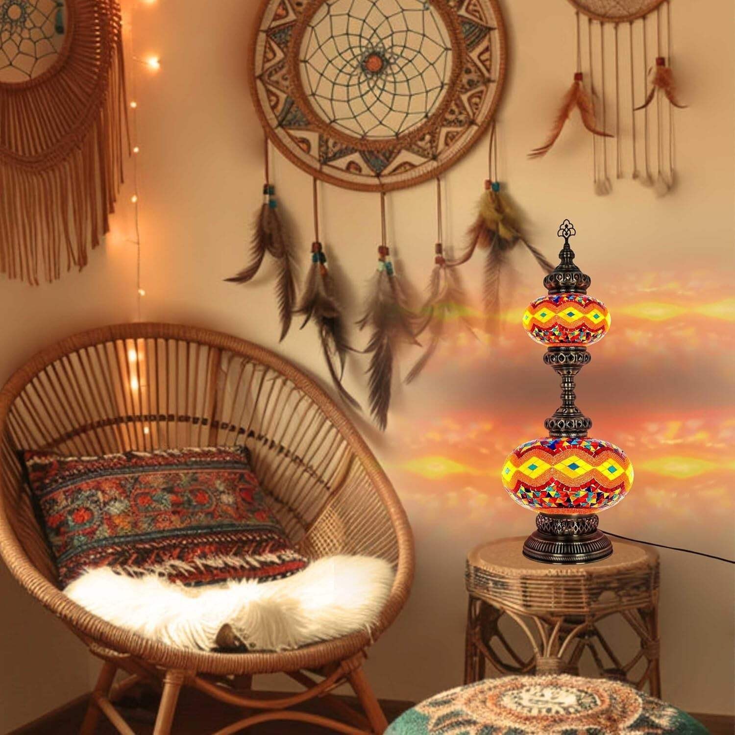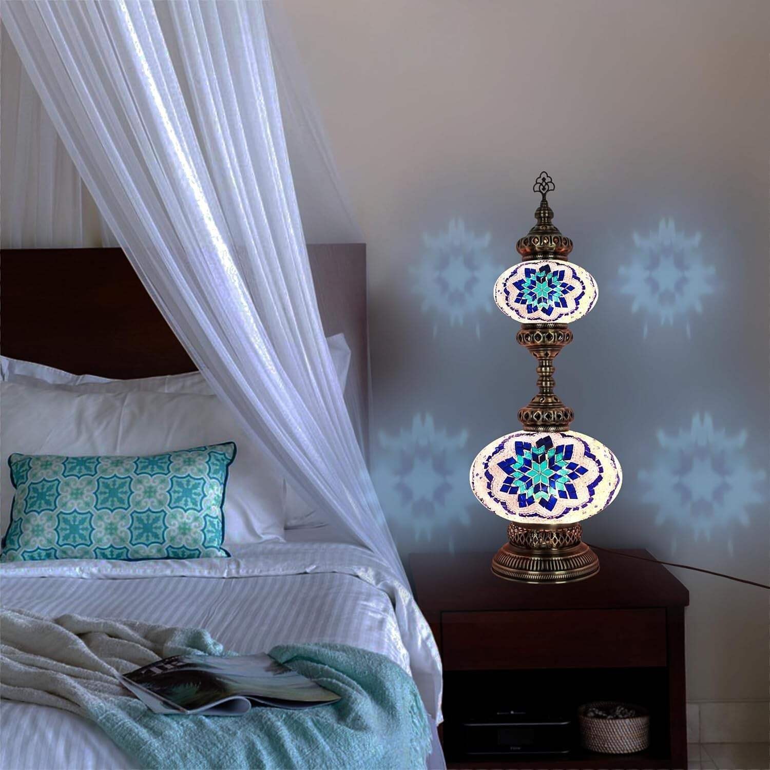 After that illuminate your space with this 2 globe turkish table handcrafted Turkish mosaic bedside lamp! Especially the two globe design produces a warm, inviting glow that will create a cozy atmosphere in any room. Thus perfect for any home décor, the unique colors of the mosaic glass will make a bold statement. For example enchanting and captivating, this bedside lamp is a must have!