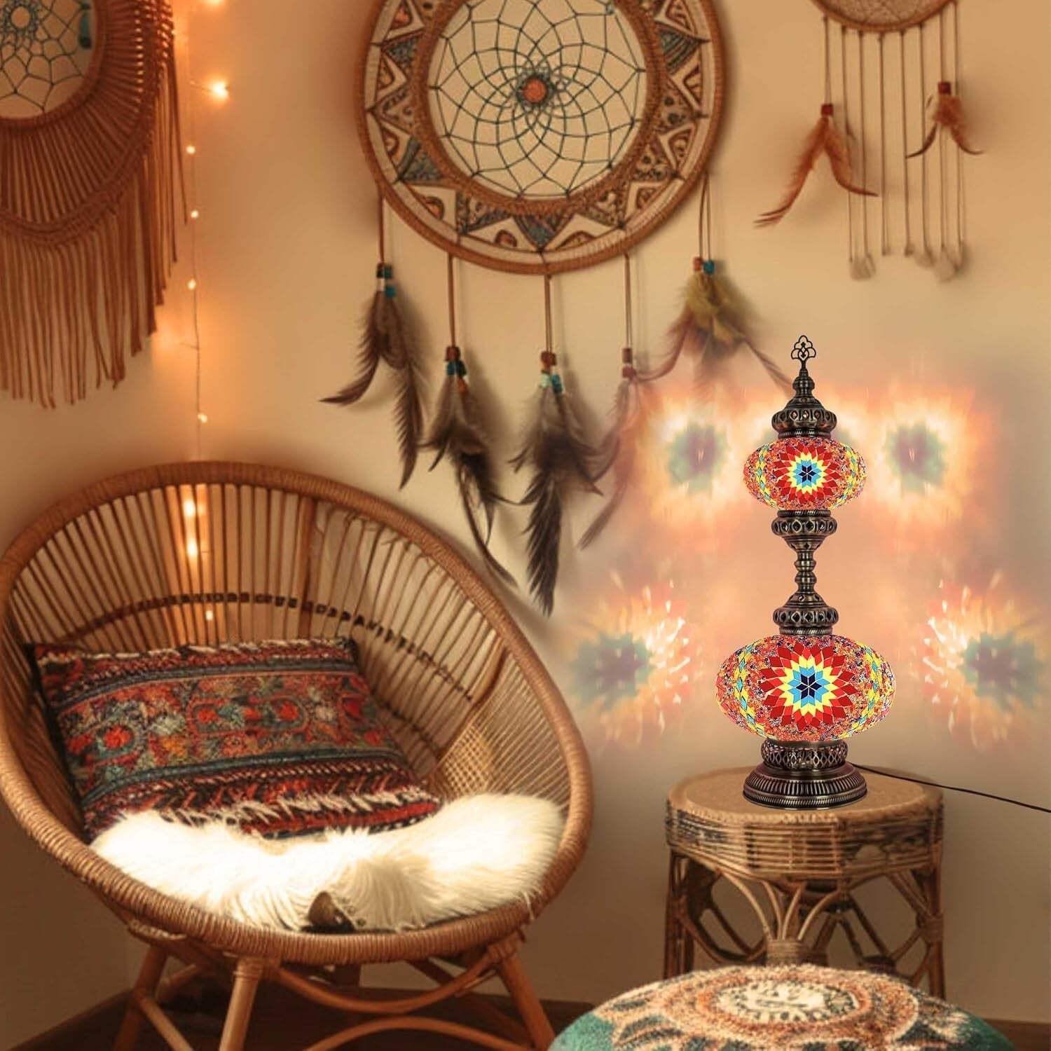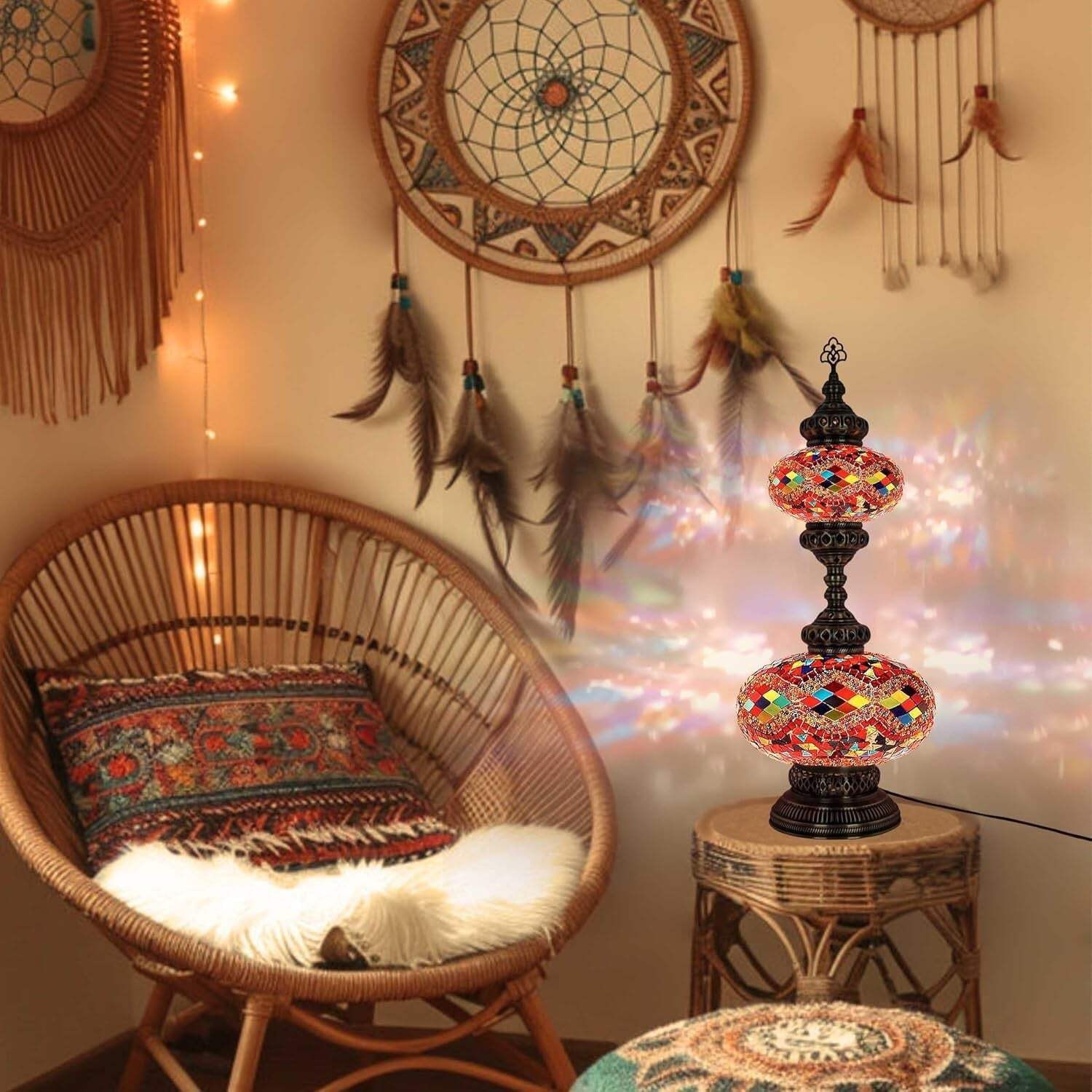 Firstly light up your home with the 2 globe mosaic bedside lamp and take a daring step into the unknown, this Turkish Table Lamp features two globes that will challenge you to explore different paths of illumination with its unique design. Thus dare to be bold and inspired with this captivating light!