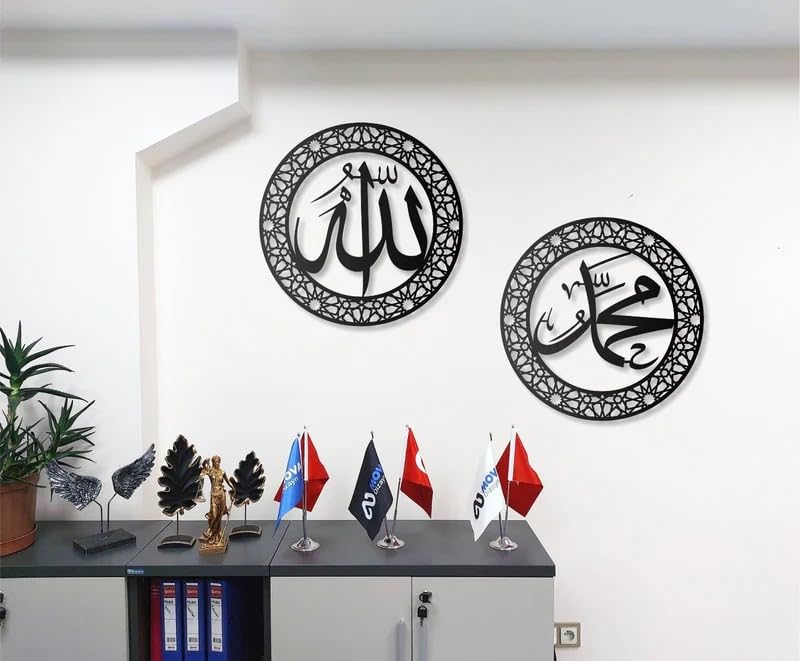 Produktbeschreibung Verleihen Sie Ihrem Zuhause spirituelle Tiefe und Harmonie mit diesem zweiteiligen Set islamischer Wandkunst – „Allah & Muhammad“ in eleganter arabischer Kalligraphie. Dieses Kunstwerk symbolisiert Glauben, Einheit und Frieden, perfekt für jedes muslimische Zuhause. ? Gefertigt aus hochwertigem 1. Klasse-Stahl und mit matter, elektrostatischer Pulverbeschichtung versehen. Die Tafeln stehen 2,5 cm von der Wand ab und erzeugen einen stilvollen 3D-Schwebeeffekt mit Tiefe und Präsenz. Jedes Stück ist 100 % handgefertigt in der Türkei, sorgfältig geprüft und sicher verpackt. Rostfrei, farbbeständig, geruchsfrei und pflegeleicht – für dauerhafte Eleganz. ? Hochwertiger Stahl mit matter Oberfläche ? 2-teiliges Set – „Allah“ & „Muhammad“ Design ? Rostfrei, kratzfest & langlebig ? 2,5 cm Wandabstand für 3D-Schwebeeffekt ? Handarbeit aus der Türkei – leicht zu reinigen Ideal für Wohnzimmer, Gebetszimmer, Büro oder Flur – auch ein bedeutungsvolles Geschenk für Muslime, Familie oder Freunde zu besonderen Anlässen. Verfügbare Größen: 50×50 cm, 70×70 cm