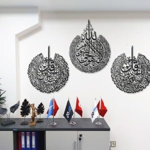 Produktbeschreibung ? 3er Set Islamische Wandkunst aus Metall – „Ayatul Kursi, Surah Al-Falaq & Surah An-Nas“ – 2,5 mm Stärke (jeweils ca. 50×70 cm oder 60×90 cm – 0,10 Zoll Stärke) Verleihen Sie Ihrem Zuhause eine spirituelle Atmosphäre mit diesem einzigartigen 3-teiligen Set islamischer Wanddekoration, das die Suren Ayatul Kursi, Al-Falaq und An-Nas in wunderschöner arabischer Kalligraphie zeigt. Diese drei Suren symbolisieren Schutz, Frieden und göttliche Führung – eine perfekte Kombination aus Glauben und moderner Eleganz. ? Gefertigt aus hochwertigem Stahl, schwebt jedes Wandbild 2,5 cm von der Wand entfernt und erzeugt einen eleganten 3D-Schwebeeffekt, der Ihrem Raum Tiefe und Ausdruck verleiht. Jedes Stück wird 100 % handgefertigt in der Türkei und mit einer matten, elektrostatischen Pulverbeschichtung versehen – für langlebige Qualität, Rostfreiheit und Farbbeständigkeit. ? Rostfrei & Farbbeständig ? Kratzfest & Geruchsfrei ? Leicht mit trockenem Tuch zu reinigen ? Wandmontage inklusive Befestigungselemente Ideal für Wohnzimmer, Gebetszimmer, Büro oder Flur – und ein bedeutungsvolles Geschenk für Muslime, Familie oder Freunde, die spirituelle Kunst schätzen. ? Warum Sie es lieben werden ? 3-teilige Harmonie: Ayatul Kursi, Al-Falaq und An-Nas – vereint im Schutz und Glauben. ?? Handgefertigt & Hochwertig: Aus stabilem Stahl mit matter Pulverbeschichtung. ?? 3D-Schwebeeffekt: 2,5 cm Wandabstand für Tiefe und moderne Eleganz. ?? Zeitlos & Langlebig: Rostfrei, pflegeleicht und farbbeständig. ? Perfektes Geschenk: Ideal für Ramadan, Einweihungen oder spirituelle Anlässe.