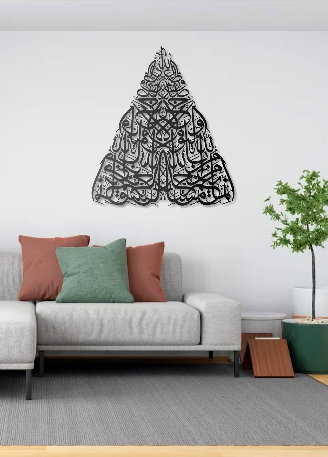 Produktbeschreibung ? 3er Set Islamische Wandkunst aus Metall – „Ayatul Kursi, Surah Al-Falaq & Surah An-Nas“ – 2,5 mm Stärke (jeweils ca. 50×70 cm oder 60×90 cm – 0,10 Zoll Stärke) Verleihen Sie Ihrem Zuhause eine spirituelle Atmosphäre mit diesem einzigartigen 3-teiligen Set islamischer Wanddekoration, das die Suren Ayatul Kursi, Al-Falaq und An-Nas in wunderschöner arabischer Kalligraphie zeigt. Diese drei Suren symbolisieren Schutz, Frieden und göttliche Führung – eine perfekte Kombination aus Glauben und moderner Eleganz. ? Gefertigt aus hochwertigem Stahl, schwebt jedes Wandbild 2,5 cm von der Wand entfernt und erzeugt einen eleganten 3D-Schwebeeffekt, der Ihrem Raum Tiefe und Ausdruck verleiht. Jedes Stück wird 100 % handgefertigt in der Türkei und mit einer matten, elektrostatischen Pulverbeschichtung versehen – für langlebige Qualität, Rostfreiheit und Farbbeständigkeit. ? Rostfrei & Farbbeständig ? Kratzfest & Geruchsfrei ? Leicht mit trockenem Tuch zu reinigen ? Wandmontage inklusive Befestigungselemente Ideal für Wohnzimmer, Gebetszimmer, Büro oder Flur – und ein bedeutungsvolles Geschenk für Muslime, Familie oder Freunde, die spirituelle Kunst schätzen. ? Warum Sie es lieben werden ? 3-teilige Harmonie: Ayatul Kursi, Al-Falaq und An-Nas – vereint im Schutz und Glauben. ?? Handgefertigt & Hochwertig: Aus stabilem Stahl mit matter Pulverbeschichtung. ?? 3D-Schwebeeffekt: 2,5 cm Wandabstand für Tiefe und moderne Eleganz. ?? Zeitlos & Langlebig: Rostfrei, pflegeleicht und farbbeständig. ? Perfektes Geschenk: Ideal für Ramadan, Einweihungen oder spirituelle Anlässe.