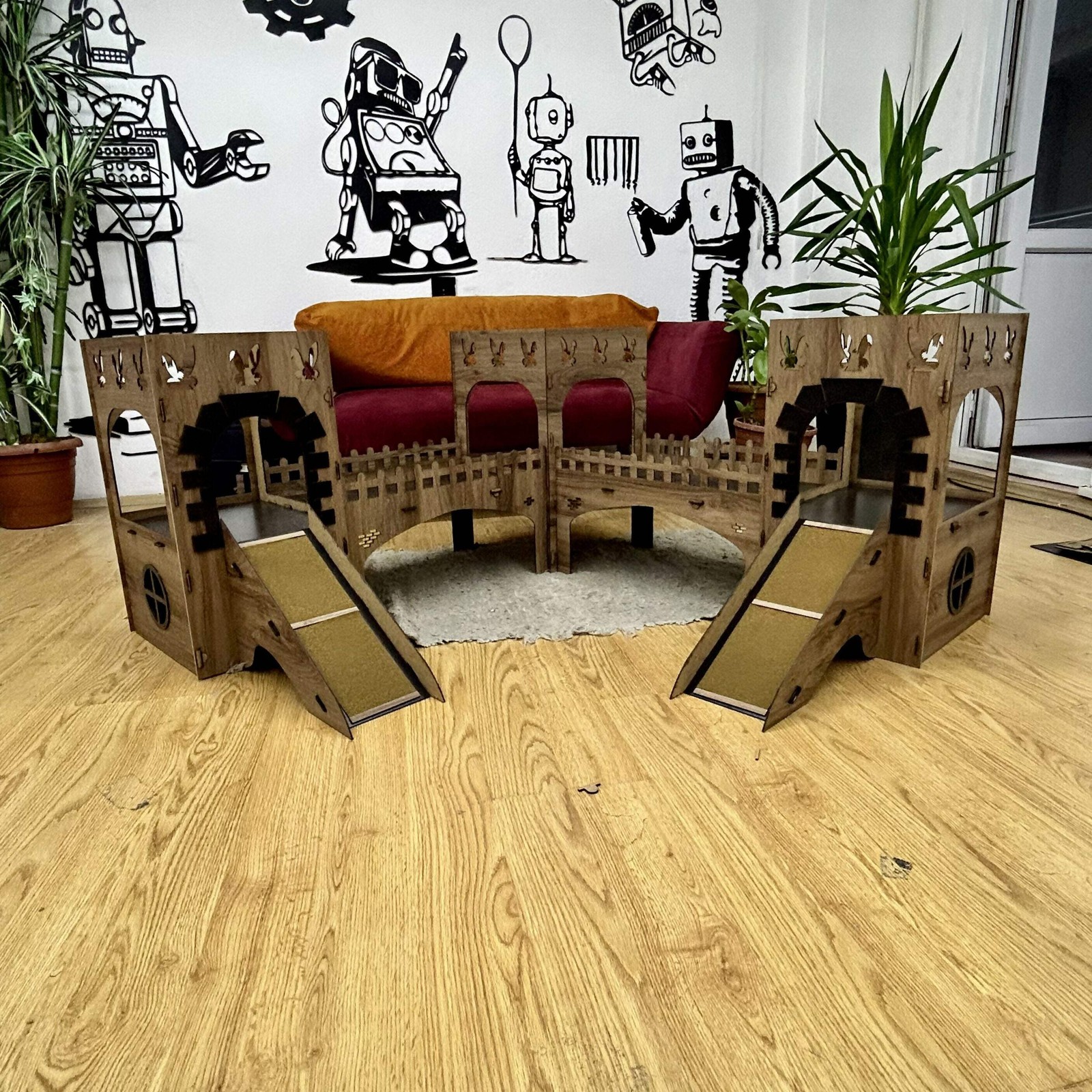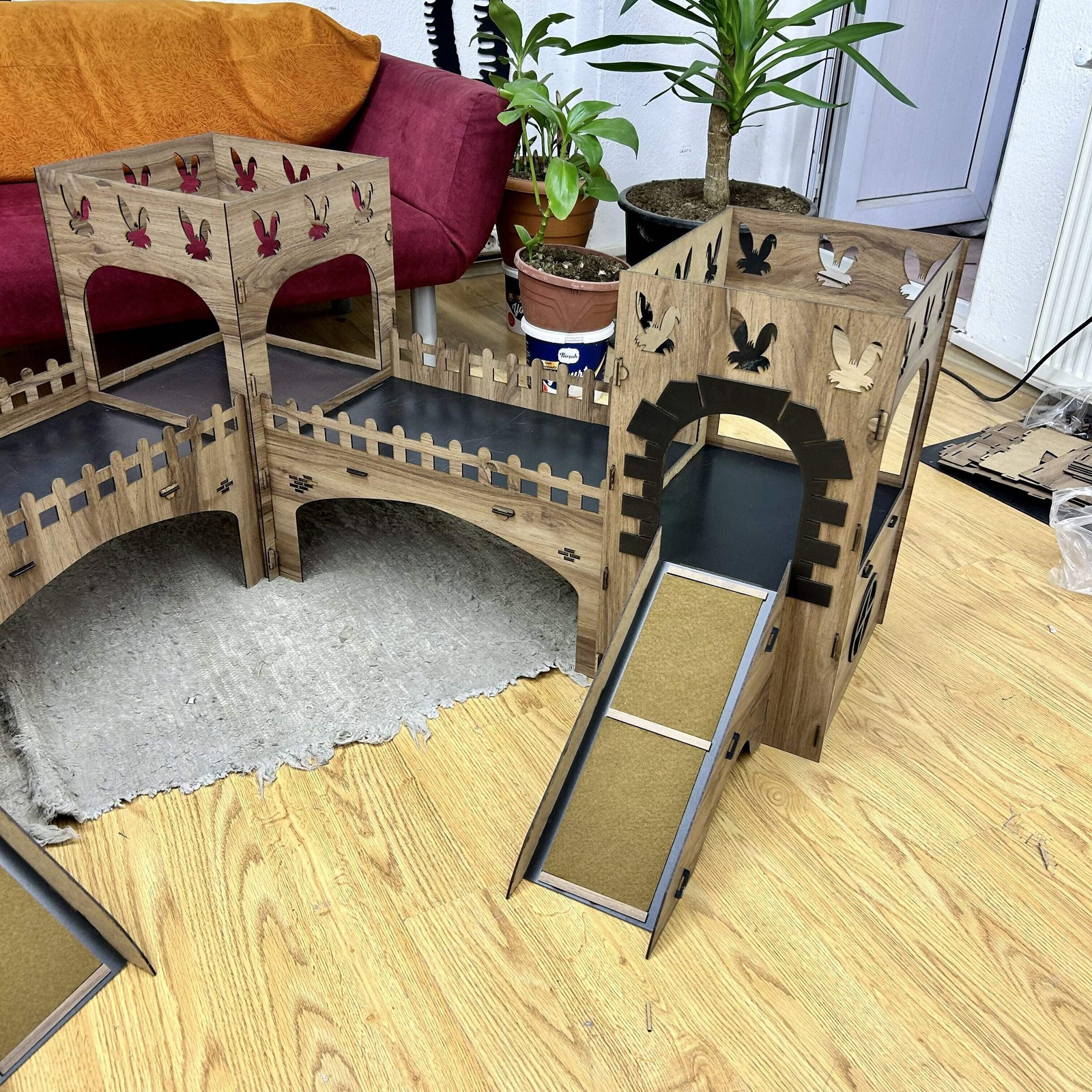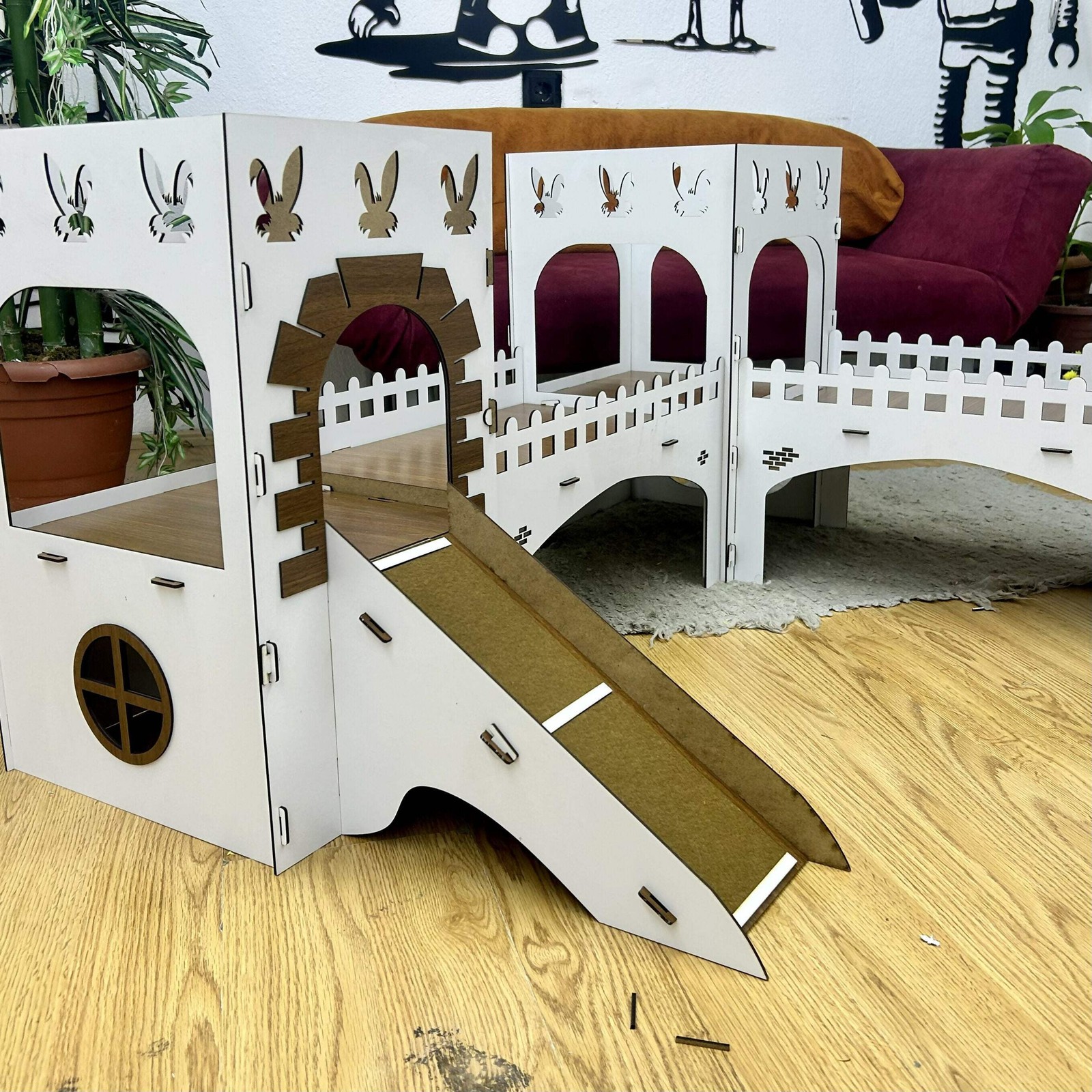 🐰Verschönern Sie die Welt Ihrer Kaninchen: Turm-Kaninchenparadies mit Brücken 🐰🎁 Zu jeder Bestellung gibt es eine kostenlose Heuraufe 🎁🐇🐰Willkommen in unserer Etsy-Ecke! Hier präsentieren wir Ihnen mit Stolz handgefertigte, zerlegbare Kaninchenhäuser, die Komfort, Stil und Sicherheit für Ihre geliebten Fellnasen neu definieren. Jedes unserer Häuser wird sorgfältig aus hochwertigem 3-mm-MDF-Material gefertigt und ist somit nicht nur ein Unterschlupf, sondern ein wahres Paradies für Ihre Kaninchen. Wir verfügen über Zertifizierungen, die die Gesundheit und Sicherheit unserer Produkte bestätigen und Ihnen die verdiente Sicherheit geben.👉Drei Türme: Verbunden durch Brücken zu einer imposanten BurgStellen Sie sich vor, wie Sie die Welt Ihrer Kaninchen mit einem inspirierenden Kaninchenparadies erweitern, dessen imposante Burgtürme durch Brücken verbunden sind. Drei miteinander verbundene Türme bieten Ihren Kaninchen einen einzigartigen Lebensraum. Die Brücken, die die Türme verbinden, bilden einen beeindruckenden Blickfang und führen zu einer zentralen Burg. Treppen an beiden Seiten der Türme ermöglichen es Ihren Kaninchen, die Höhen ihrer Burg bequem zu erkunden.👉Einzigartiges Design und FunktionalitätUnser einzigartiges Kaninchenhaus besticht nicht nur durch seine Ästhetik, sondern auch durch seine Funktionalität. Jeder Turm erfüllt einen anderen Zweck. Das Erdgeschoss ist ideal zum Spielen und Erkunden, während die zweite Etage einen gemütlichen Platz zum Entspannen und Genießen der Aussicht bietet. Die zentrale Burg, die über Brücken erreichbar ist, bietet Ihren Kaninchen einen sicheren Rückzugsort.👉Sicherheit und Wohlbefinden📐 Abmessungen der Kaninchenburg:Höhe: 55 cm / 21,6 ZollBreite eines Turms: 32 cm x 32 cm / 12,6 Zoll x 12,6 ZollBreite der Brücke: 55 cm x 32 cm / 21,6 Zoll x 12,6 ZollWir wissen, wie wichtig das Wohlbefinden Ihrer Kaninchen ist. Unser zerlegbares Kaninchenhaus wird aus kaninchenfreundlichem, 3 mm starkem MDF-Material gefertigt, das für seine Langlebigkeit und Sicherheit bekannt ist. Unser Engagement für die Gesundheit Ihrer Tiere wird durch Zertifizierungen unterstrichen, die die Qualität und Sicherheit unserer Produkte bestätigen. Sie können beruhigt sein, denn Ihre Kaninchen befinden sich in einer sicheren und gesunden Umgebung.👉Einfacher Aufbau und TransportDas Leben ist ständig in Bewegung, und Ihre Kaninchen sind Teil dieses Abenteuers. Dank des zerlegbaren Designs lässt sich das Haus einfach auf- und abbauen. Ob Sie umziehen oder einfach nur Ihre Wohnung umgestalten – das Kaninchenparadies kann mitkommen. Es ist die perfekte Lösung für moderne Tierhalter, die Wert auf Komfort und das Wohlbefinden ihrer Lieblinge legen.👉FazitZusammenfassend lässt sich sagen, dass unser mit Brücken verbundenes Turm-Kaninchenhaus mehr als nur ein Zuhause ist; es ist ein Erlebnis. Es bietet die Möglichkeit, die Welt Ihrer Kaninchen um ein einzigartiges, sicheres, stilvolles und funktionales Umfeld zu erweitern. Drei miteinander verbundene Türme, die durch Brücken verbunden sind, bieten Ihren Kaninchen eine Welt voller Entdeckungen und Abenteuer. Unsere Produkte sind gesundheits- und sicherheitszertifiziert, sodass Ihre Kaninchen bestens aufgehoben sind. Worauf warten Sie noch? Schenken Sie Ihren Kaninchen ein außergewöhnliches Zuhause und ein zerlegbares Kaninchenparadies, das so fantastisch ist wie ihre wildesten Abenteuer.