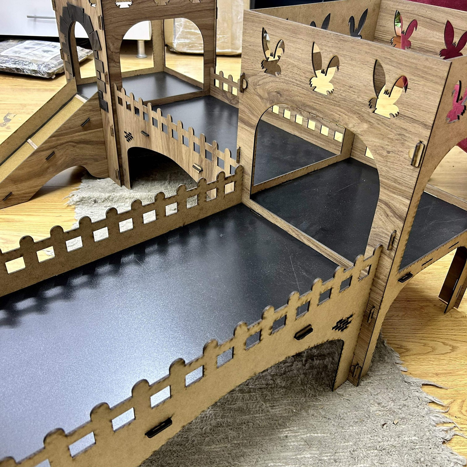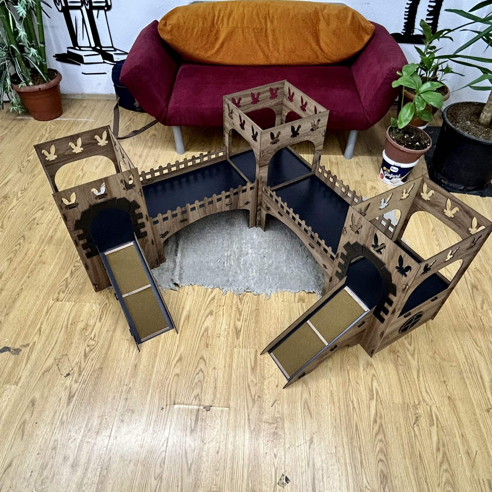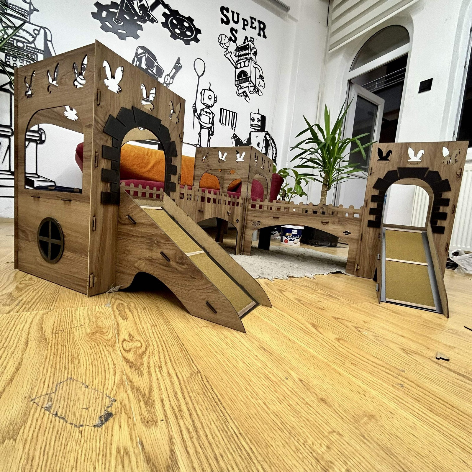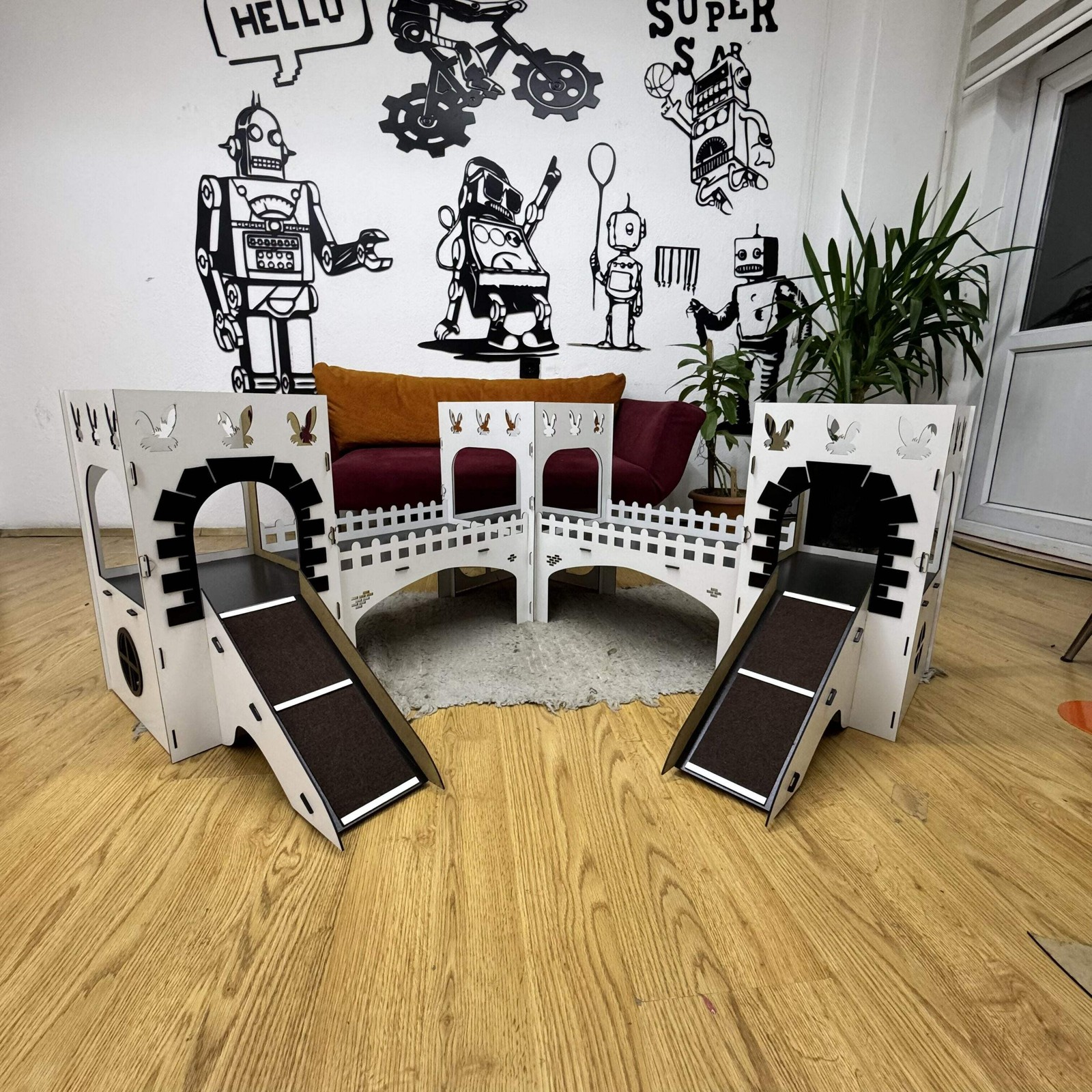 🐰Verschönern Sie die Welt Ihrer Kaninchen: Turm-Kaninchenparadies mit Brücken 🐰🎁 Zu jeder Bestellung gibt es eine kostenlose Heuraufe 🎁🐇🐰Willkommen in unserer Etsy-Ecke! Hier präsentieren wir Ihnen mit Stolz handgefertigte, zerlegbare Kaninchenhäuser, die Komfort, Stil und Sicherheit für Ihre geliebten Fellnasen neu definieren. Jedes unserer Häuser wird sorgfältig aus hochwertigem 3-mm-MDF-Material gefertigt und ist somit nicht nur ein Unterschlupf, sondern ein wahres Paradies für Ihre Kaninchen. Wir verfügen über Zertifizierungen, die die Gesundheit und Sicherheit unserer Produkte bestätigen und Ihnen die verdiente Sicherheit geben.👉Drei Türme: Verbunden durch Brücken zu einer imposanten BurgStellen Sie sich vor, wie Sie die Welt Ihrer Kaninchen mit einem inspirierenden Kaninchenparadies erweitern, dessen imposante Burgtürme durch Brücken verbunden sind. Drei miteinander verbundene Türme bieten Ihren Kaninchen einen einzigartigen Lebensraum. Die Brücken, die die Türme verbinden, bilden einen beeindruckenden Blickfang und führen zu einer zentralen Burg. Treppen an beiden Seiten der Türme ermöglichen es Ihren Kaninchen, die Höhen ihrer Burg bequem zu erkunden.👉Einzigartiges Design und FunktionalitätUnser einzigartiges Kaninchenhaus besticht nicht nur durch seine Ästhetik, sondern auch durch seine Funktionalität. Jeder Turm erfüllt einen anderen Zweck. Das Erdgeschoss ist ideal zum Spielen und Erkunden, während die zweite Etage einen gemütlichen Platz zum Entspannen und Genießen der Aussicht bietet. Die zentrale Burg, die über Brücken erreichbar ist, bietet Ihren Kaninchen einen sicheren Rückzugsort.👉Sicherheit und Wohlbefinden📐 Abmessungen der Kaninchenburg:Höhe: 55 cm / 21,6 ZollBreite eines Turms: 32 cm x 32 cm / 12,6 Zoll x 12,6 ZollBreite der Brücke: 55 cm x 32 cm / 21,6 Zoll x 12,6 ZollWir wissen, wie wichtig das Wohlbefinden Ihrer Kaninchen ist. Unser zerlegbares Kaninchenhaus wird aus kaninchenfreundlichem, 3 mm starkem MDF-Material gefertigt, das für seine Langlebigkeit und Sicherheit bekannt ist. Unser Engagement für die Gesundheit Ihrer Tiere wird durch Zertifizierungen unterstrichen, die die Qualität und Sicherheit unserer Produkte bestätigen. Sie können beruhigt sein, denn Ihre Kaninchen befinden sich in einer sicheren und gesunden Umgebung.👉Einfacher Aufbau und TransportDas Leben ist ständig in Bewegung, und Ihre Kaninchen sind Teil dieses Abenteuers. Dank des zerlegbaren Designs lässt sich das Haus einfach auf- und abbauen. Ob Sie umziehen oder einfach nur Ihre Wohnung umgestalten – das Kaninchenparadies kann mitkommen. Es ist die perfekte Lösung für moderne Tierhalter, die Wert auf Komfort und das Wohlbefinden ihrer Lieblinge legen.👉FazitZusammenfassend lässt sich sagen, dass unser mit Brücken verbundenes Turm-Kaninchenhaus mehr als nur ein Zuhause ist; es ist ein Erlebnis. Es bietet die Möglichkeit, die Welt Ihrer Kaninchen um ein einzigartiges, sicheres, stilvolles und funktionales Umfeld zu erweitern. Drei miteinander verbundene Türme, die durch Brücken verbunden sind, bieten Ihren Kaninchen eine Welt voller Entdeckungen und Abenteuer. Unsere Produkte sind gesundheits- und sicherheitszertifiziert, sodass Ihre Kaninchen bestens aufgehoben sind. Worauf warten Sie noch? Schenken Sie Ihren Kaninchen ein außergewöhnliches Zuhause und ein zerlegbares Kaninchenparadies, das so fantastisch ist wie ihre wildesten Abenteuer.