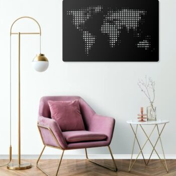 Das Punkt-Weltkarten-Design steht für Reisen, Entdeckungslust und moderne Wohnästhetik. Perfekt für: