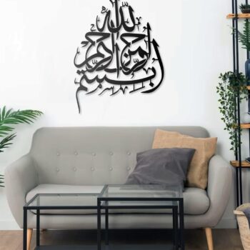 Produktbeschreibung ? Islamische Wandkunst aus Metall – „Bismillah“ Arabische Kalligraphie – 50×32 cm oder 70×45 cm – 2,5 mm Stärke Verleihen Sie Ihrem Zuhause spirituelle Ruhe und zeitlose Eleganz mit dieser atemberaubenden islamischen Metall-Wanddekoration „Bismillah“ in feiner arabischer Kalligraphie. Das Wort „Bismillah“ – Im Namen Allahs – steht für Segen, Neubeginn und göttliche Gnade. ? Gefertigt aus hochwertigem 1. Klasse-Stahl, schwebt das Wandbild 2,5 cm von der Wand entfernt und erzeugt einen eleganten 3D-Schwebeeffekt, der Ihrem Raum Tiefe und Ausdruck verleiht. Jedes Stück wird mit Liebe handgefertigt in der Türkei und mit einer matten, elektrostatischen Pulverbeschichtung versehen – rostfrei, farbbeständig und pflegeleicht. ? 100 % Handarbeit ? Rostfrei & kratzfest ? Kein Geruch, keine Verfärbung ? Pflegeleicht – einfach mit einem weichen Tuch reinigen Ideal für Wohnzimmer, Büro, Flur oder Gebetszimmer – und ein bedeutungsvolles Geschenk für Muslime, Familie oder Freunde, die spirituelle und moderne Inneneinrichtung schätzen. ? Warum Sie es lieben werden ? Spirituelles Design: „Bismillah“ – Symbol für Gnade und Neubeginn ?? Hochwertige Handarbeit: Aus stabilem Stahl mit matter Pulverbeschichtung ?? 3D-Schwebeeffekt: 2,5 cm Abstand für Tiefe & modernen Look ?? Langlebig & Zeitlos: Rostfrei, kratzfest & leicht zu reinigen ? Perfektes Geschenk: Für Ramadan, Einzug, Hochzeiten oder Geburtstage