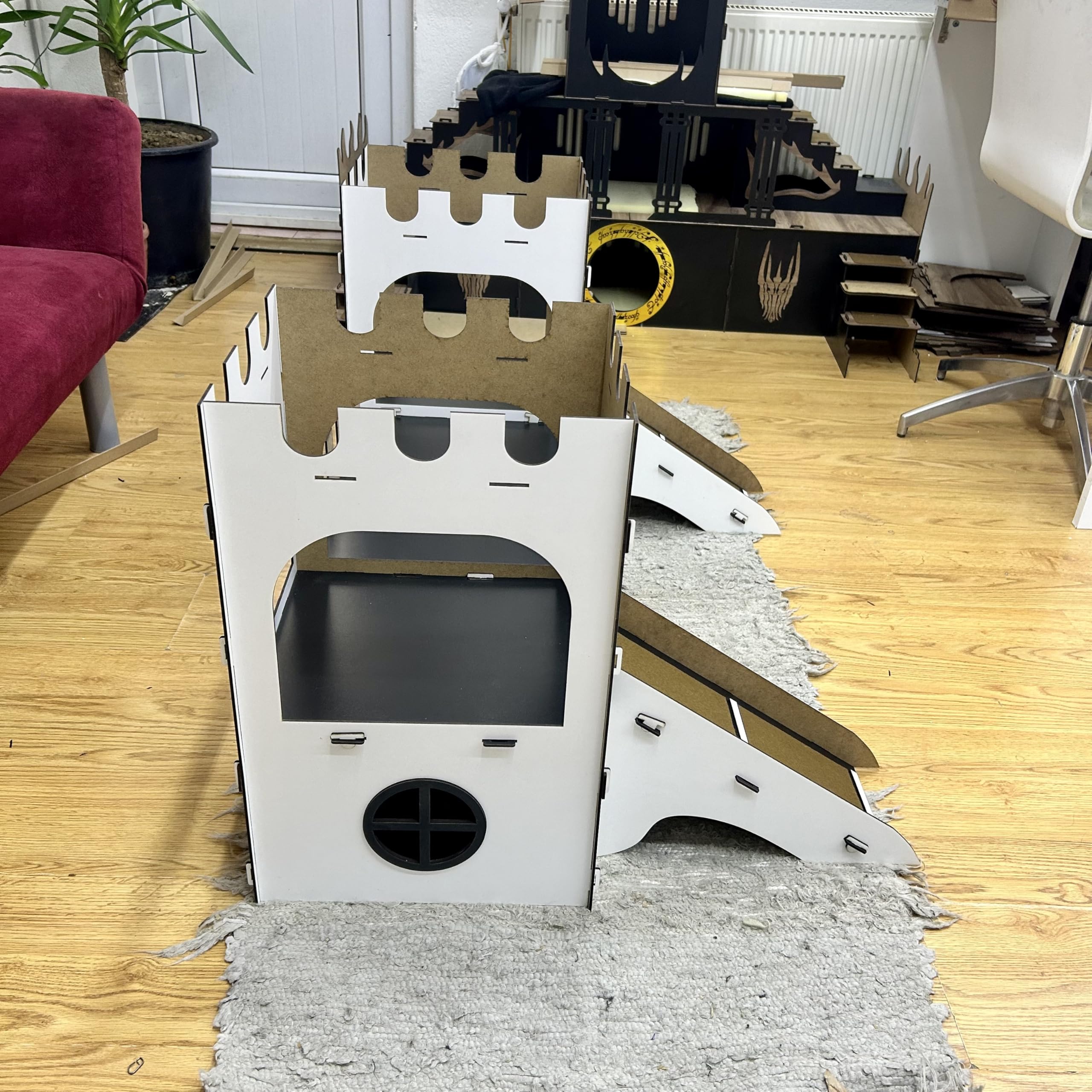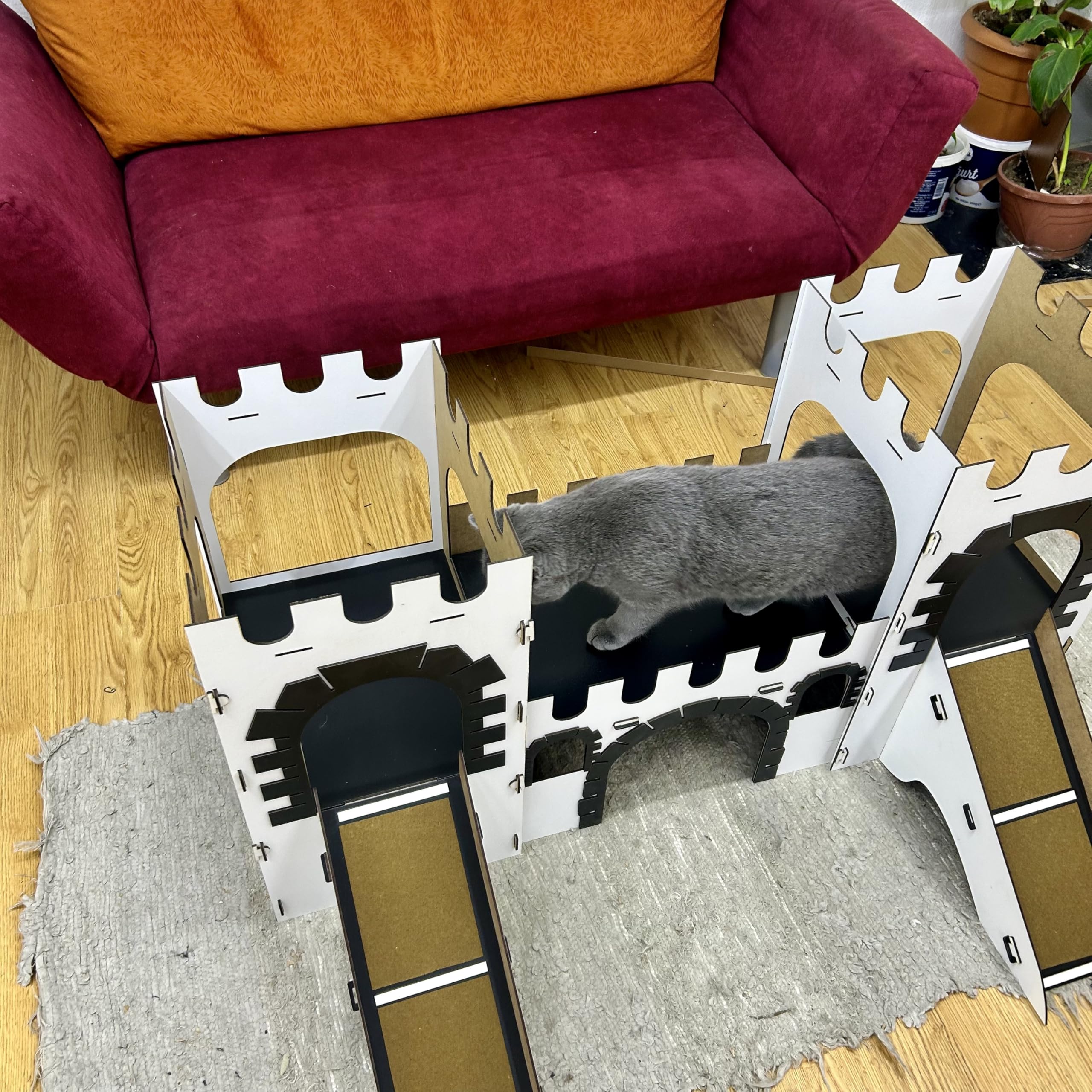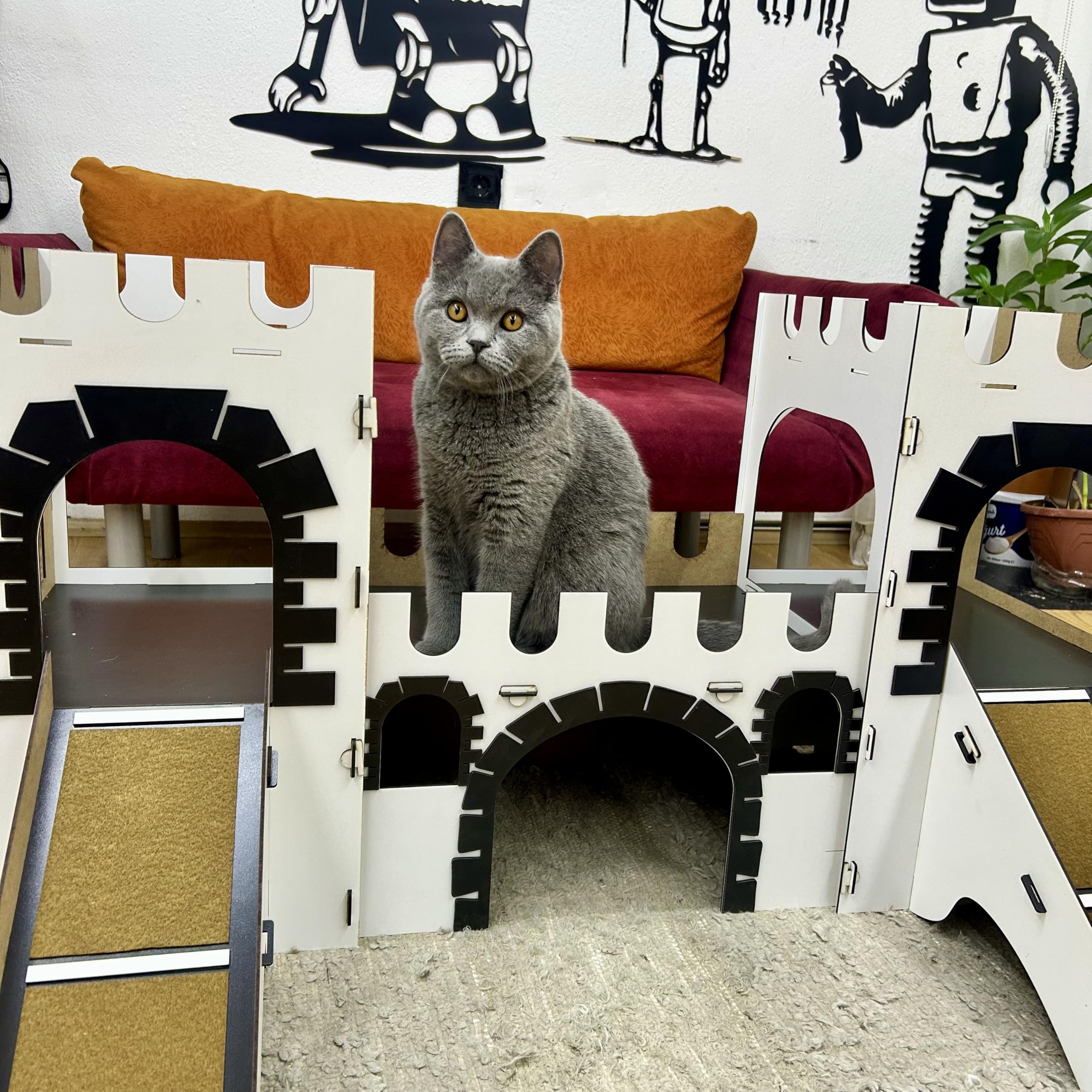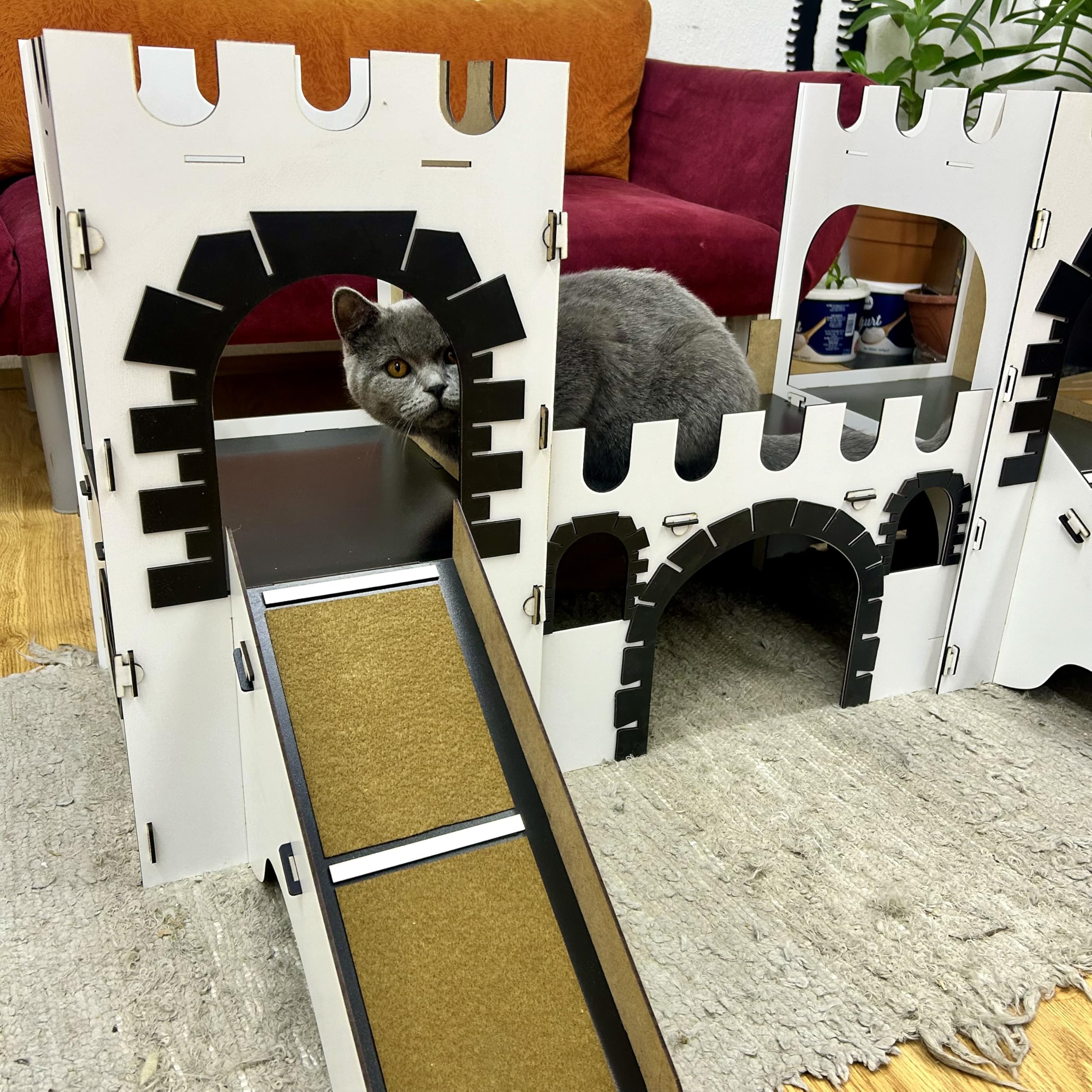 ??? 2-STÖCKIG MIT HOLZBRÜCKE, 4 ZIMMER, GEEIGNET FÜR KATZENFAMILIEN, KATZENHAUS IM ZWEITURENSTIL, EIN PARADIES FÜR KATZEN ??? ??? Bitte lesen Sie die vollständige Beschreibung!!! ??? ? Dieses Haus bietet Platz für bis zu 2 Katzen und versorgt sie mit reichlich Wohnraum und einem Spielplatz. Dieses große Katzenhaus mit 2 Etagen, Treppen und einer Terrasse – ein platzsparender, stilvoller, leichter und einfach zu transportierender Zufluchtsort – wird sowohl Ihnen als auch Ihren Katzenfreunden Freude bereiten. Es ist auch für Katzen mit einem Gewicht von bis zu etwa 10 kg geeignet. Das ist einfach perfekt! ? ?Merkmale des Erdgeschosses: Die Eingangstür ist recht breit und gewährleistet einen einfachen Zugang. Öffnungen auf beiden Seiten sorgen für viel Licht und frische Luft. Das Schloss hat Eingänge auf beiden Seiten und ist von innen mit der Mitte verbunden. ?? ?Merkmale der Brücke: Die Brücke ist recht breit und elegant und verfügt über stilvolle Schutzvorrichtungen, um Stürze von den Seiten zu verhindern. ?Merkmale des Obergeschosses: Treppen auf beiden Seiten und in der Mitte erleichtern den Katzen den Aufstieg. Die Treppen und die Rampe sind mit rutschfestem Filz überzogen. Dies ist ein wunderschön gestaltetes zweistöckiges Katzenhaus aus Holz, das aus 3 mm starken Sperrholzplatten gefertigt wurde. ?Maße des Katzenburg: Höhe: 57 cm / 22,4“ Gesamtbreite: 136 cm x 35 cm Breite des unteren Eckbereichs: 27 cm x 26 cm Breite des oberen Eckbereichs: 27 cm x 36 cm Brückenlänge: 53 cm / 20,9“ Brückenbreite: 31 cm / 12,2“ ?Material: Unser oberstes Ziel ist es, dass unsere Katzenfreunde ein gesundes und glückliches Leben führen. In diesem Zusammenhang fertigen wir Haustierburgen aus Sperrholz. Das gesamte Sperrholz ist zertifiziert, von höchster Qualität und antibakteriell. Die Einzigartigkeit von Holz liegt in der unverwechselbaren Maserung jedes einzelnen Stücks, wodurch jedes Produkt zu einem Unikat wird. Die Wandstärke beträgt 3 mm. (Hinweis: Zertifikate über die verwendeten Materialien können auf Anfrage zur Verfügung gestellt werden.) ? ?Zusätzliche Informationen zur Einrichtung: 1- Wir wischen das Produkt gründlich mit einem Seifentuch ab, verpacken es sicher und versenden es. Wenn das Produkt bei Ihnen eintrifft, können Sie es ohne Bedenken verwenden. 2- Achten Sie auf die richtige Platzierung der Kerben! 3- Schlösser sind im Lieferumfang enthalten! Kleine Teile auf einem kleinen Teller. Setzen Sie diese Teile am Ende der Installation in die Löcher ein. Es kann sein, dass sie anfangs nicht richtig sitzen, aber sie werden fest sitzen. Hinweis: Nach Abschluss der Installation denken Sie bitte daran, Fotos zu machen und uns Feedback zu geben. ?????? ?Pflege des Katzenkastells: Sie können es ganz einfach mit einem feuchten Tuch reinigen. Es ist für den Innen- und Außenbereich geeignet, aber achten Sie darauf, es nicht im Regen oder in direktem Sonnenlicht stehen zu lassen. Es wird zerlegt versandt. Die Installation ist unkompliziert, eine Montageanleitung liegt bei. Bei Fragen können Sie sich gerne an uns wenden. ? Hinweis: Da die Häuser lasergeschnitten sind, kann es anfangs zu einem Brandgeruch kommen. Um diesen Geruch zu minimieren, wischen wir es mit einem Seifentuch ab und lüften es. Da es jedoch verpackt ist und etwa eine Woche lang transportiert wird, kann es beim ersten Öffnen zu einem leichten Geruch kommen. Der Geruch verflüchtigt sich nach einigen Tagen nach der Installation. VIELEN DANK FÜR IHREN BESUCH IN UNSEREM SHOP, VIEL SPASS BEIM EINKAUFEN! ???