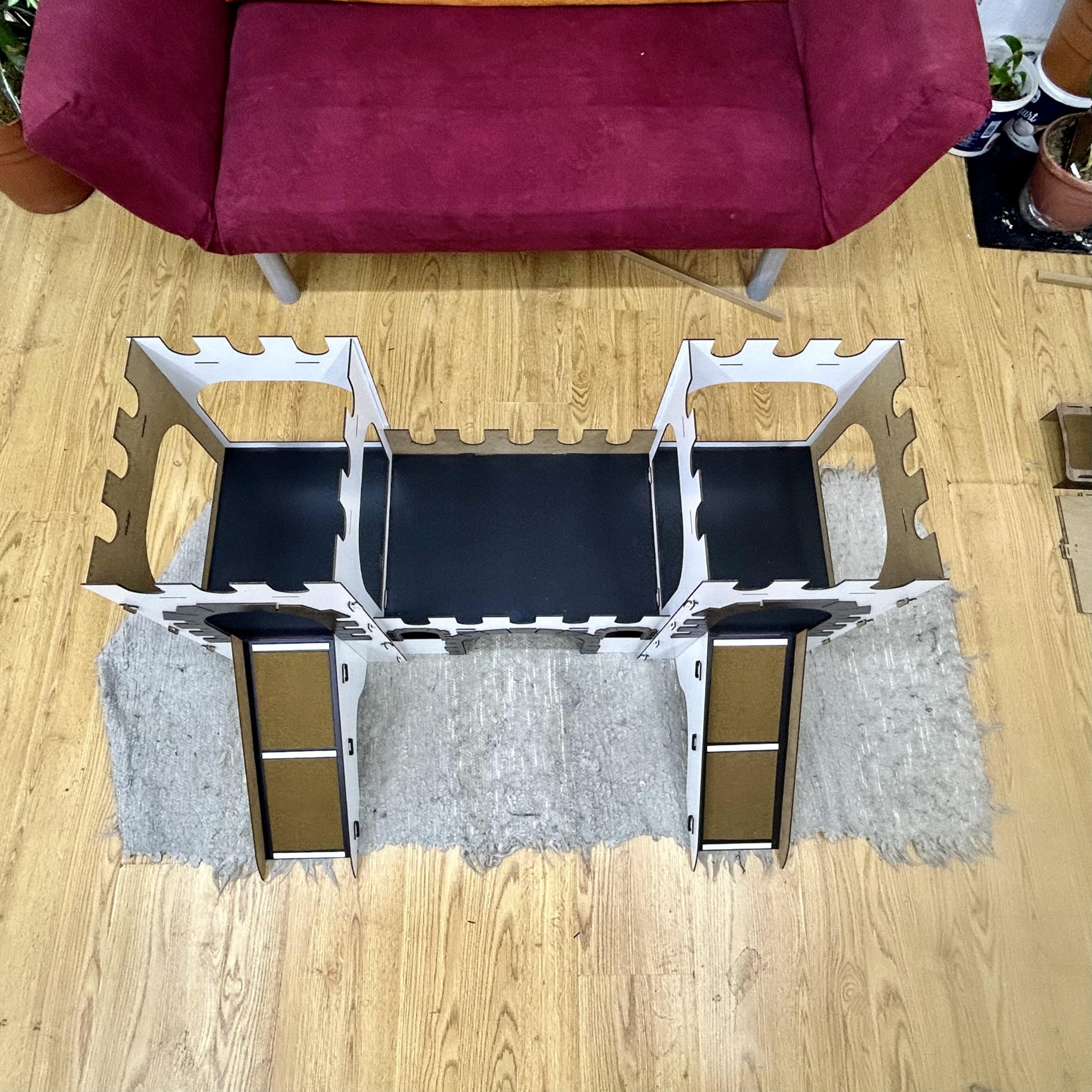 Das CASTEL Katzenhaus bietet auf zwei Etagen einen gemütlichen Rückzugsort und gleichzeitig einen spannenden Spielbereich für Ihre Katze. Das sechseckige Design sorgt für eine optimale Raumnutzung und fügt sich stilvoll in jede Wohnung ein. Gefertigt aus 3 mm starkem, zertifiziertem MDF, ist das Haus stabil, antibakteriell und sicher für Ihre Katze. Die beiden Rampen ermöglichen einen einfachen Zugang zur oberen Etage. Das Design ist zerlegbar, wodurch es besonders praktisch beim Transport oder Umstellen ist. Maße: Höhe: 53 cm Breite: 100 x 40 cm Geeignet für den Innenbereich. Reinigung mit einem feuchten Tuch. Montageanleitung liegt bei.