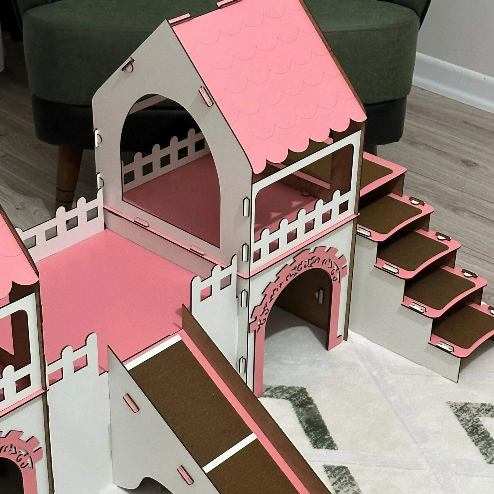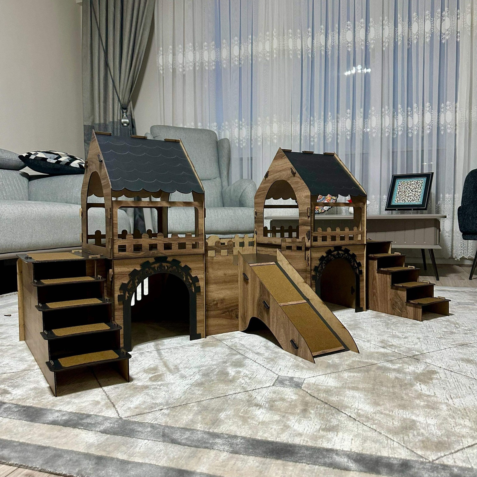 🐇🏰🐰🏠🐰🐇🏰❣️Das weiße, zerlegbare Kaninchenhaus im Stil einer mittelalterlichen Burg mit zwei durch eine Terrasse verbundenen Türmen bietet Ihren Kaninchen einen ästhetischen Wohnraum und ein komfortables Zuhause. Wir präsentieren Ihnen den Spielplatz für flauschige Tiere.Farboptionen: Weiß mit Walnuss (Braun), Schwarz oder Rosa.Das zweistöckige Haus verfügt im Erdgeschoss über drei geschlossene Räume, während das Obergeschoss offen gestaltet ist und über eine Treppe und eine Terrasse Zugang zu den Türmen bietet. Es bietet viel Platz für Ihr Kaninchen.🐇♥️ Beim Aufbau des Hauses werden Sie in Ihre Kindheit zurückversetzt, denn das Modell ist sehr einfach zu montieren. Verbringen Sie schöne Stunden mit Ihrer Familie und Ihren Liebsten. Der Aufbau dieses Hauses schenkt Ihnen kindliche Freude und sorgt gleichzeitig für das Wohlbefinden Ihres süßen Haustiers.🏰📐Hasenburg – Maße:Gesamthöhe: 57 cm / 22,4 Zoll,Gesamtbreite: 101 cm x 35 cm / 39,7 Zoll x 13,8 Zoll,Stufenbreite: 13 cm / 5,1 Zoll,Turmgröße: 26,7 cm x 33 cm / 10,5 Zoll x 13 Zoll.🛁Reinigung der Hasenburg:⭕️Sie können die Burg einfach mit einem feuchten Tuch abwischen. Sie ist für den Innenbereich geeignet.🚫Vor direkter Sonneneinstrahlung, Wasser und hoher Luftfeuchtigkeit schützen.Hinweis: Bitte machen Sie nach der Installation Fotos und geben Sie uns Feedback.‼️Zusätzliche Informationen:1. Das Produkt ist gereinigt, verpackt und versendet. Sie können es bedenkenlos verwenden.2. Achten Sie auf die korrekte Positionierung der Teile!3. Schlösser sind im Lieferumfang enthalten! Platzieren Sie diese Teile gemäß der Montageanleitung an den vorgesehenen Stellen. Es kann sein, dass sie nicht perfekt passen. Vorsicht! Die Schlösser passen ganz einfach.❤️😊📸🙏 🏰🐕🐈 🐇 🦔🐀🐁🏠Folgen Sie uns auf unseren Social-Media-Kanälen, um über Sonderangebote und Neuheiten informiert zu bleiben!Dieses Produkt verleiht Ihrem Zuhause eine ästhetische Note und bietet Ihrem pelzigen Freund einen komfortablen Platz.Hasenschloss mit Terrasse und zwei Türmen, Hasenpalast aus weißem Walnussholz: Eine luxuriöse Residenz mit drei Treppen und drei Zimmern 🐇🐰🏠🏰❣️