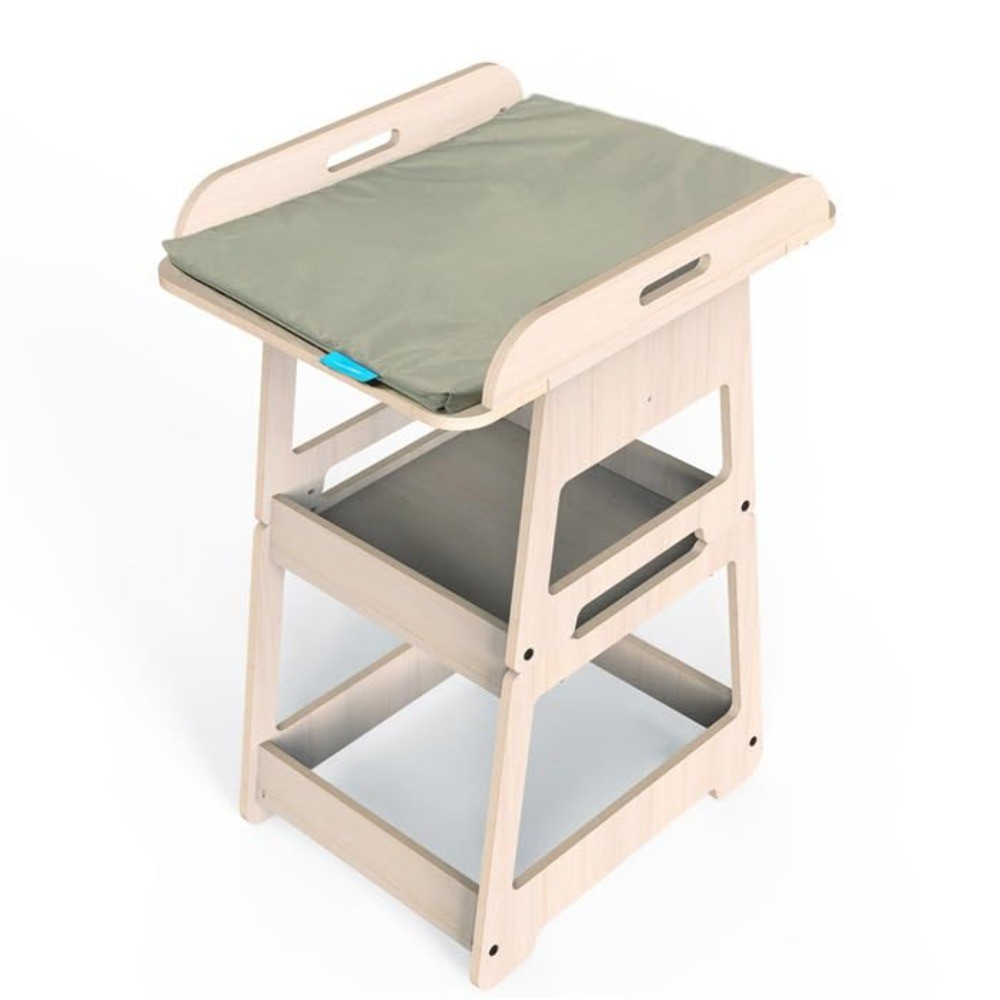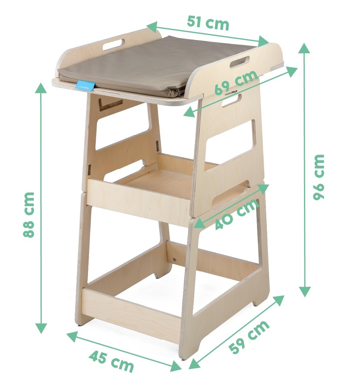 Mamatoyz 19CFLAT – Wickelauflage für Neugeborene, wasserdichte Matratze inklusive, Wickelunterlage umwandelbar in Tisch und Kinderstuhl, Ablageflächen für Zubehör, Birkenholz