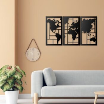 🌍 Symbolik & Einsatzmöglichkeiten:Das Weltkarten-Design in drei Teilen steht für Abenteuer, Reisen und moderne Wohnästhetik. Ideal für:-