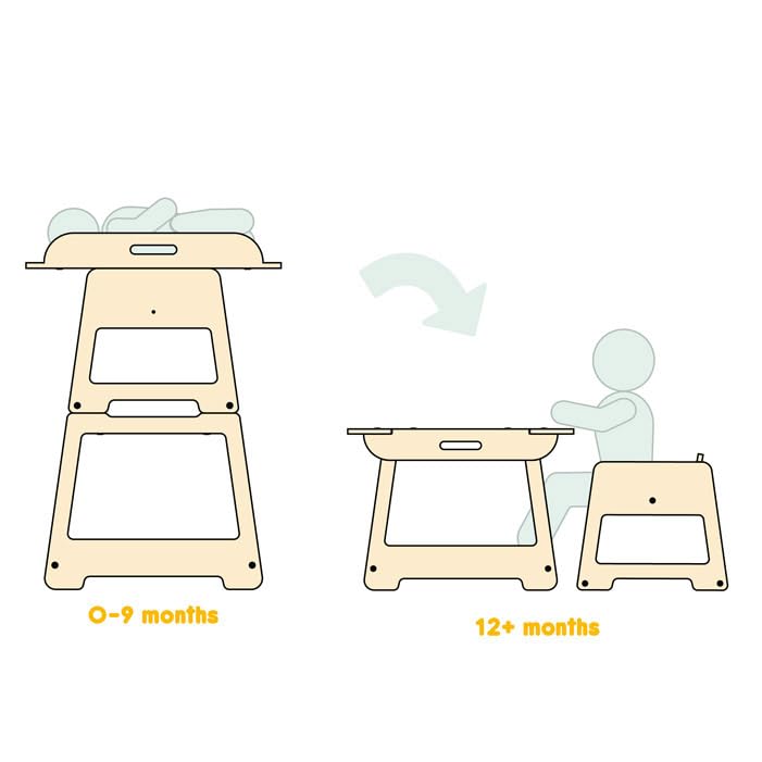 Diese modulare Wickelunterlage mit mitgelieferter wasserdichter Matratze, die sich in einen Tisch verwandeln lässt, ist die vielseitige und ideale Lösung für Baby-Wickeln und Spielen.