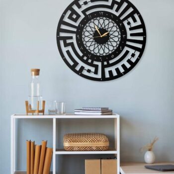 Diese dekorative Wanduhr ist mit der Kufi-Besmele (بسم الله الرحمن الرحيم) in arabischer Kalligraphie gestaltet. Ein einzigartiges Design, das spirituelle Bedeutung und moderne Eleganz vereint – perfekt für Wohnzimmer, Büro oder Gebetsräume.