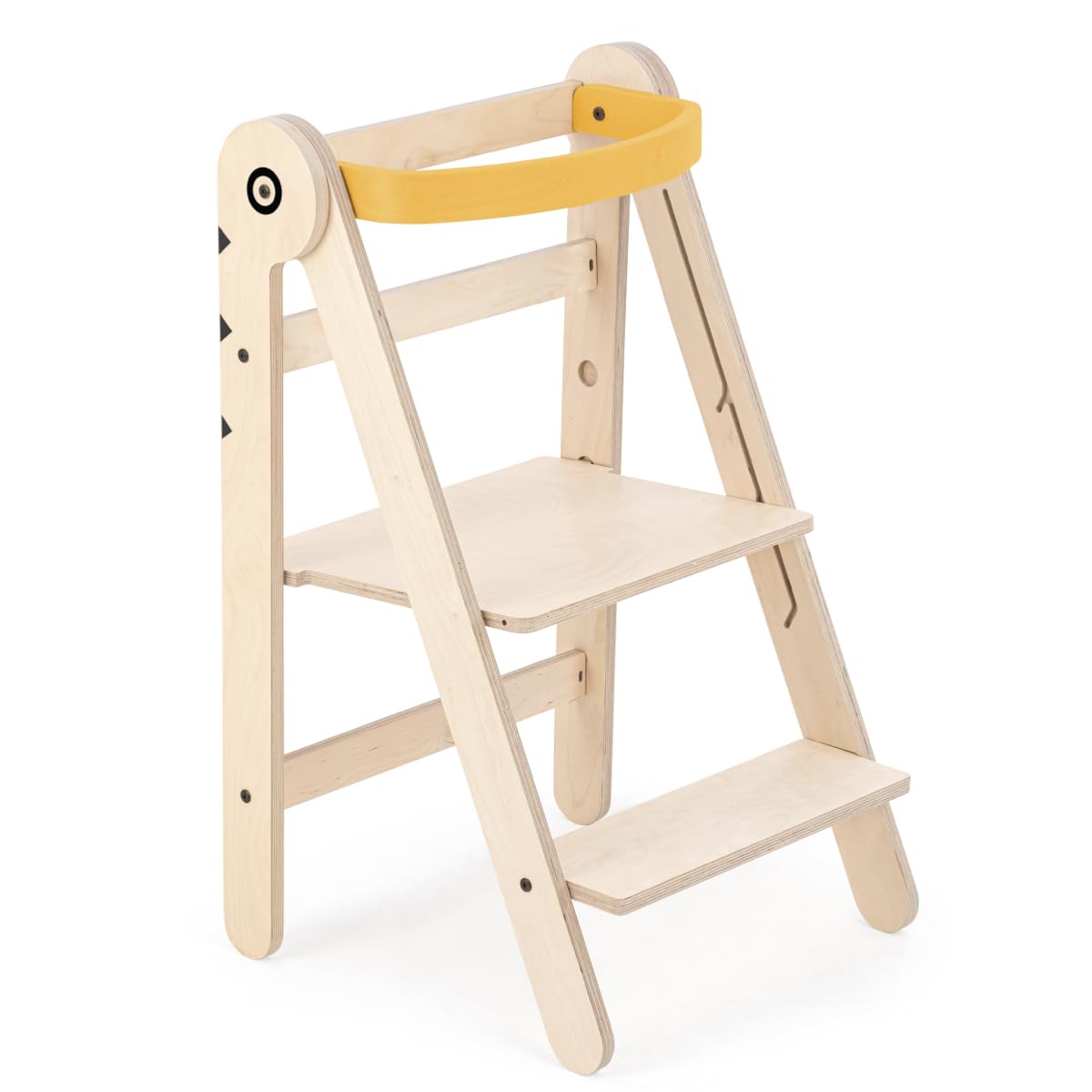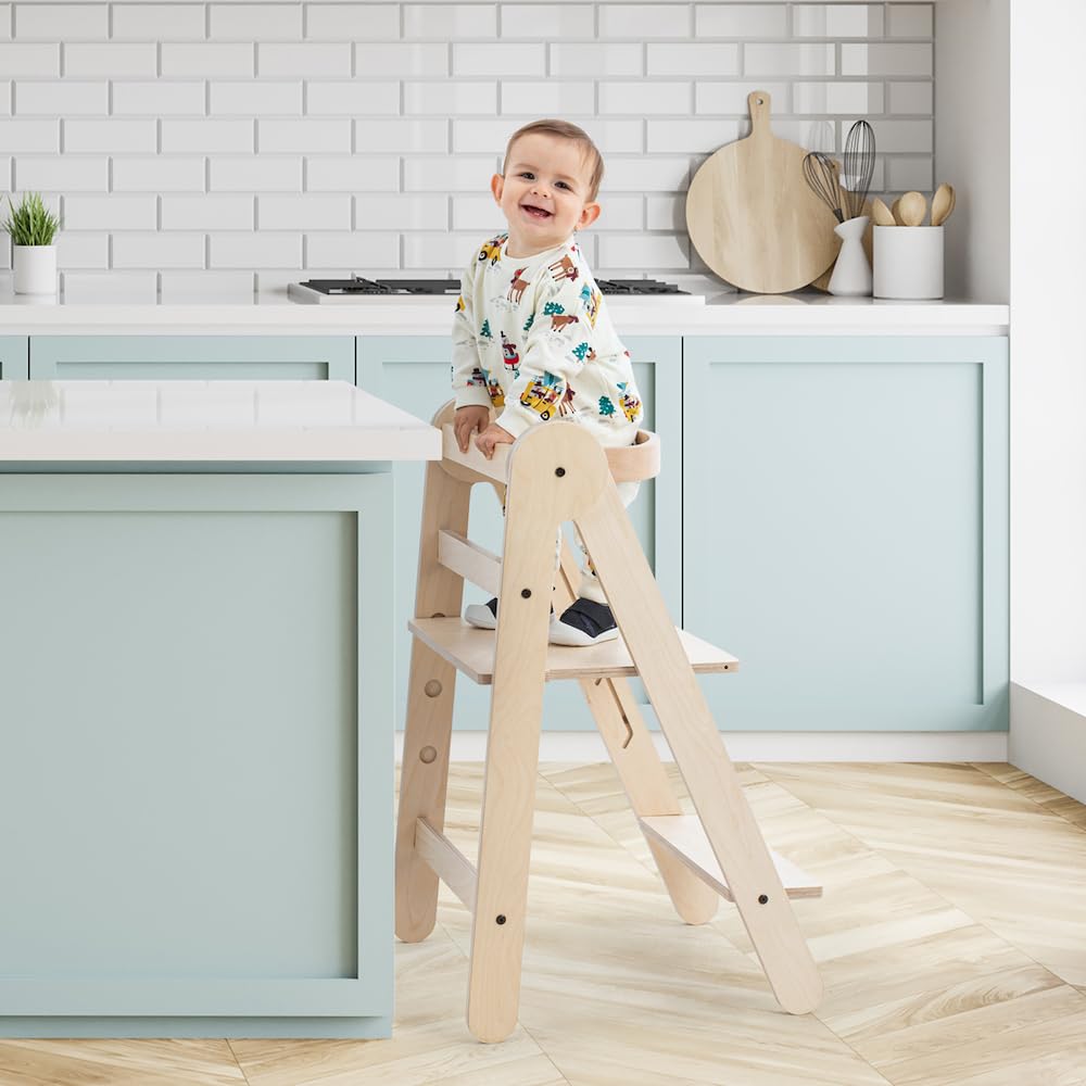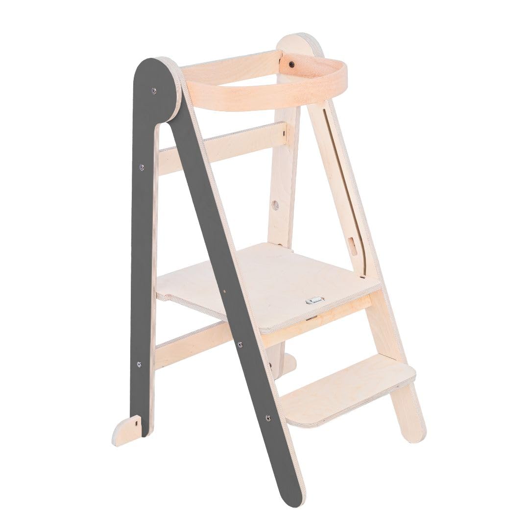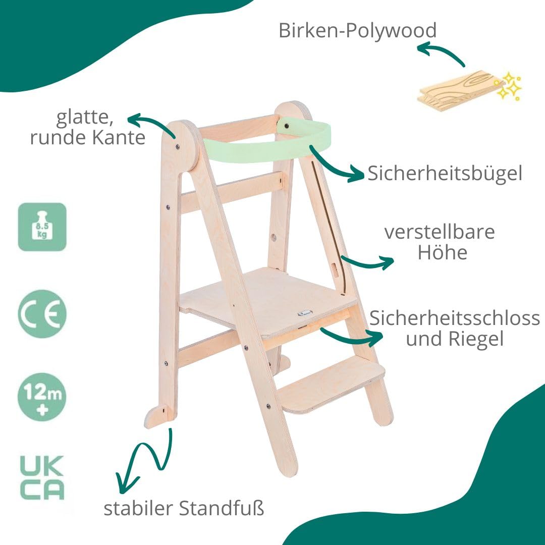 Mamatoyz Torre Montessoriana di Apprendimento Pieghevole Multiuso Learning Tower in Legno Naturale di Betulla Con 3 Altezze Regolabili