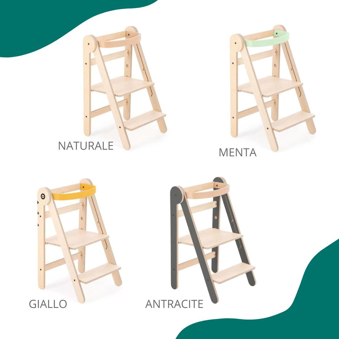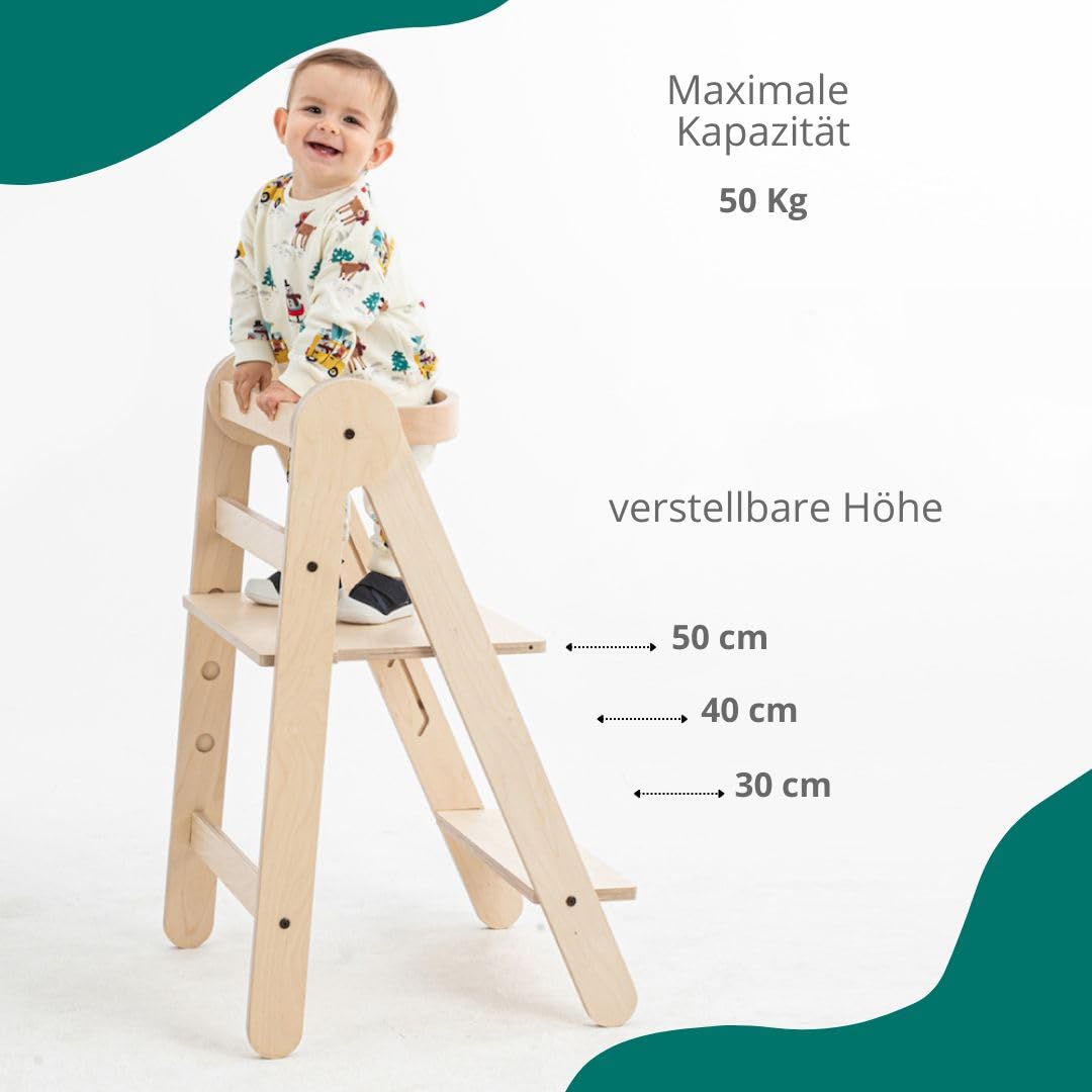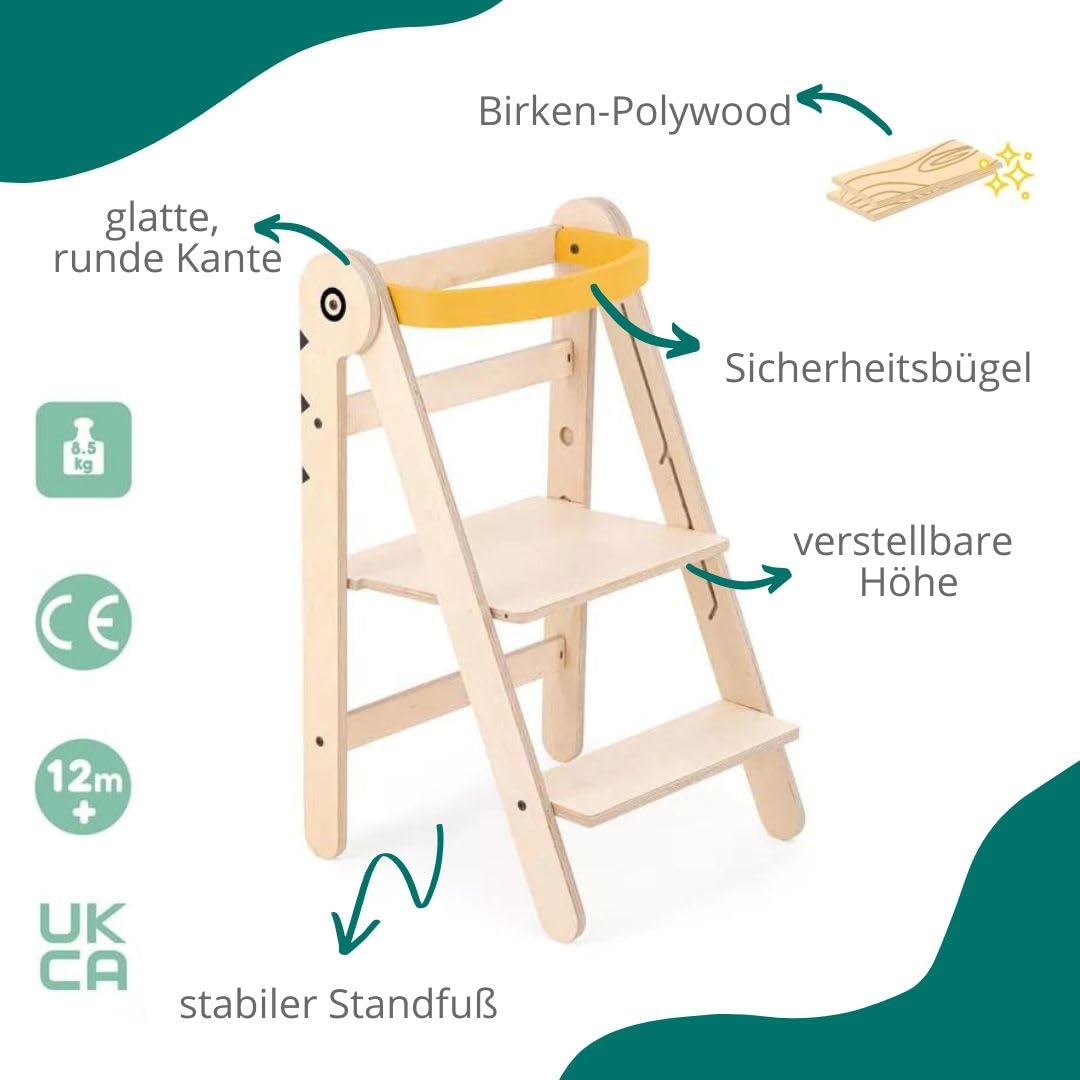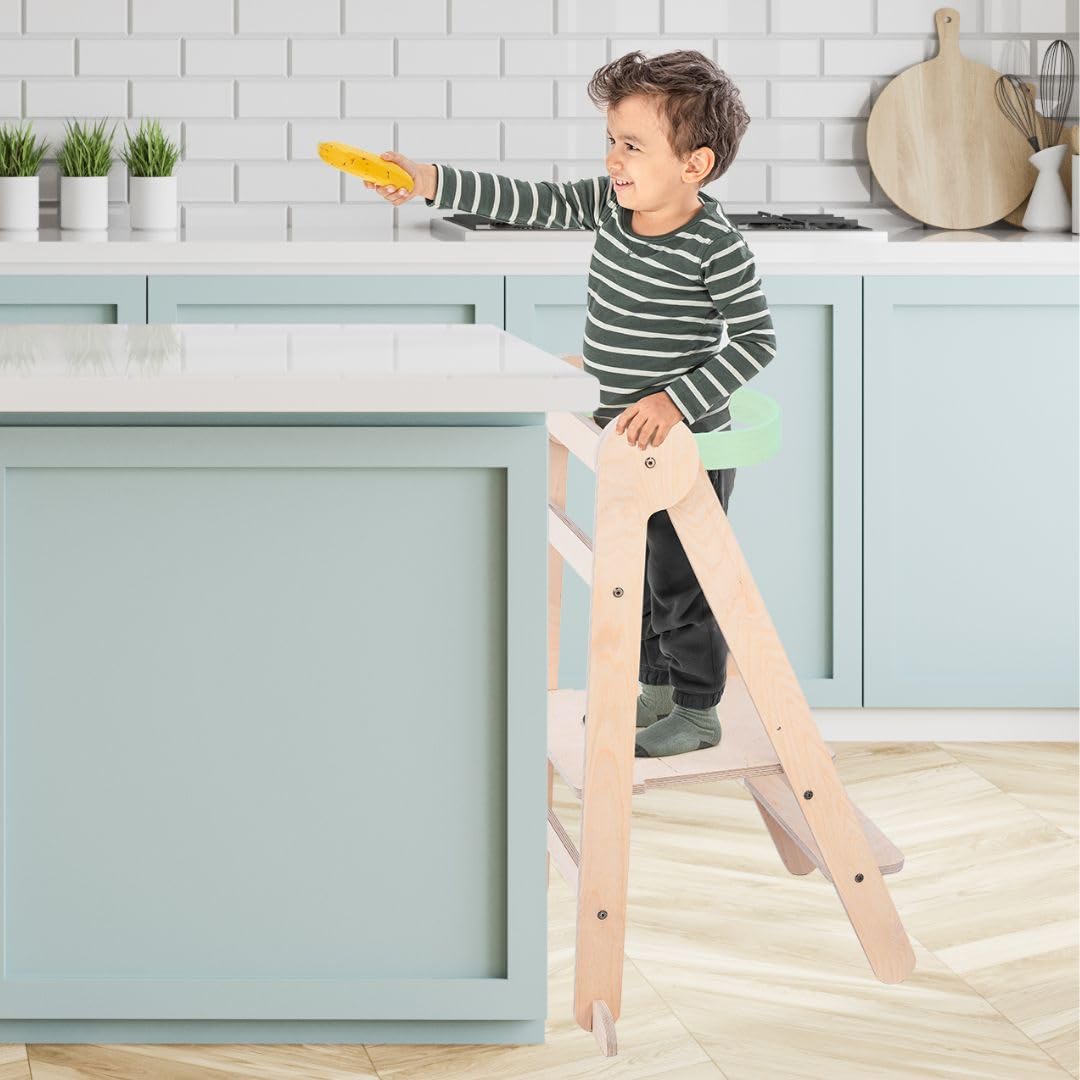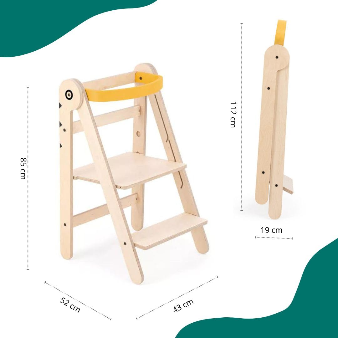 Mamatoyz Torre Montessoriana di Apprendimento Pieghevole Multiuso Learning Tower in Legno Naturale di Betulla Con 3 Altezze Regolabili