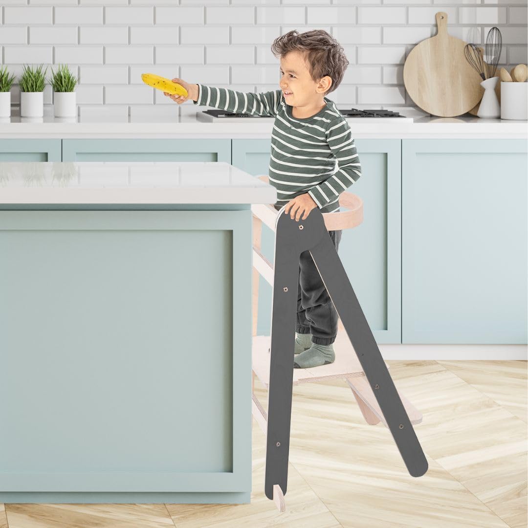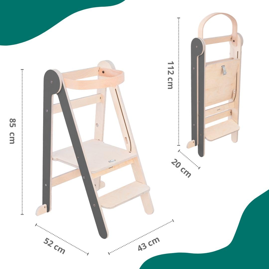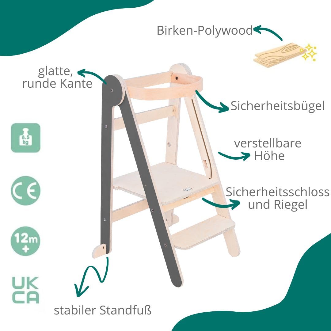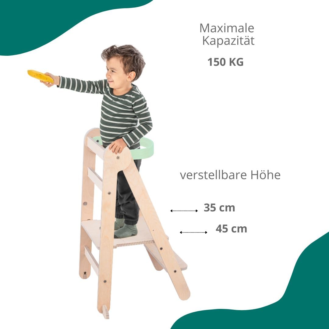 Mamatoyz Torre Montessoriana di Apprendimento Pieghevole Multiuso Learning Tower in Legno Naturale di Betulla Con 3 Altezze Regolabili