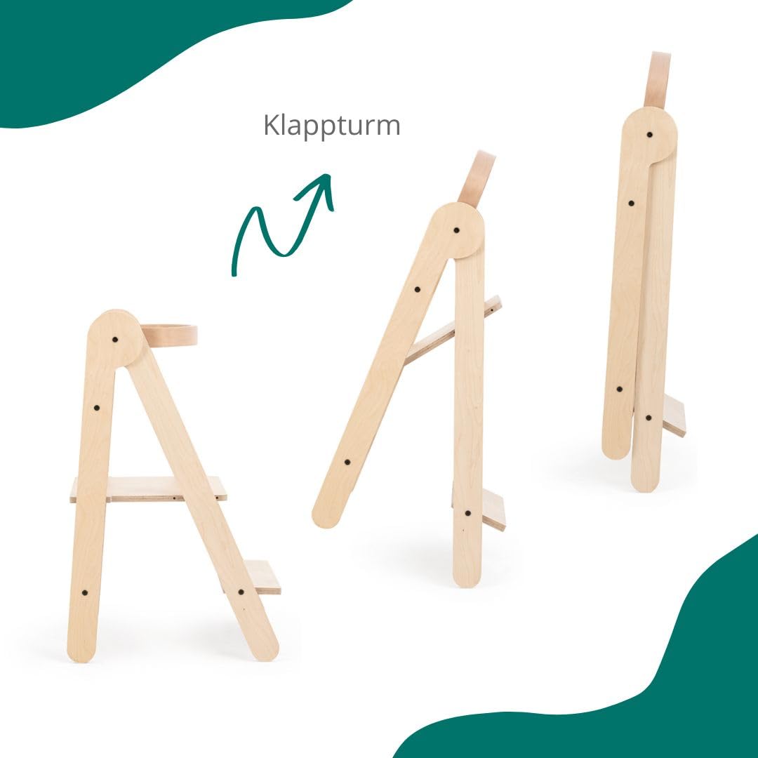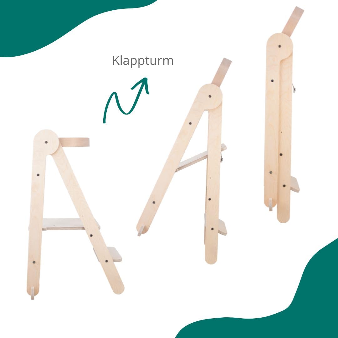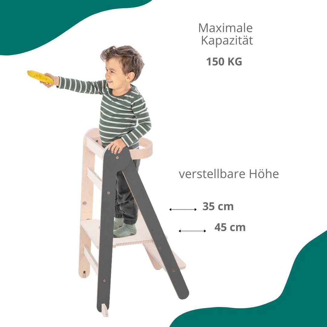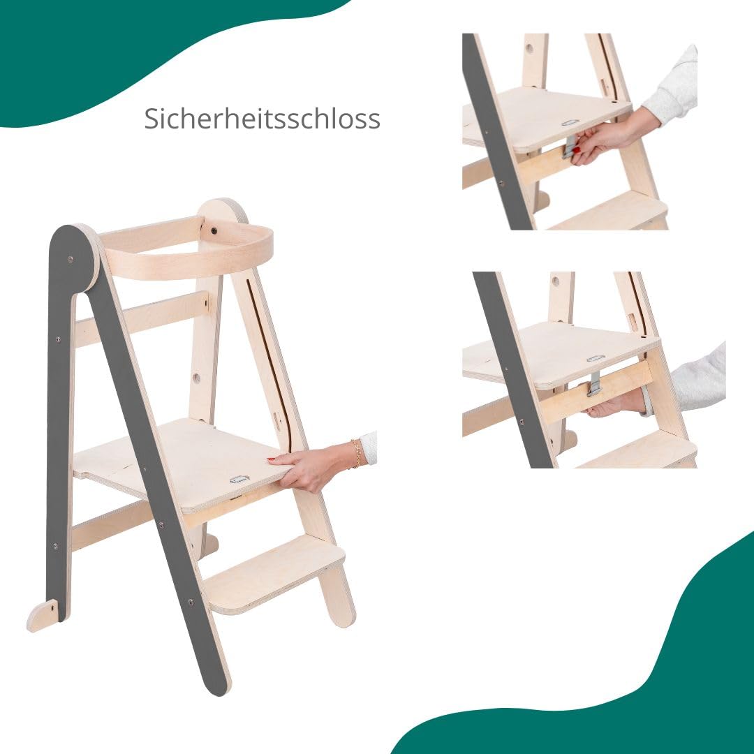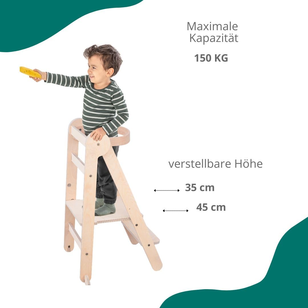 Mamatoyz Torre Montessoriana di Apprendimento Pieghevole Multiuso Learning Tower in Legno Naturale di Betulla Con 3 Altezze Regolabili