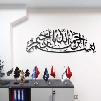 Ein stilvolles islamisches Wandbild mit arabischer Kalligrafie „بسم الله الرحمن الرحيم“ (Bismillah) – ein Symbol für Reinheit, Frieden und Segen.✨ Produktdetails:
