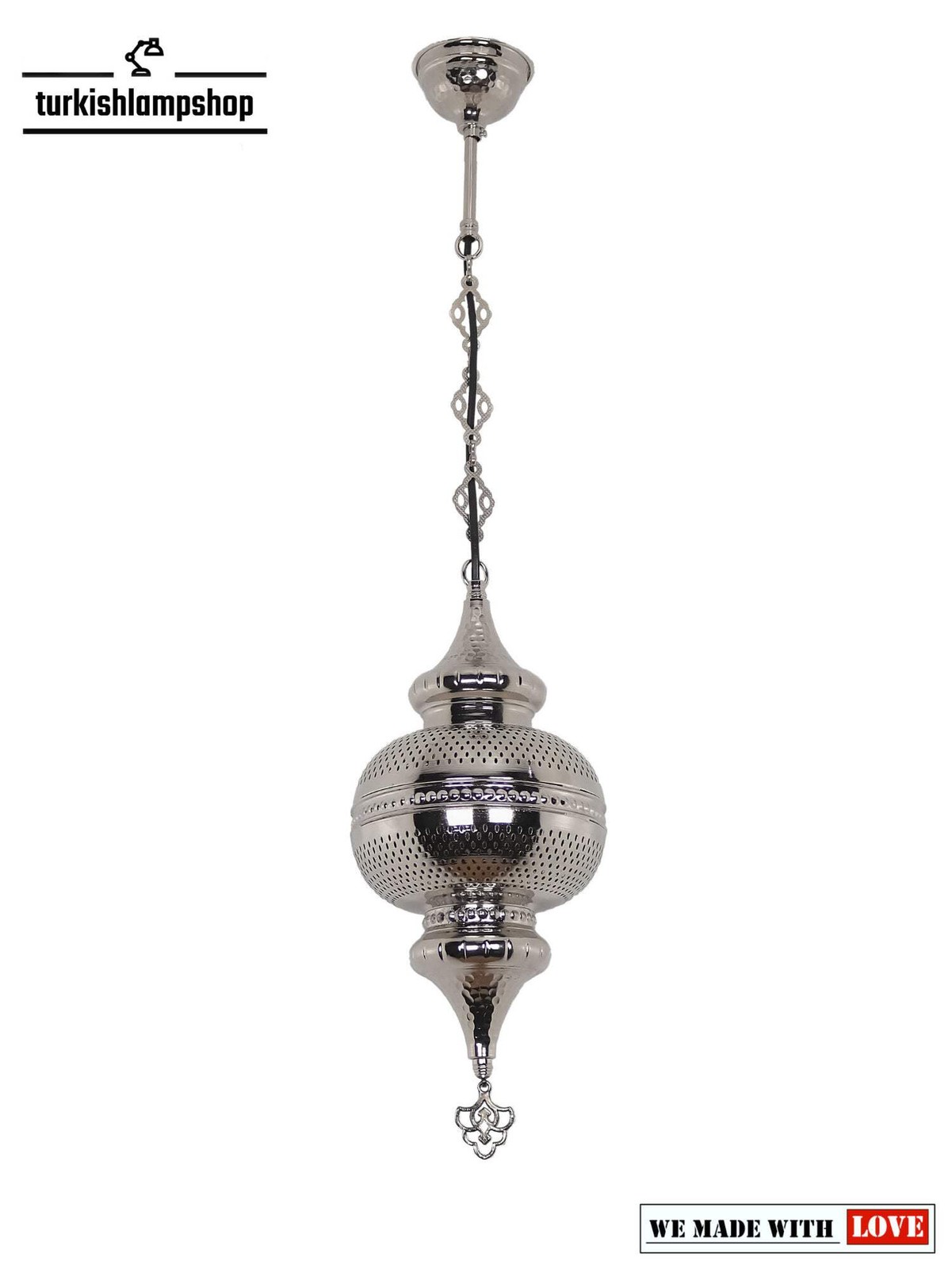 Firstly one of the main highlights of mosaic glass Turkish chandelier is the fusion of traditional mastery and contemporary design. Secondly these chandeliers are handcrafted with care by skilled artisans who have inherited the ancient techniques of glass mosaic art from their ancestors.Restaurants strive to create a unique dining experience for their patrons, and the inclusion of a big 19 globe Turkish chandelier can greatly contribute to the overall ambiance. Moreover the mosaic glass chandeliers provide soft and filtered light, creating an elegant and intimate atmosphere that enhances the dining experience. However in residential settings, the mosaic glass Turkish chandelier can transform living rooms into enchanting spaces. Shortly the myriad of colors and patterns available in the mosaic glass can complement various interior design styles, providing a unique touch of elegance and personality to any living space. Finally the warm glow of the colorful glass creates a sense of comfort and sophistication, making customers feel welcomed and relaxed. DIMENSIONSHeight : 57.08 inc-145 cmWidth : 61.02 inc-155 cmGlobe Diameter : 7.48 inc – 19cmBULB DETAILSType : E-12 socket for US – E-14 socket for UK and EU.Qty : 19Maximum Walt : 25wBULB NOT INCLUDEDELECTRIC DETAILSVoltage : 110V for US – 220V for UK & EUPower source : With cable from ceilingSHIPMENT DETAILSThe product is hand made and the production time is 12 days, shipping is free. Please contact me if you do not receive your order within 20 days, i’ll look into it and help.PERSONALIZEYou can customize our products in width, length and color as you wish, please contact us forthis.Most important , we can make a custom 3D design. In the same way, after the design, you can see the picture and video of the.METARIAL Mosaic Glass Plastering Metal Chain Cable