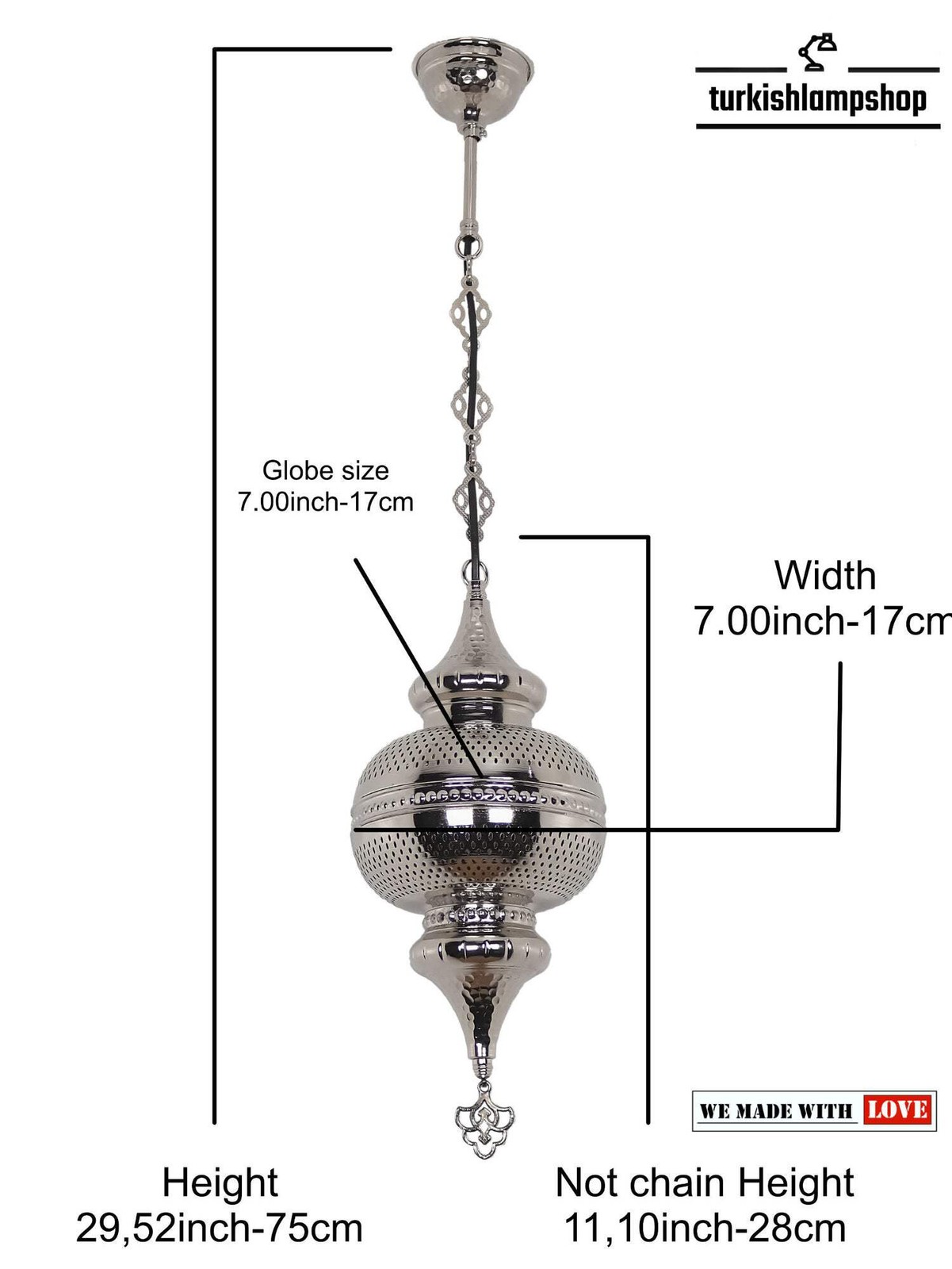 DIMENSIONS Height : 57.08 inc-145 cm Width : 61.02 inc-155 cm Globe Diameter : 7.48 inc – 19cm