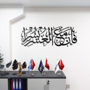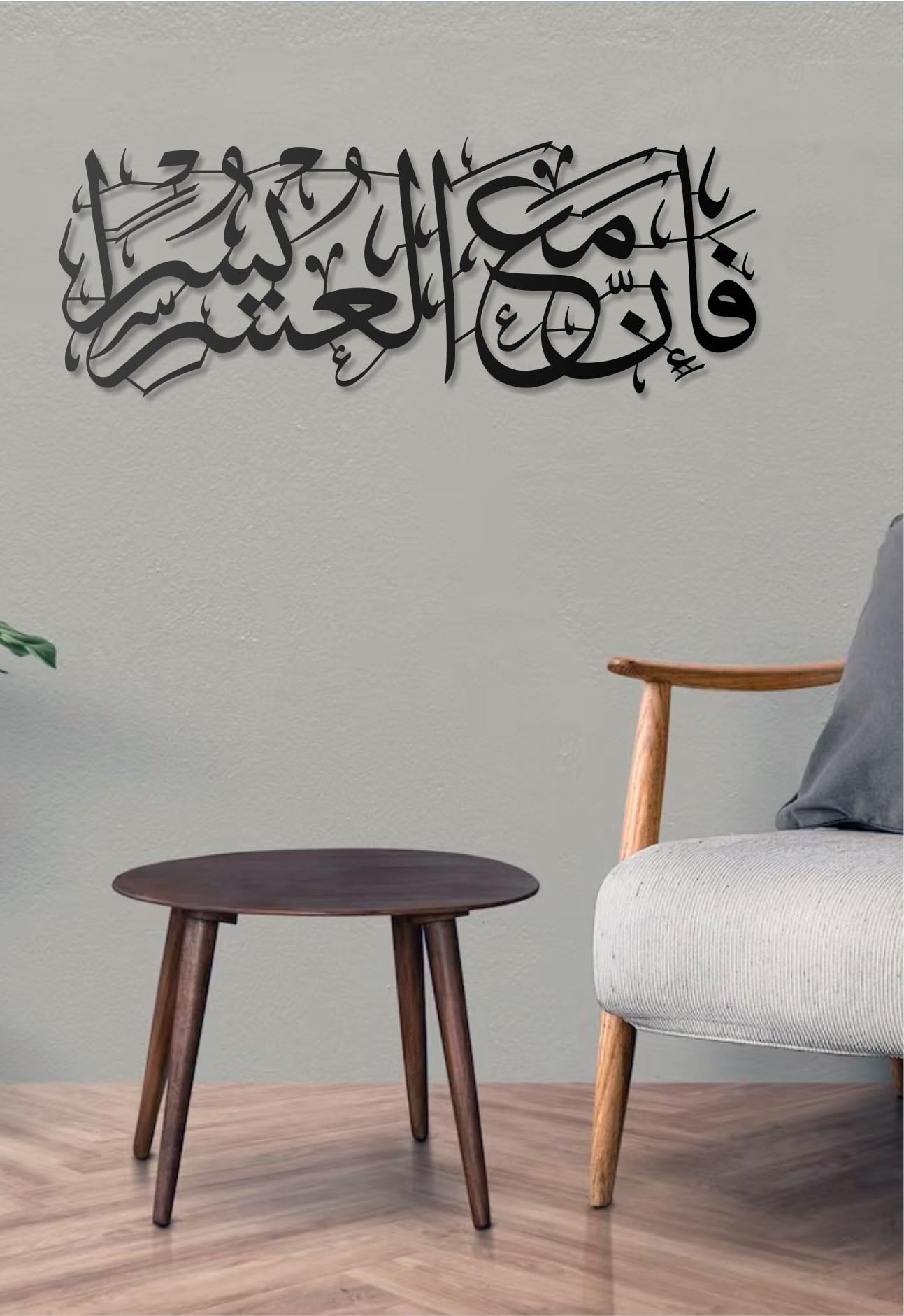 Metall Islamische Wanddeko Surah Al-Inshirah – Arabische Kalligraphie „Fa Inna Maal Usri Yusra“ – Moderne Muslimische Wandkunst, Religiöse Wohnkultur & Geschenkidee