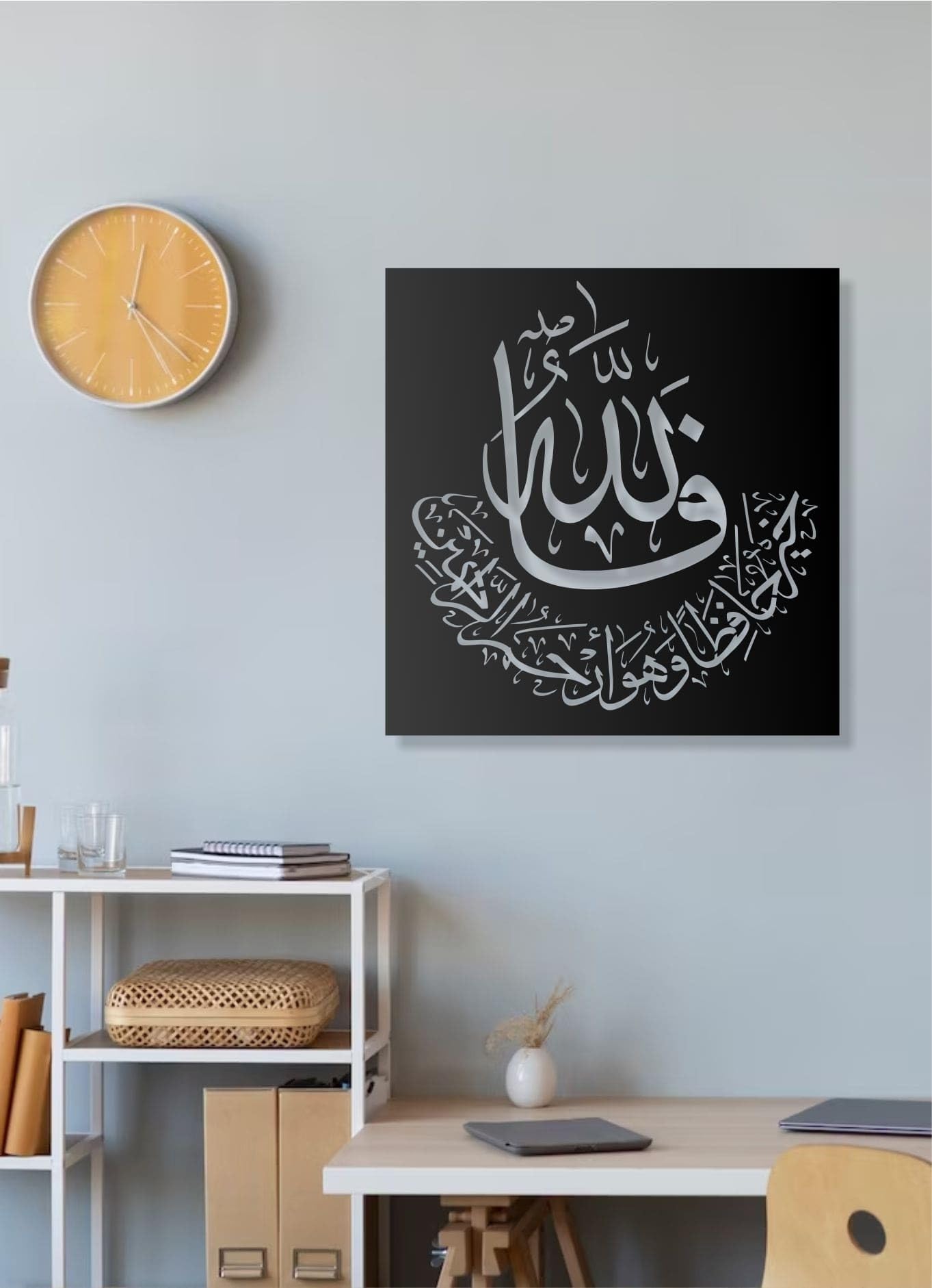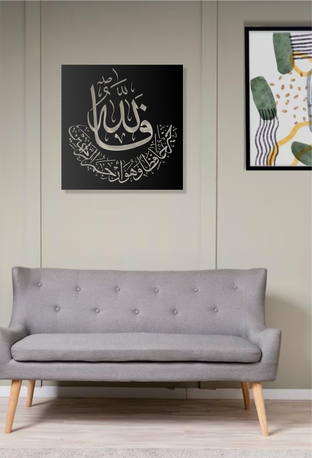 Metall Islamische Wanddeko Surah Yusuf 12:64 – Arabische Kalligraphie, Moderne Muslimische Wandkunst, Religiöse Wohnraumdekoration & Geschenkidee