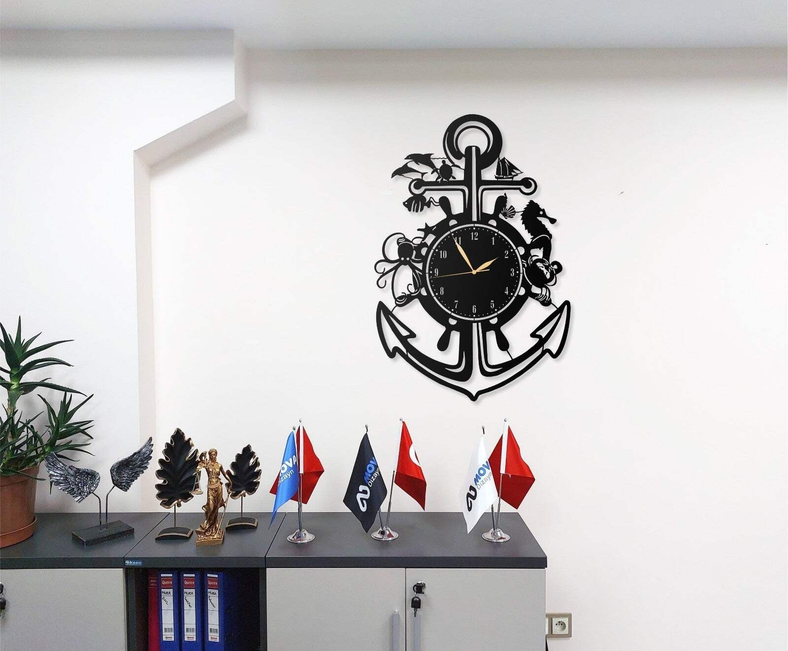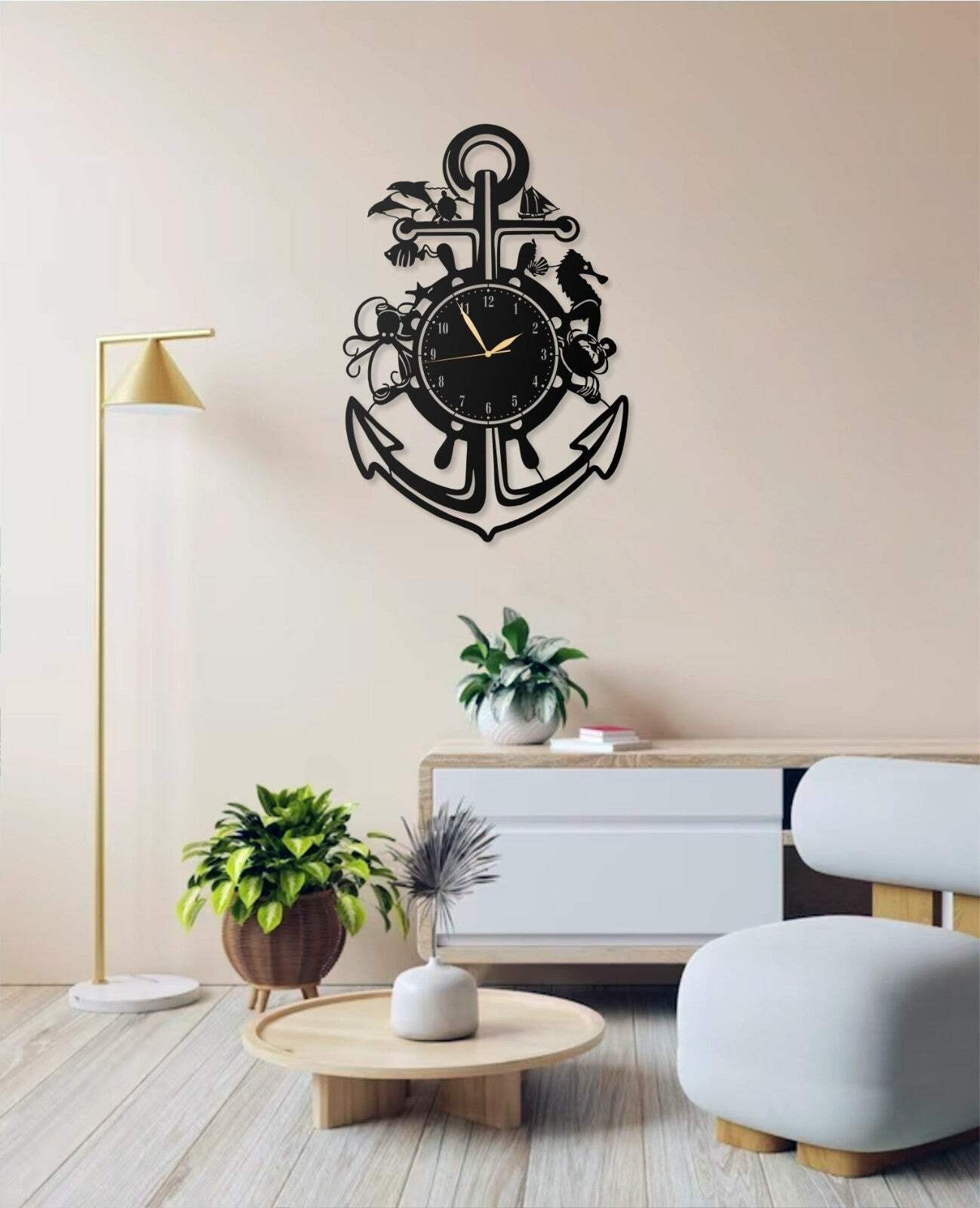 Bringen Sie mit dieser einzigartigen Wanduhr maritimes Flair in Ihr Zuhause. Das stilvolle Anker-Motiv macht sie zu einem besonderen Blickfang – perfekt für Wohnzimmer, Büro, Ferienhaus oder Küsten-Deko.