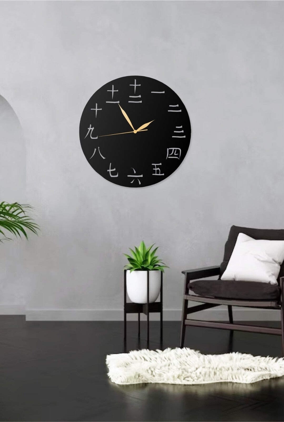 Diese stilvolle Wanduhr mit japanisch inspiriertem Zahlen-Design vereint moderne Ästhetik mit hochwertiger Handwerkskunst. Perfekt geeignet für Wohnzimmer, Büro oder als besonderes Geschenk.
