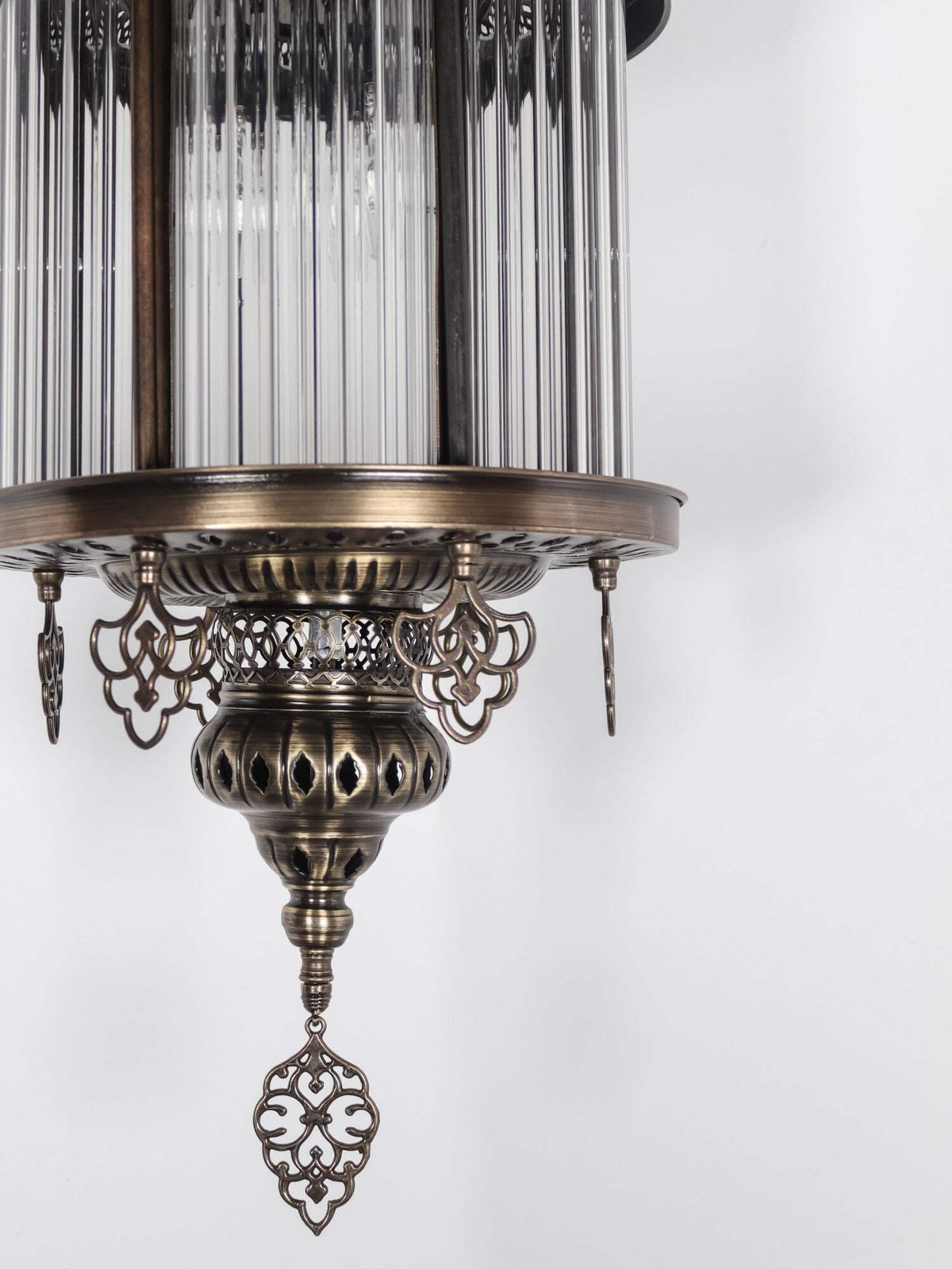 Diese große türkische Laterne aus geblasenem Pyrexglas ist eine einzigartige Lampe, die Ihren Raum erhellt. Die modern gestaltete türkische Laterne aus geblasenem Pyrexglas verleiht Ihrer Deckenbeleuchtung einen stilvollen Look. Diese Pyrexglaslampe besticht durch ihr robustes und elegantes Design und zieht mit ihrem originellen und auffälligen Stil alle Blicke auf sich.