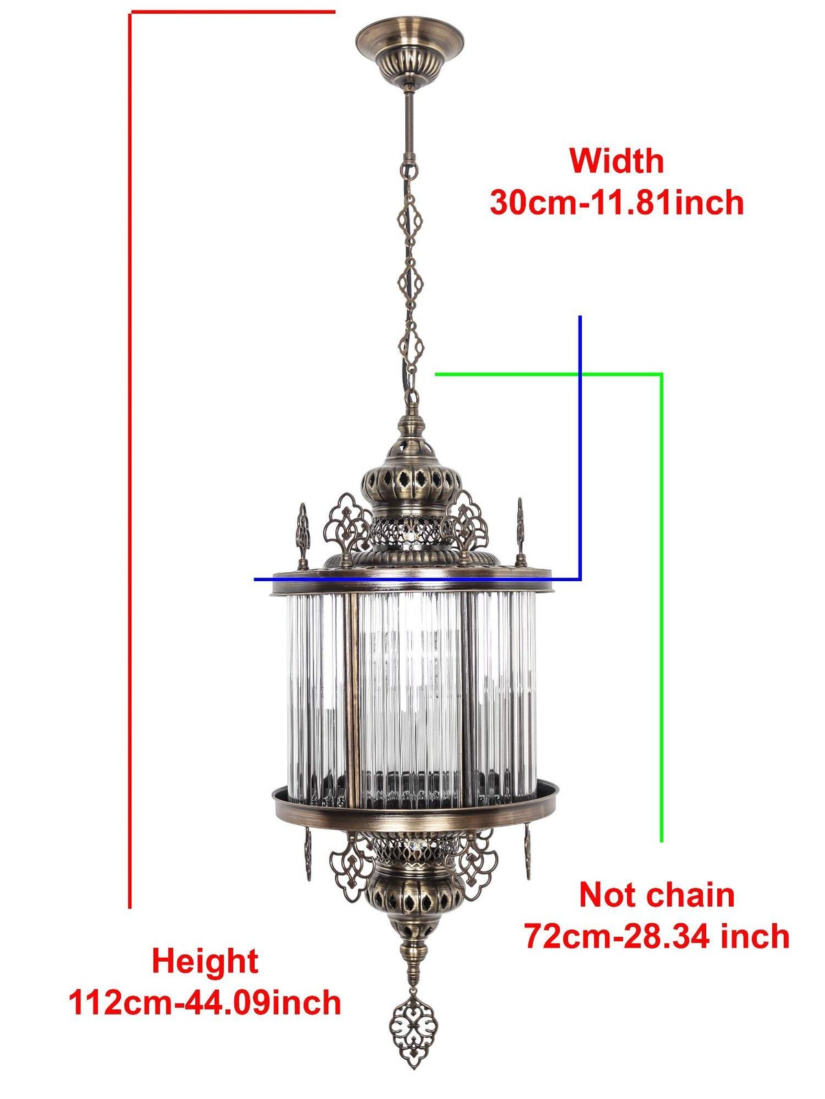Diese große türkische Laterne aus geblasenem Pyrexglas ist eine einzigartige Lampe, die Ihren Raum erhellt. Die modern gestaltete türkische Laterne aus geblasenem Pyrexglas verleiht Ihrer Deckenbeleuchtung einen stilvollen Look. Diese Pyrexglaslampe besticht durch ihr robustes und elegantes Design und zieht mit ihrem originellen und auffälligen Stil alle Blicke auf sich. Vor allem aber reflektiert sie ein sehr schönes Licht und verleiht Ihrem Raum eine friedliche Atmosphäre. Mit dieser Leuchte können Sie Ihren Raum beleuchten. Mit ihrem modernen Design sorgt die Pyrex-Glaslaterne für einen stilvollen Look Ihrer Deckenbeleuchtung. ABMESSUNGEN Höhe: 112 cm – 44,09 ZollBreite: 30 cm – 11,81 ZollHöhe ohne Kette: 72 cm – 28,34 ZollKürzeste Aufhängehöhe: 90 cm ANGABEN ZUR GLÜHBIRNE 110 V für die USA – 220 V für Großbritannien und die EUAnzahl der Glühbirnen: 3Maximale Wattzahl: 25 WGLÜHBIRNE NICHT ENTHALTEN ELEKTRISCHE ANGABENSpannung: 110 V für die USA – 220 V für Großbritannien und die EUStromversorgung: Mit Kabel von der Decke VERSANDDETAILS Die Produktionszeit für unsere Produkte beträgt 10 Tage, da sie handgefertigt sind. Der Versand erfolgt später und ist für unsere Produkte kostenlos. Wenn Sie Ihre Bestellung nicht innerhalb von 15 Tagen erhalten, kontaktieren Sie mich bitte. Ich werde den Fall prüfen und Ihnen helfen. PERSONALISIEREN Sie können unsere Produkte in Breite, Länge und Farbe nach Ihren Wünschen anpassen. Bitte kontaktieren Sie uns dazu. Vor allem können wir ein individuelles 3D-Design erstellen. Ebenso können Sie nach dem Entwurf das Bild und das Video davon sehen. MATERIAL PyrexglasVerputztes MetallKetteKabel