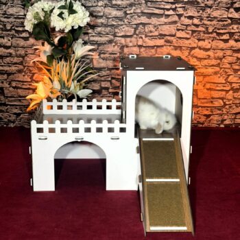 Ein Schloss, drei Türme, unendlicher Spielspaß Verwandeln Sie das Zuhause Ihrer Kaninchen in ein echtes Abenteuerland: Die PrimePetHouse?TOWERS Kaninchenburg vereint spektakuläre Optik mit funktionalem Design. Drei durch stabile Holzbrücken verbundene Türme bilden ein sechseckiges Reich voller Verstecke, Laufwege und Ruheplätze. Durchdachtes 2?Etagen?Layout Erdgeschoss: Geräumiger Unterschlupf – perfekt zum Dösen oder als Rückzugsort bei Stress. Obergeschoss: Aussichtsplattform mit Fallschutz?Geländern; fördert natürliche Neugier und Bewegung. Hochwertiges Material für dauerhafte Freude 3?mm MDF ist robust, nagersicher und sorgt für glatte Kanten ohne Splitter. Antibakterielle Beschichtung erleichtert die Reinigung: einfach feucht abwischen. Schnell auf? und abgebaut Dank passgenauer Steckverbindungen steht die Burg in Minuten – ganz ohne Schrauben oder Werkzeug. Ideal für Umzüge oder ein saisonales Umstellen des Geheges. Perfekte Größe für jede Wohnung Mit 55?cm Höhe und 32?×?32?cm Grundfläche pro Turm bietet das Haus viel Platz zum Toben, nimmt aber nur wenig Stellfläche ein. Die 55?×?32?cm Brücke verbindet die Türme sicher und ist ein optisches Highlight. Lieferumfang Zerlegte MDF?Bauteile Steck?/Verbindungselemente Schritt?für?Schritt?Anleitung (DE/EN) Machen Sie aus jeder Ecke Ihrer Wohnung ein kleines Königreich – mit der TOWERS Kaninchenburg von PrimePetHouse. Ihre Fellnasen werden es lieben!