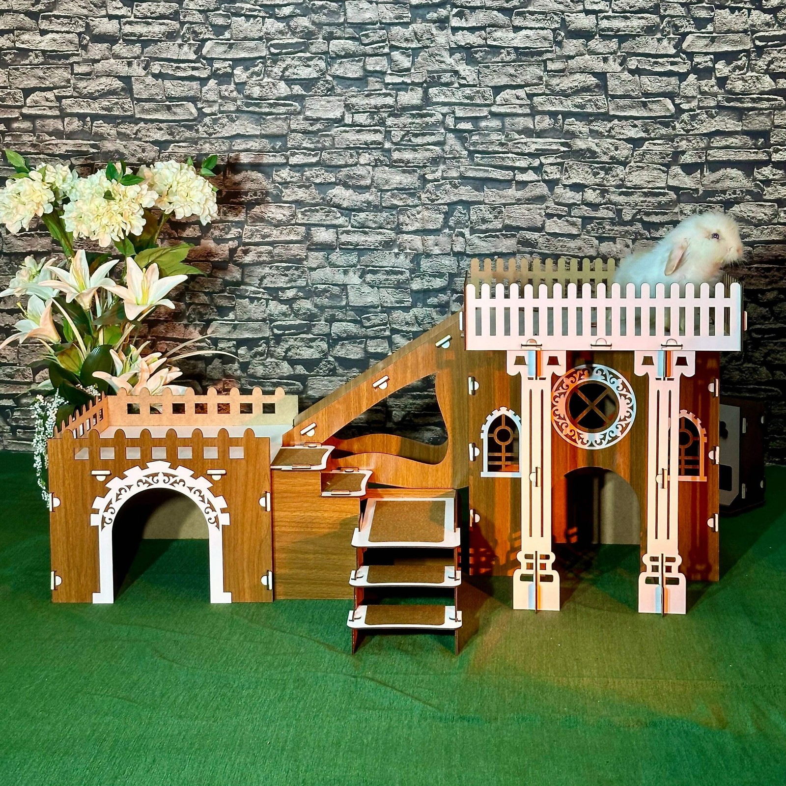 Modulares Hasenschloss Walnuss Weisse Kaninchenvilla mit Spielbereichen