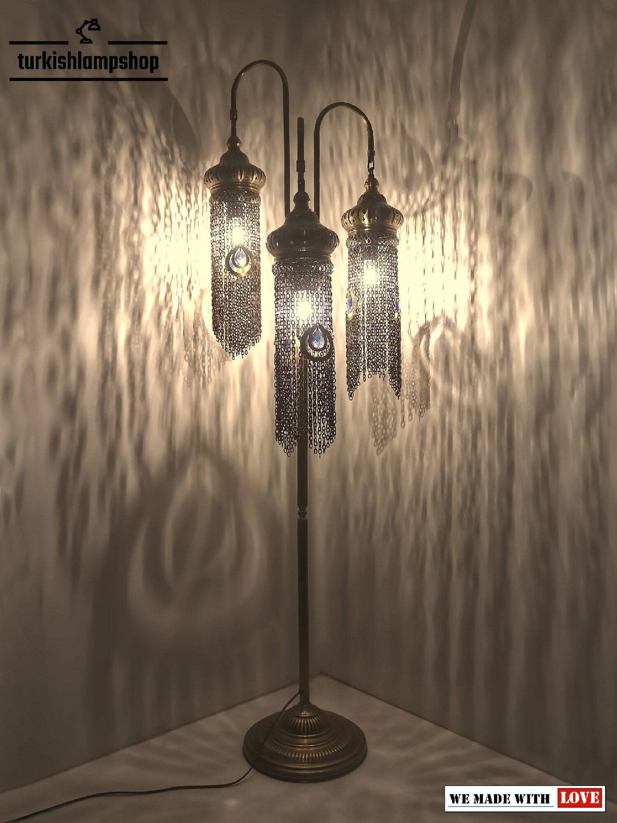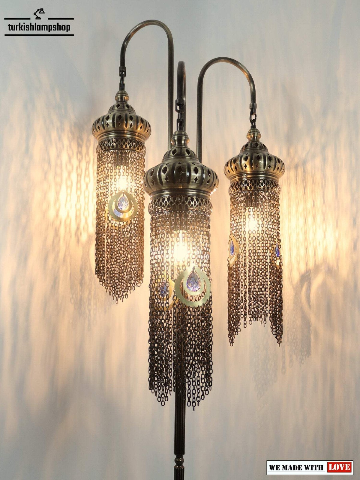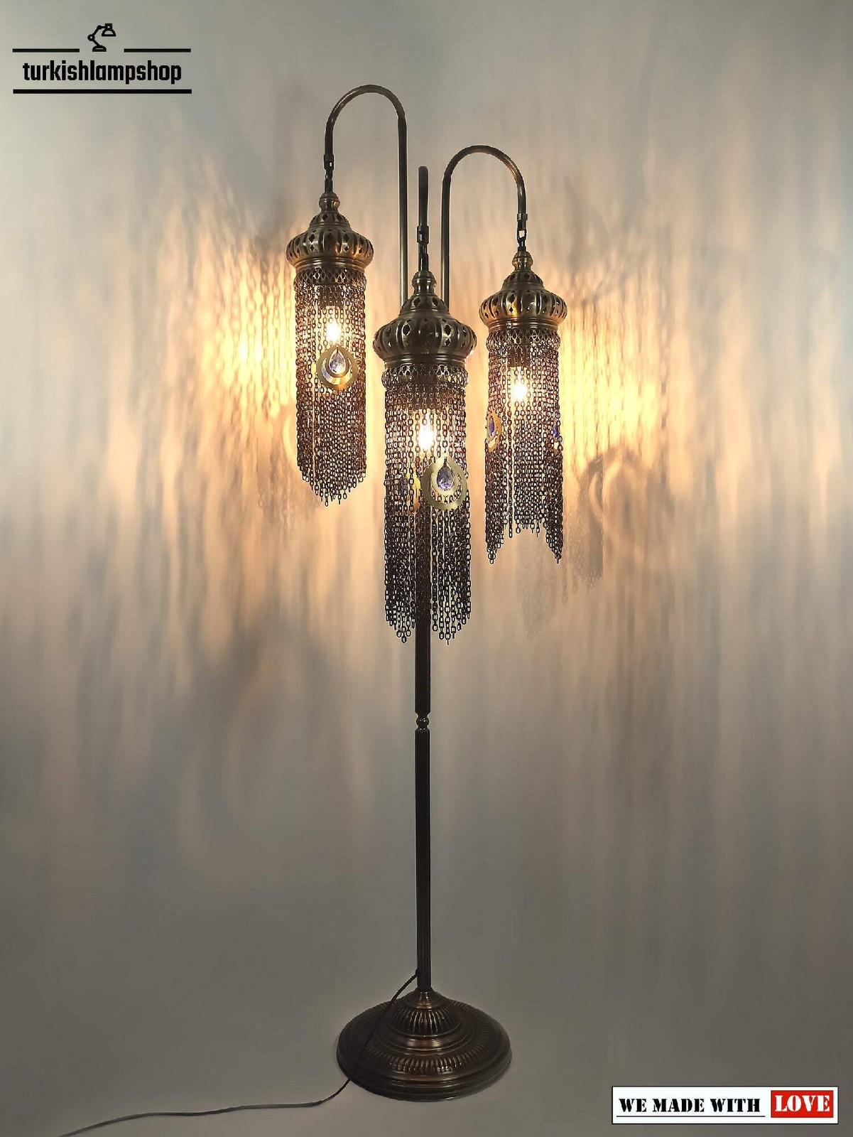 Orientalische Türkische Stehlampe – 3-armiges Baumdesign Kettenmuster
