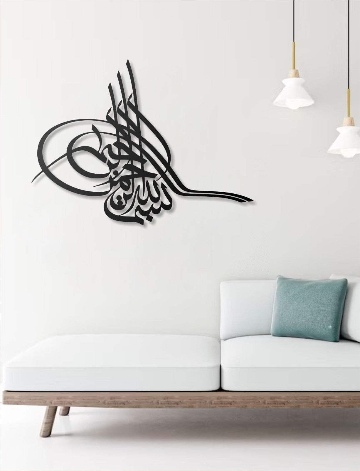 🕌 Osmanisches Tughra Wandbild mit Bismillah – Islamische Wanddeko in Arabisch Dieses elegante Metall Wandbild vereint die osmanische Tuğra mit der Besmele (Bismillahirrahmanirrahim) in arabischer Schrift. Ein einzigartiges islamisches Kunstwerk, das Tradition und Spiritualität stilvoll in Ihre Räume bringt. ✨ Produktdetails: Größen: 70×50 cm, 90×116 cm Material: Hochwertiger Stahl, 2 mm Stärke Oberfläche: Pulverbeschichtung (kratzfest & langlebig) Abstand zur Wand: ca. 2,5 cm für einen edlen 3D-Effekt 100% Handarbeit – in der Türkei hergestellt Pflegeleicht: kein Brechen, kein Verfärben, kein Geruch Versand: sicher & stabil verpackt 🌙 Bedeutung & Einsatzmöglichkeiten: Die Kombination aus Bismillah (Im Namen Allahs) und dem osmanischen Tughra-Symbol macht dieses Wandbild zu einem besonderen Blickfang. Es bringt Segen, Eleganz und kulturelle Tiefe in Ihr Zuhause. Ideal geeignet für: Wohnzimmer & Schlafzimmer Arbeitszimmer & Büros Moscheen & Gebetsräume Geschenkidee für islamische Anlässe 🎁 ✅ Ein edles islamisches Dekorstück – modern, traditionell & voller spiritueller Bedeutung.