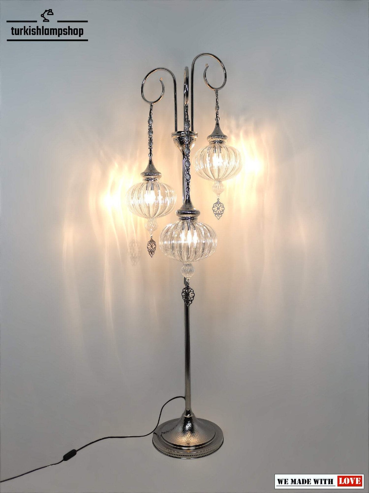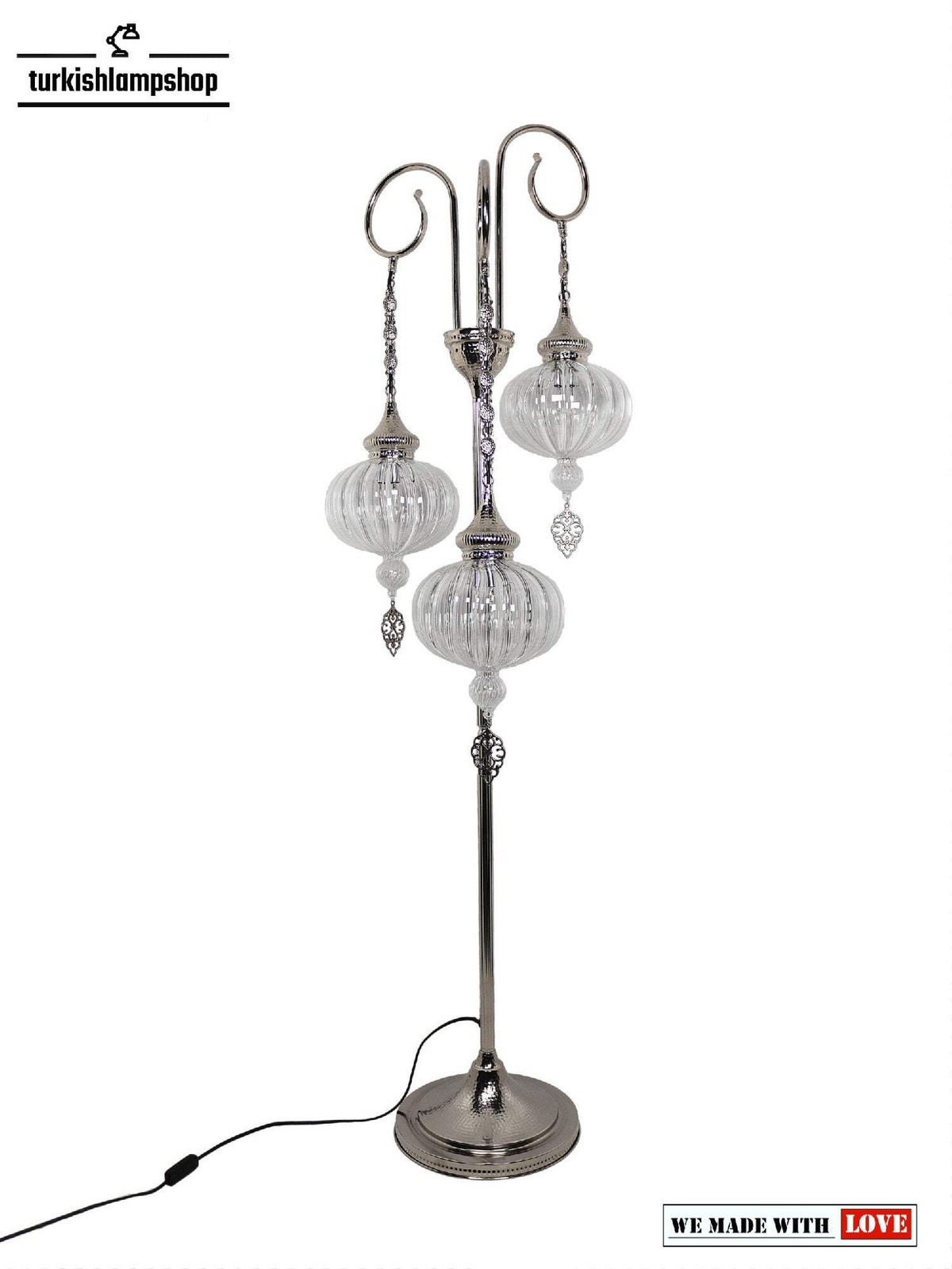 Erhellen Sie Ihren Wohnraum mit dieser einzigartigen türkischen Stehleuchte! Diese atemberaubende Stehleuchte wurde ebenfalls aus klarem Pyrex-Glas handgefertigt, um höchste Handwerkskunst zu gewährleisten, und erfüllt Ihren Raum mit einem warmen und gemütlichen Licht. Ihr einzigartiges Design verleiht jeder Einrichtung einen Hauch von Stil!