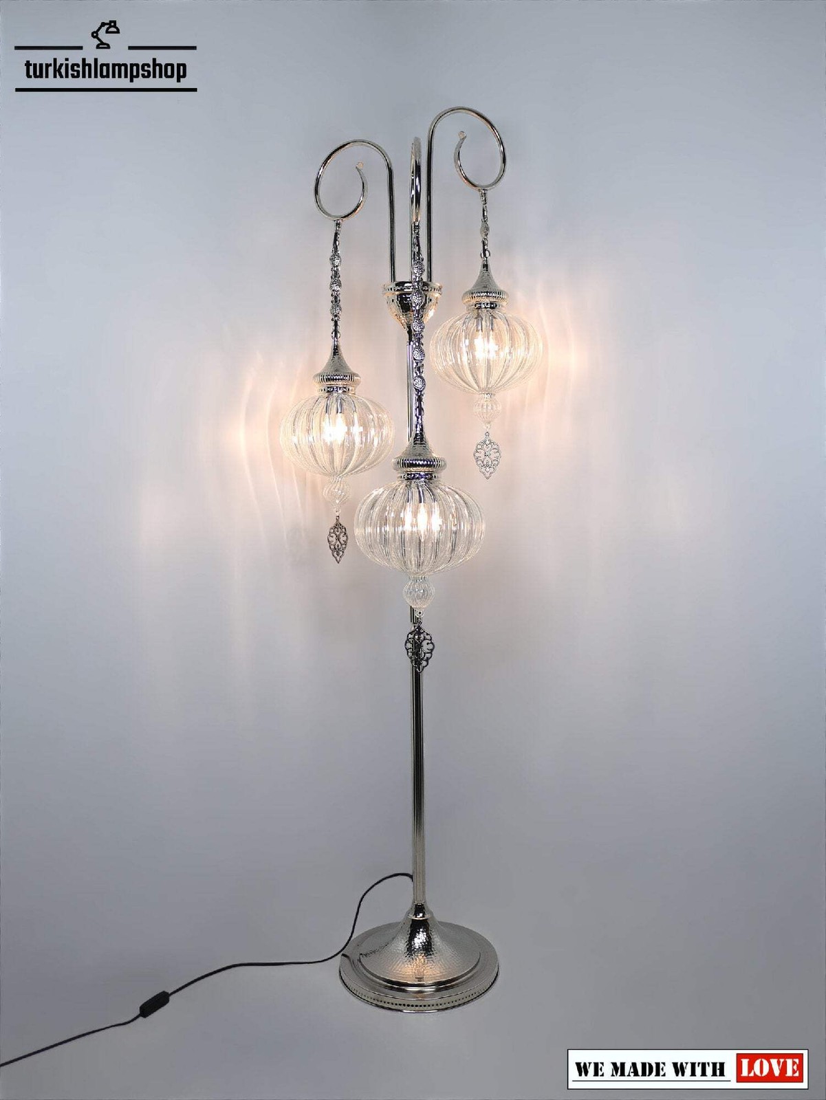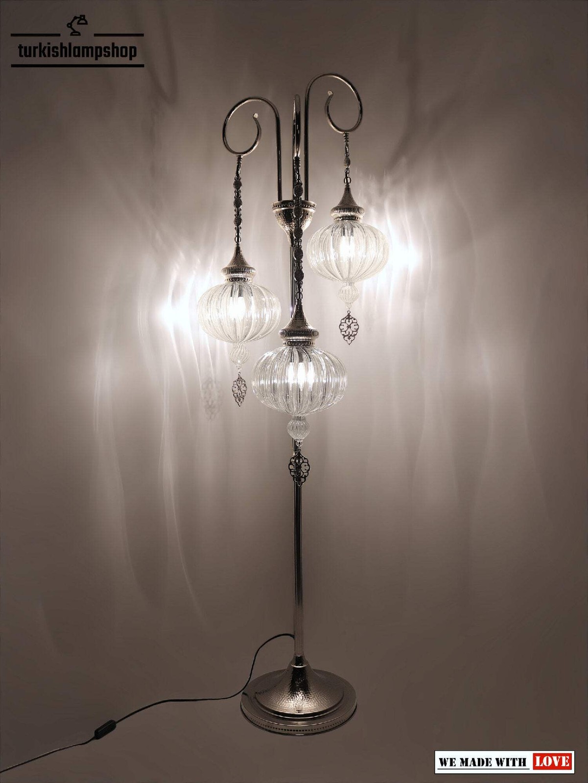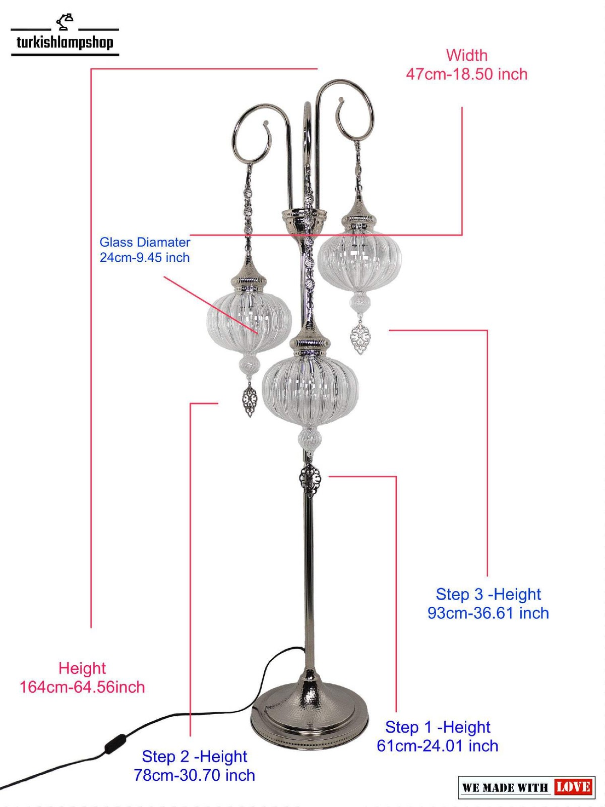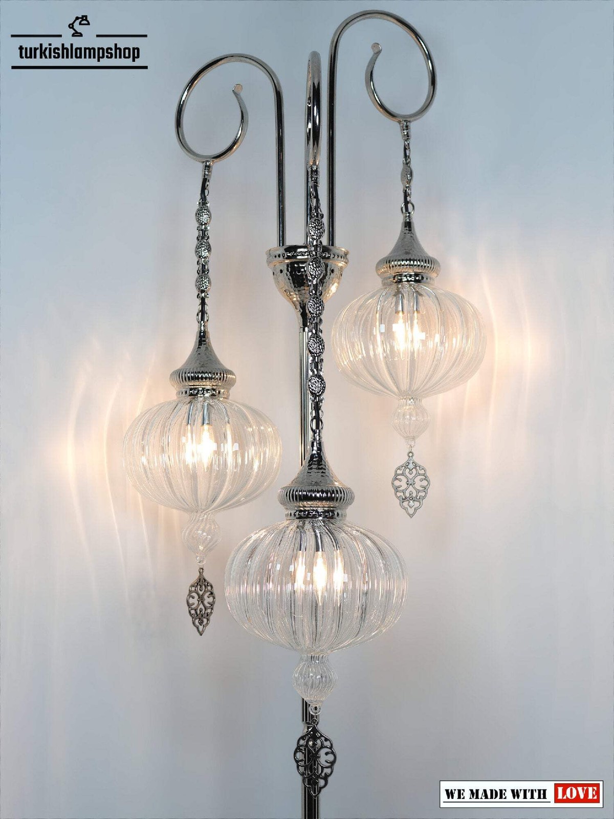 Zunächst einmal ist diese exquisite handgefertigte türkische Stehlampe aus klarem Pyrex-Blasglas gefertigt, was ihr ein elegantes, modernes Aussehen verleiht. Ihre hervorragende Verarbeitung sorgt für Robustheit und Langlebigkeit, während sie sich dank ihrer klaren Farbe nahtlos in jede Einrichtung einfügt. Damit ist sie eine ideale Ergänzung für jedes Zuhause. Erhellen Sie Ihren Wohnraum mit dieser einzigartigen türkischen Stehleuchte! Diese atemberaubende Stehleuchte wurde ebenfalls aus klarem Pyrex-Glas handgefertigt, um höchste Handwerkskunst zu gewährleisten, und erfüllt Ihren Raum mit einem warmen und gemütlichen Licht. Ihr einzigartiges Design verleiht jeder Einrichtung einen Hauch von Stil! Verschönern Sie Ihr Zuhause mit dieser exquisiten, handgefertigten türkischen Stehleuchte aus atemberaubendem Pyrex-Blasglas. Ihre beeindruckende klare Farbe strahlt ein weiches und einladendes Licht aus, während ihr einzigartiges Design mit Sicherheit für Gesprächsstoff sorgen wird. Erhellen Sie Ihren Raum mit diesem einzigartigen Stück! ABMESSUNGENHöhe: 164 cm – 64,56 ZollBreite: 47 cm – 18,50 Zoll GLÜHBIRNENDETAILSTyp: E-12-Fassung für die USA – E-14-Fassung für Großbritannien und die EU.Anzahl: 3Maximale Wattzahl: 25 WGLÜHBIRNE NICHT ENTHALTEN ELEKTRISCHE ANGABENSpannung: 110 V für die USA – 220 V für Großbritannien und die EUStromquelle: SteckerkabelLieferung mit kompatiblem Stecker für Amerika, Großbritannien, Europa und Australien VERSANDDETAILSDas Produkt ist handgefertigt und die Produktionszeit beträgt 10 Tage, der Versand ist kostenlos. Bitte kontaktieren Sie mich, wenn Sie Ihre Bestellung nicht innerhalb von 15 Tagen erhalten, ich werde mich darum kümmern und Ihnen helfen. PERSONALISIERENSie können unsere Produkte in Breite, Länge und Farbe nach Ihren Wünschen anpassen. Bitte kontaktieren Sie uns dazu.Vor allem können wir ein individuelles 3D-Design erstellen. Ebenso können Sie nach dem Design das Bild und das Video davon sehen. MATERIAL PyrexglasVerputztes MetallKetteKabel