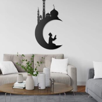 Ein einzigartiges Wandbild, das die Silhouette eines betenden Mannes vor einer Moschee darstellt. Dieses Kunstwerk vereint Spiritualität mit modernem Metalldesign und bringt eine ruhige, spirituelle Atmosphäre in Ihr Zuhause.✨ Produktdetails: