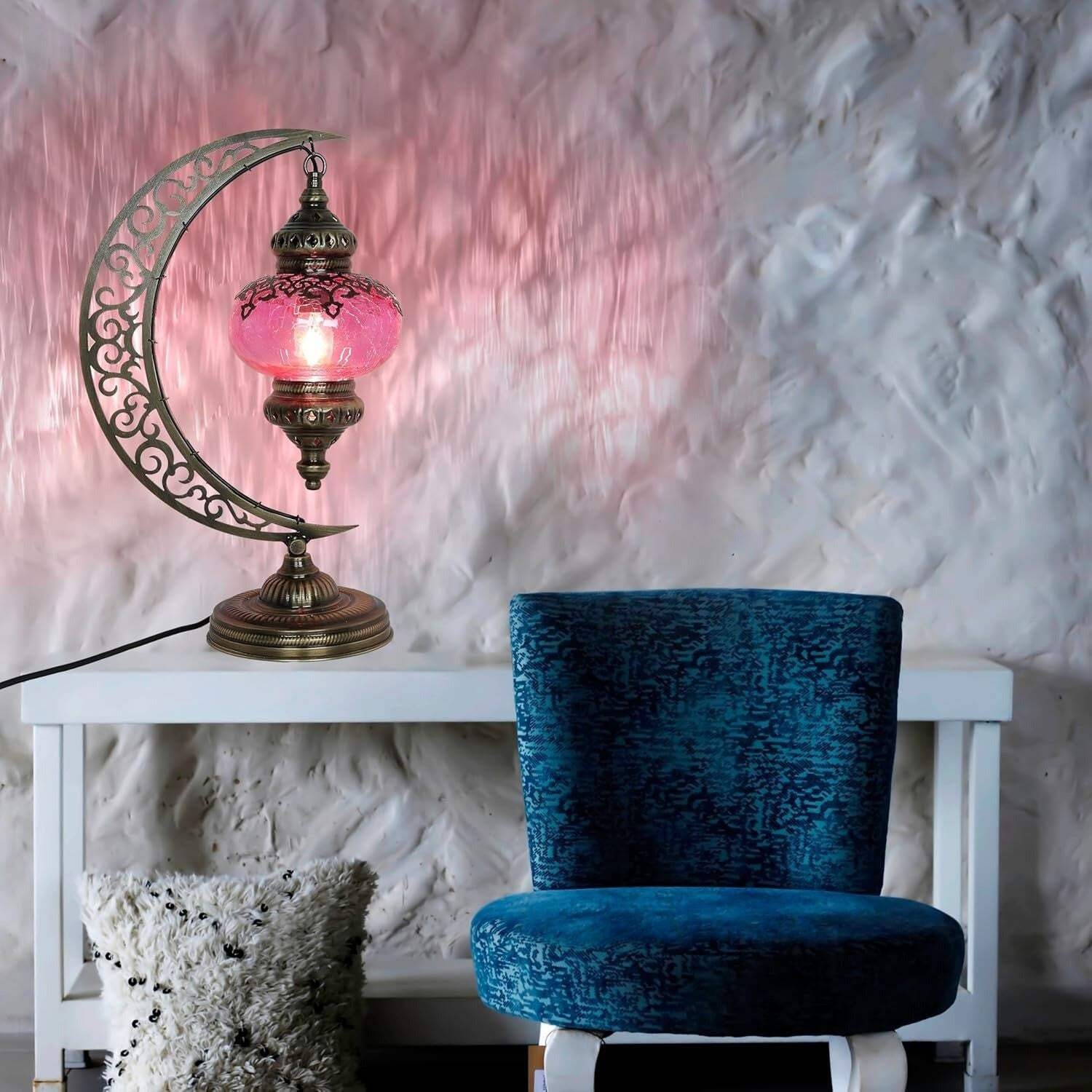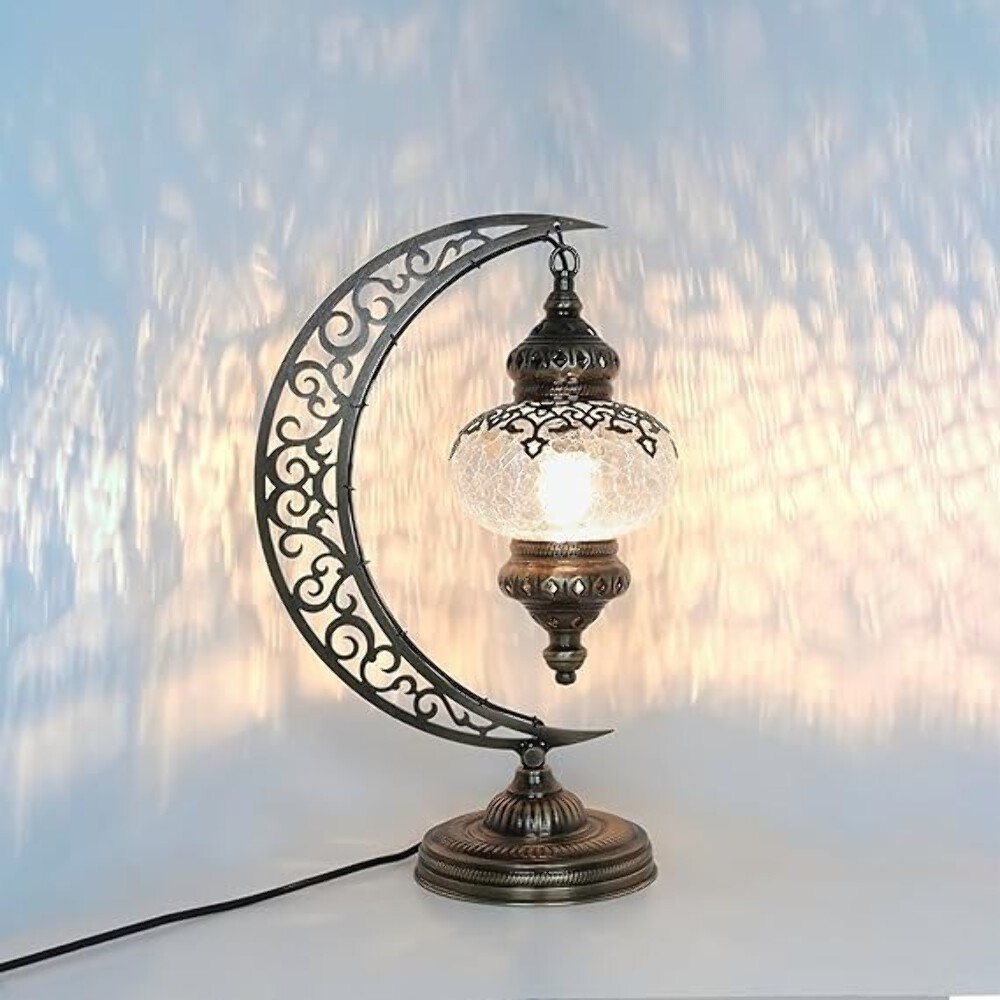 Türkische Mond – Tischlampe Glas mit Rissmuster