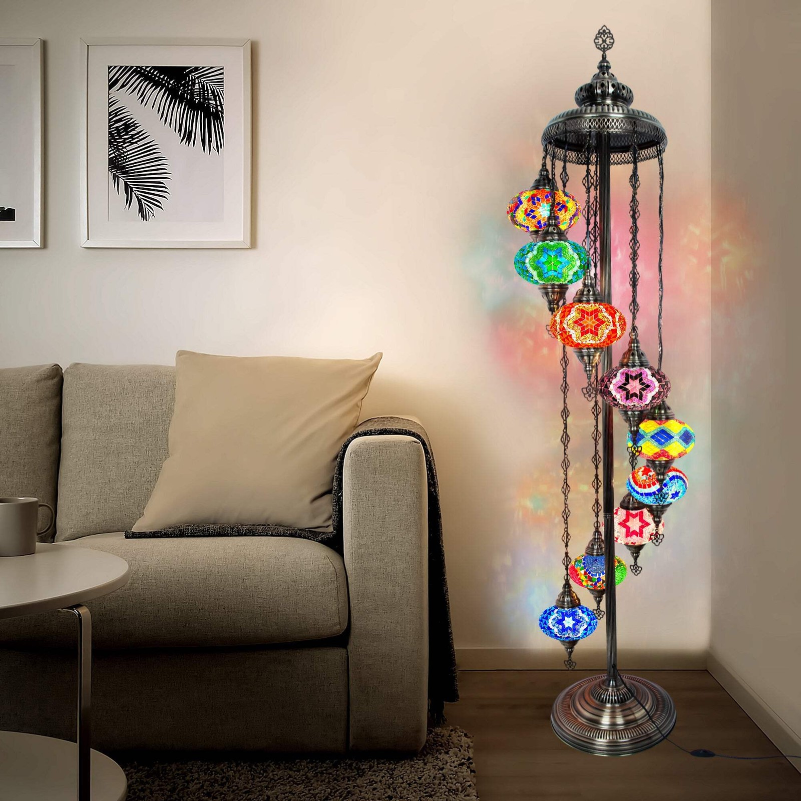 Türkische Mosaik Stehlampe 9 Kugeln – Orientalische Bodenlampe Boho Stil