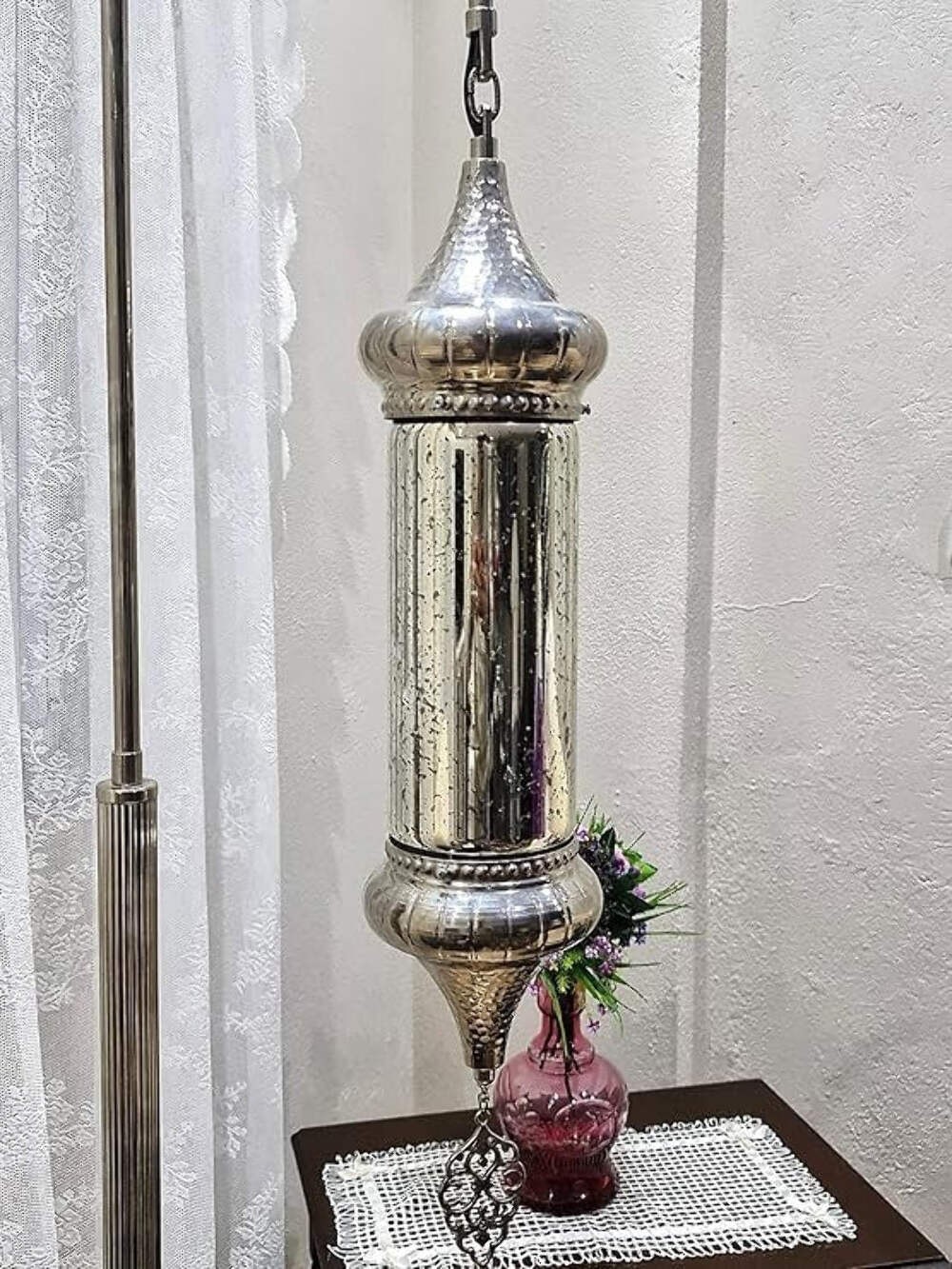 Erstens zeigt der Pyrex-Glas-Kronleuchter die faszinierende Schönheit traditioneller türkischer Handwerkskunst mit 3 Kugeln. Zweitens wird jede Komponente sorgfältig von Hand gefertigt, wodurch ihre Authentizität und Einzigartigkeit gewährleistet ist. Die aufwendigen Details und atemberaubenden Muster des Kronleuchters machen ihn zu einem echten Kunstwerk, das den Charakter Ihrer Küche unterstreicht. Darüber hinaus sorgt dieser türkische Kronleuchter mit 3 Kugeln für eine gleichmäßige Lichtverteilung in Ihrer Küche. Die Kugeln sind aus hochwertigem Pyrexglas gefertigt, was Langlebigkeit und einen bezaubernden Glanz beim Leuchten gewährleistet. Dieses Design sorgt dafür, dass Ihre Küche ausreichend beleuchtet ist und gleichzeitig eine warme und einladende Atmosphäre schafft. Wenn Sie den Küchenleuchter aus Pyrexglas mit 3 Kugeln und türkischer Deckenleuchte in Ihre Küche integrieren, können Sie eine deutliche Veränderung der Gesamtatmosphäre erwarten. Der warme und bezaubernde Schein des Kronleuchters schafft eine gemütliche Umgebung und macht Ihre Küche zu einem einladenden Ort für Familie und Freunde. ABMESSUNGEN Höhe: 107 cm – 42,12 ZollBreite: 50 cm – 19,68 ZollHöhe ohne Kette: 90 cm – 35,43 ZollKürzeste Aufhängehöhe: 90 cm – 35,43 Zoll ANGABEN ZUR GLÜHBIRNETyp: E-12-Fassung für die USA – E-14-Fassung für Großbritannien und die EU.Anzahl: 3Maximale Wattzahl: 25 WGLÜHBIRNE NICHT ENTHALTEN ELEKTRISCHE ANGABENSpannung: 110 V für die USA – 220 V für Großbritannien und die EUStromversorgung: Mit Kabel von der Decke VERSANDDETAILSDas Produkt ist handgefertigt und die Produktionszeit beträgt 7 Tage, der Versand ist kostenlos. Bitte kontaktieren Sie mich, wenn Sie Ihre Bestellung nicht innerhalb von 15 Tagen erhalten haben, ich werde mich darum kümmern und Ihnen helfen. PERSONALISIERENSie können unsere Produkte in Breite, Länge und Farbe nach Ihren Wünschen anpassen, bitte kontaktieren Sie uns dazu.Am wichtigsten ist, dass wir ein individuelles 3D-Design erstellen können. Ebenso können Sie nach der Gestaltung ein Bild und ein Video davon sehen. MATERIAL MosaikglasVerputztes MetallKetteKabel .