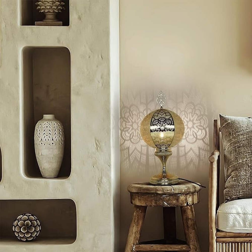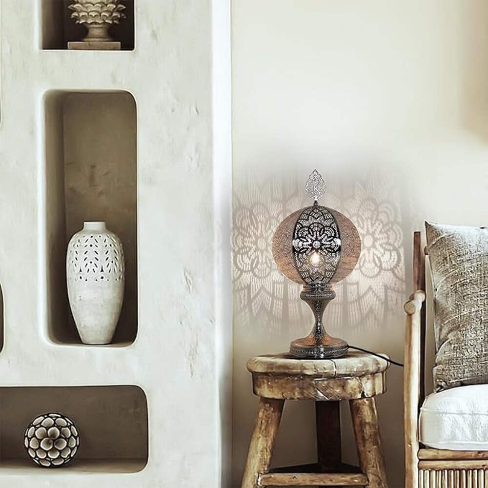 Dank dieser Vielseitigkeit können Sie für jede Gelegenheit die perfekte Atmosphäre schaffen, egal ob Sie ein Buch lesen, ein romantisches Abendessen genießen oder sich einfach nach einem langen Tag entspannen möchten. Die Lampe passt mühelos zu verschiedenen Einrichtungsstilen, von modern bis hin zu bohemian, und wertet den Gesamteindruck Ihres Raumes sofort auf.